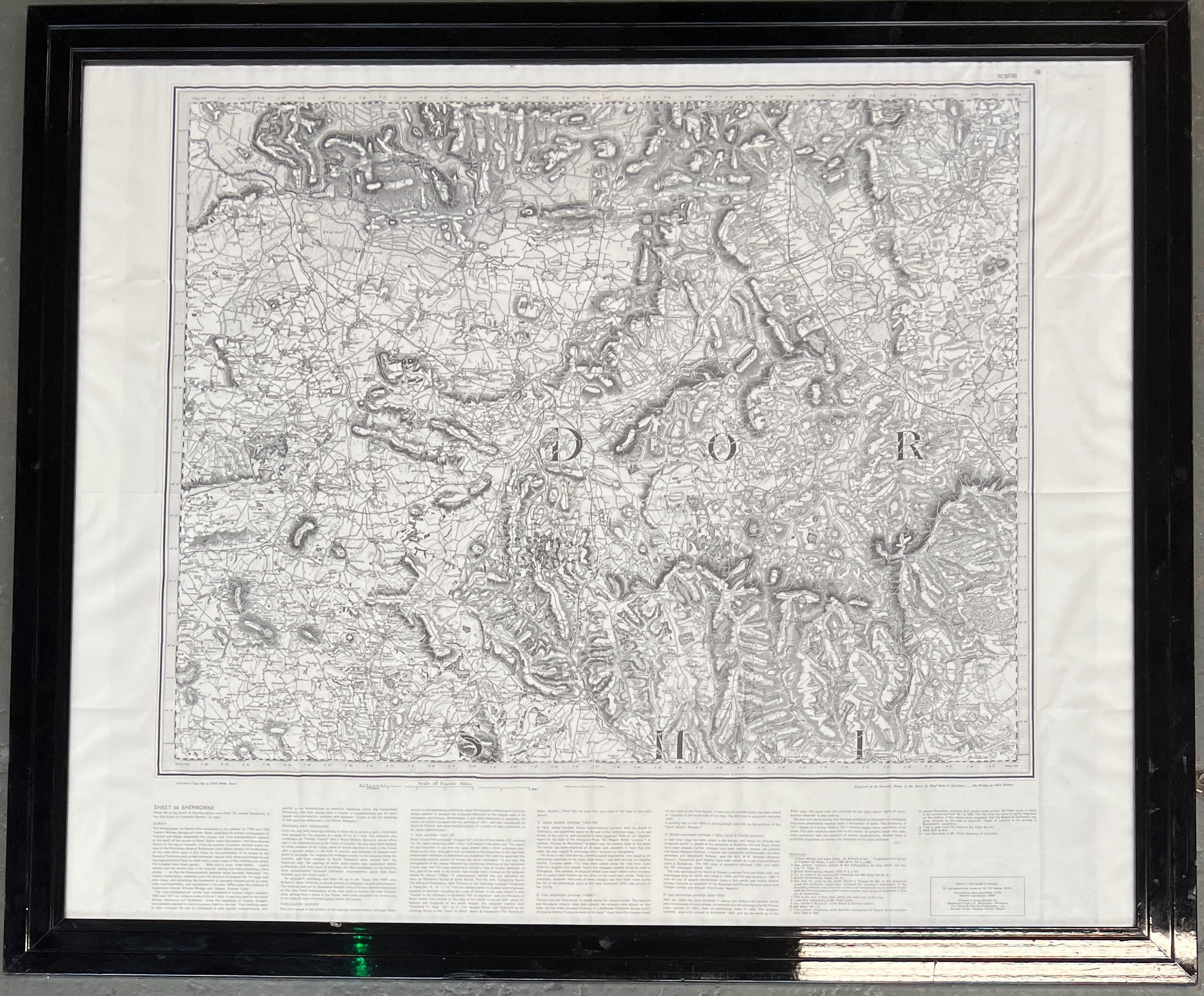A large framed Ordnance Survey map of Sherborne, c.1980, overall dimensions including frame 87x103cm