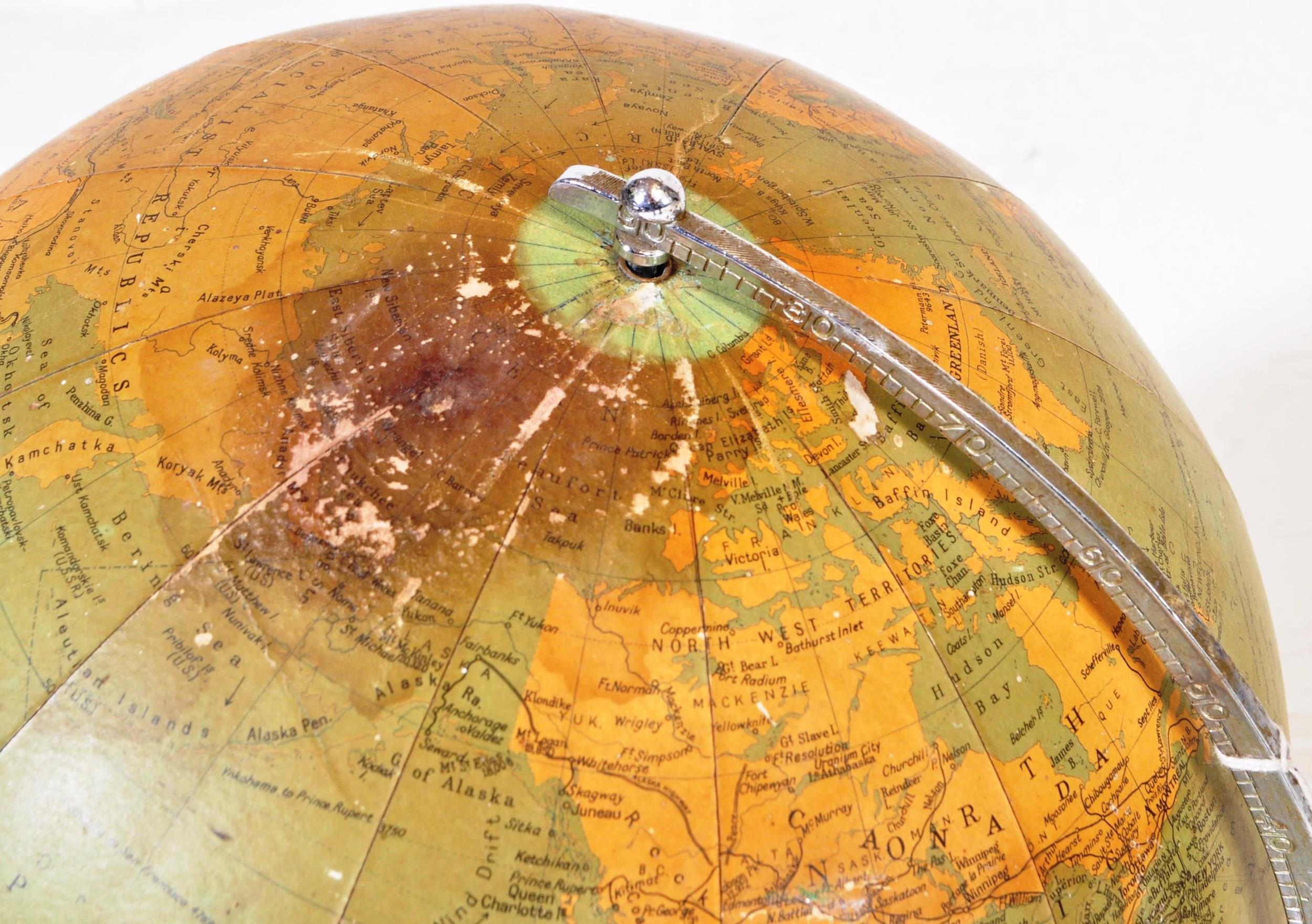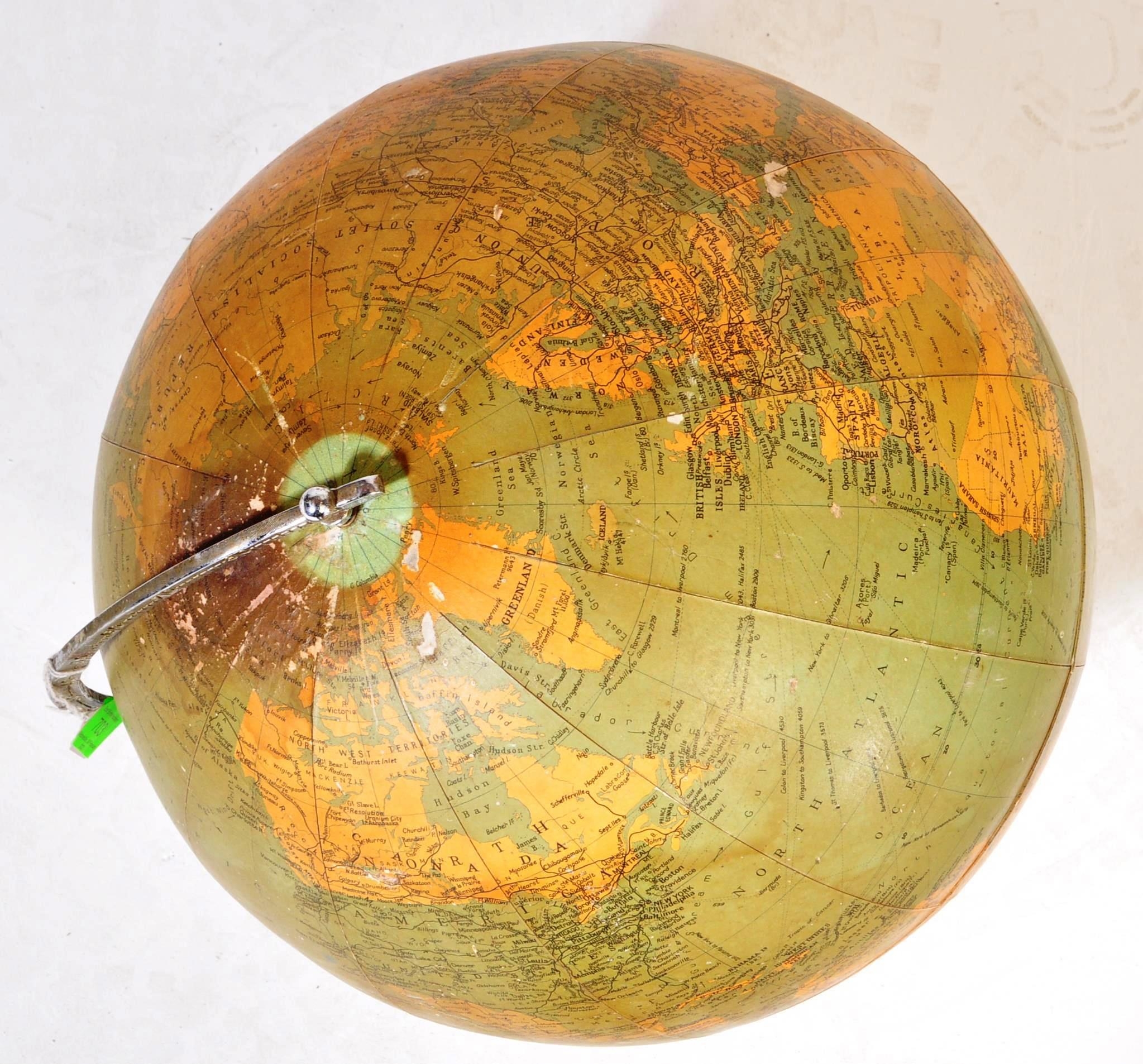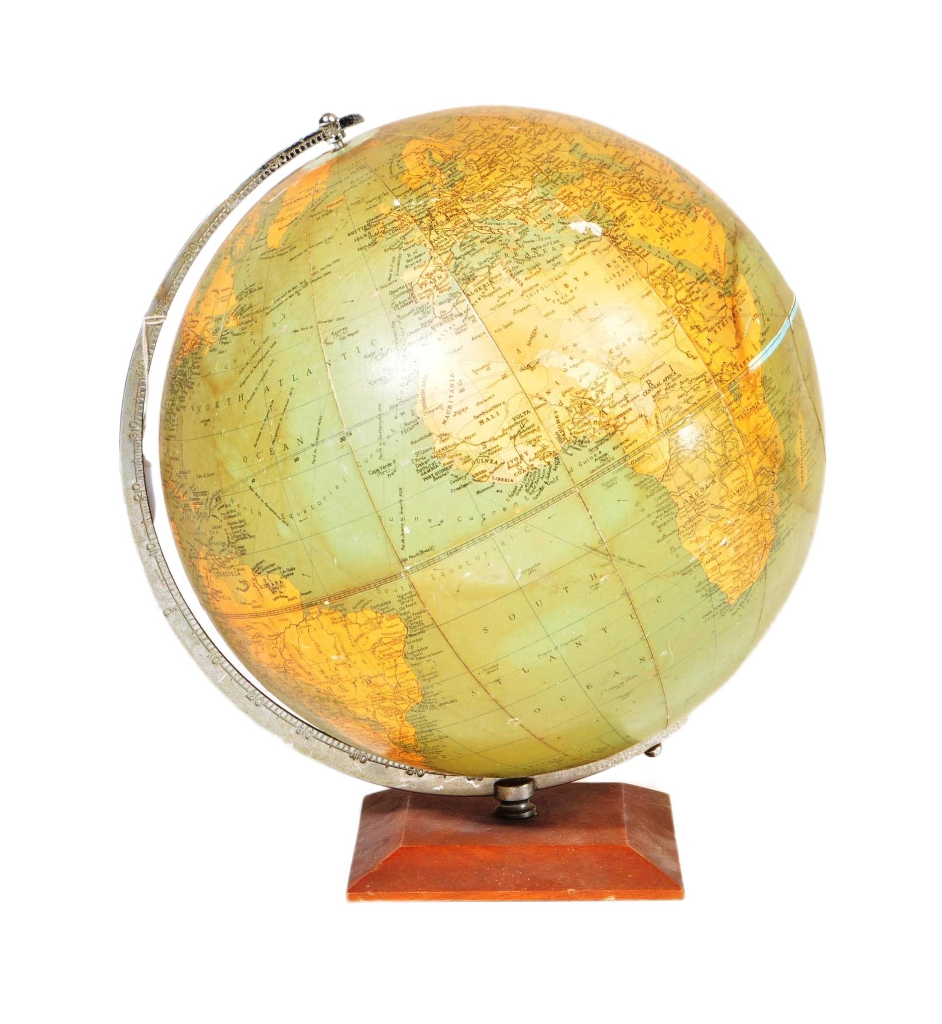 Philips - Challenge Globe - A retro vintage 20th Century 13 1/2" size terrestrial tabletop / desk globe by Philips' London Geographical Institute George Philp and Son LTD London. Raised on a teak wood base. Measures approx; 47cm x 37cm.