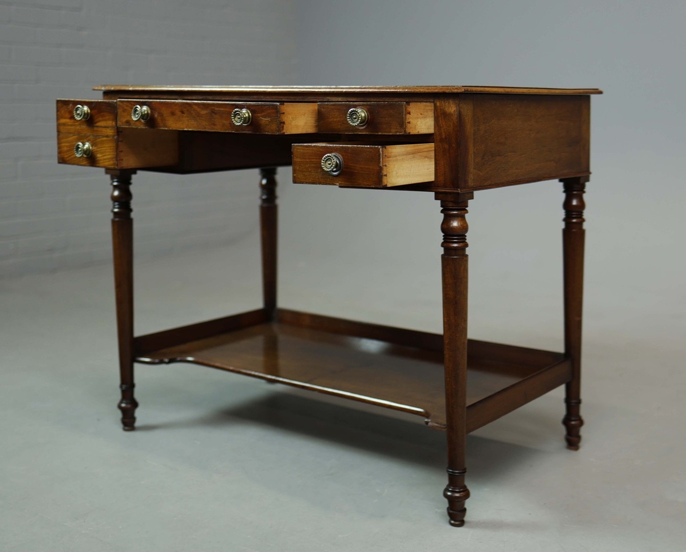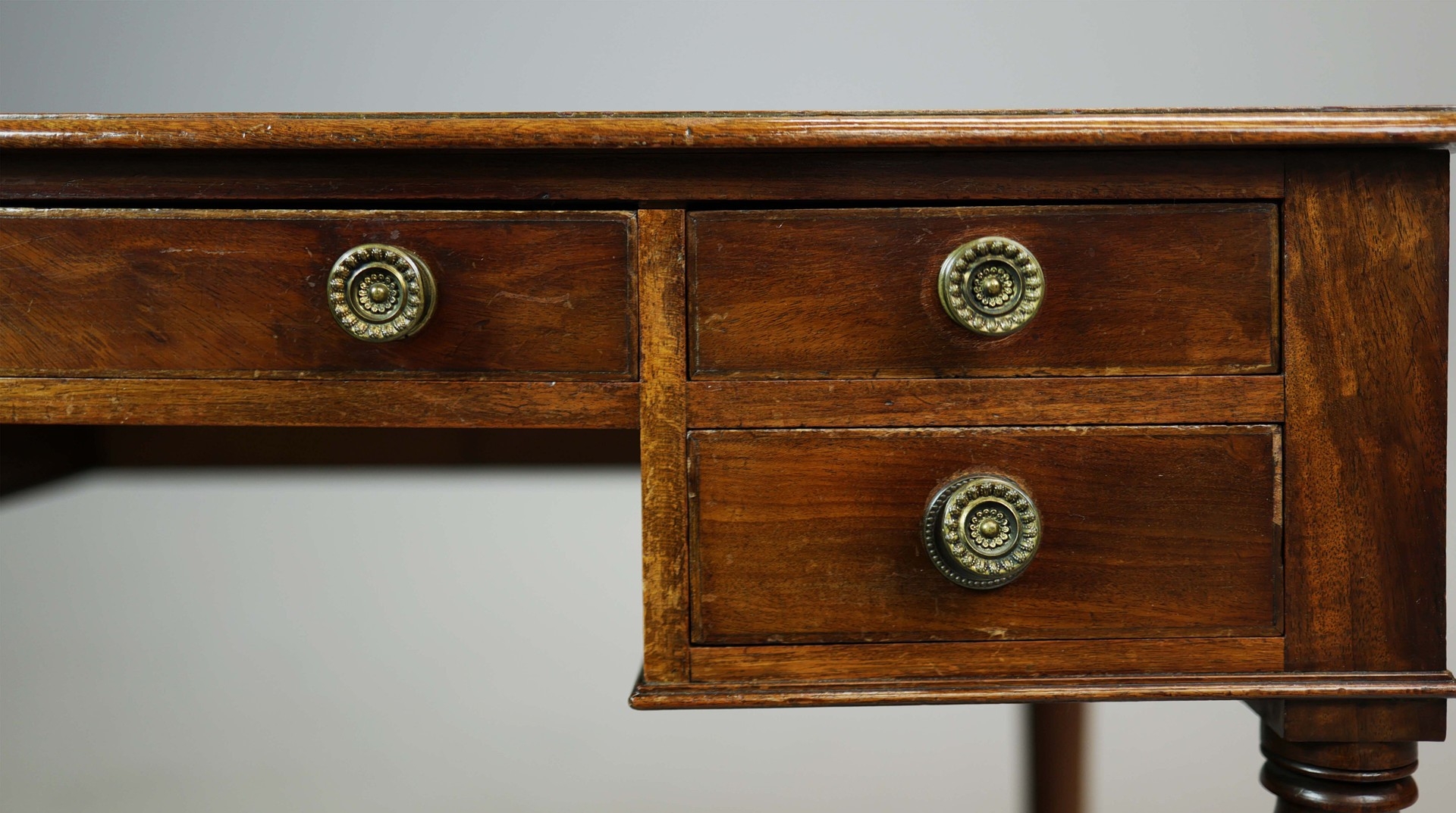 GEORGE IV MAHOGANY DESK. four drawers, 76cm H x 91cm W x 55cm D.