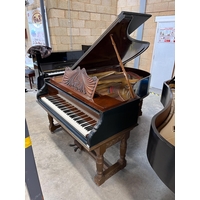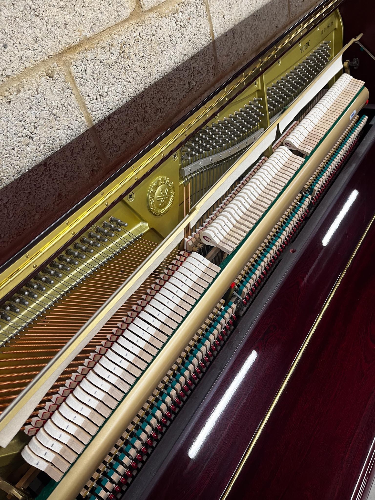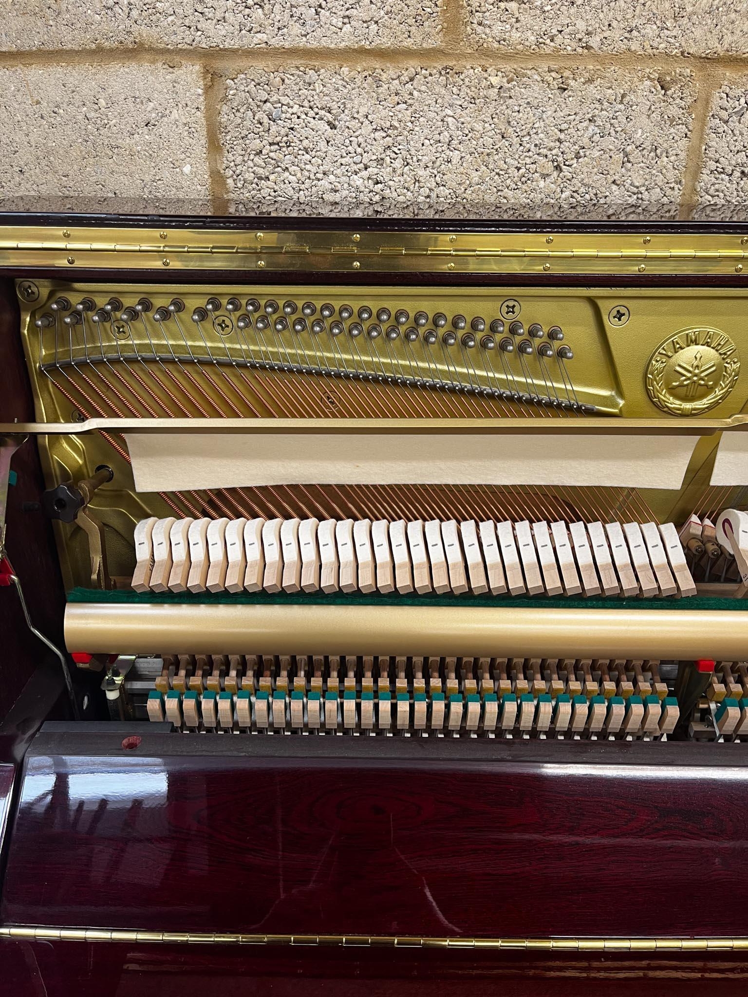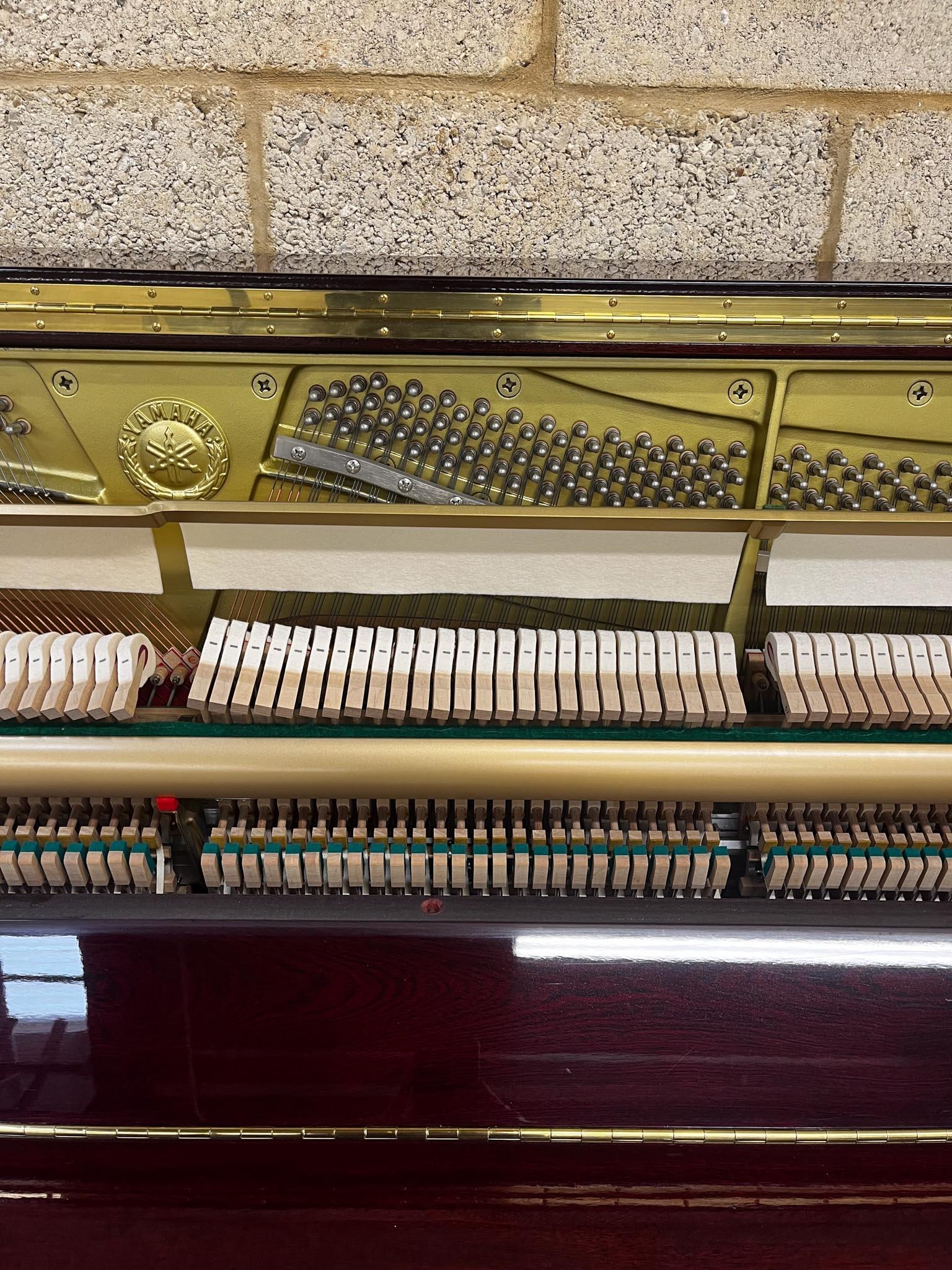 A Model YU 121C upright piano in a bright mahogany case; together with a stool.