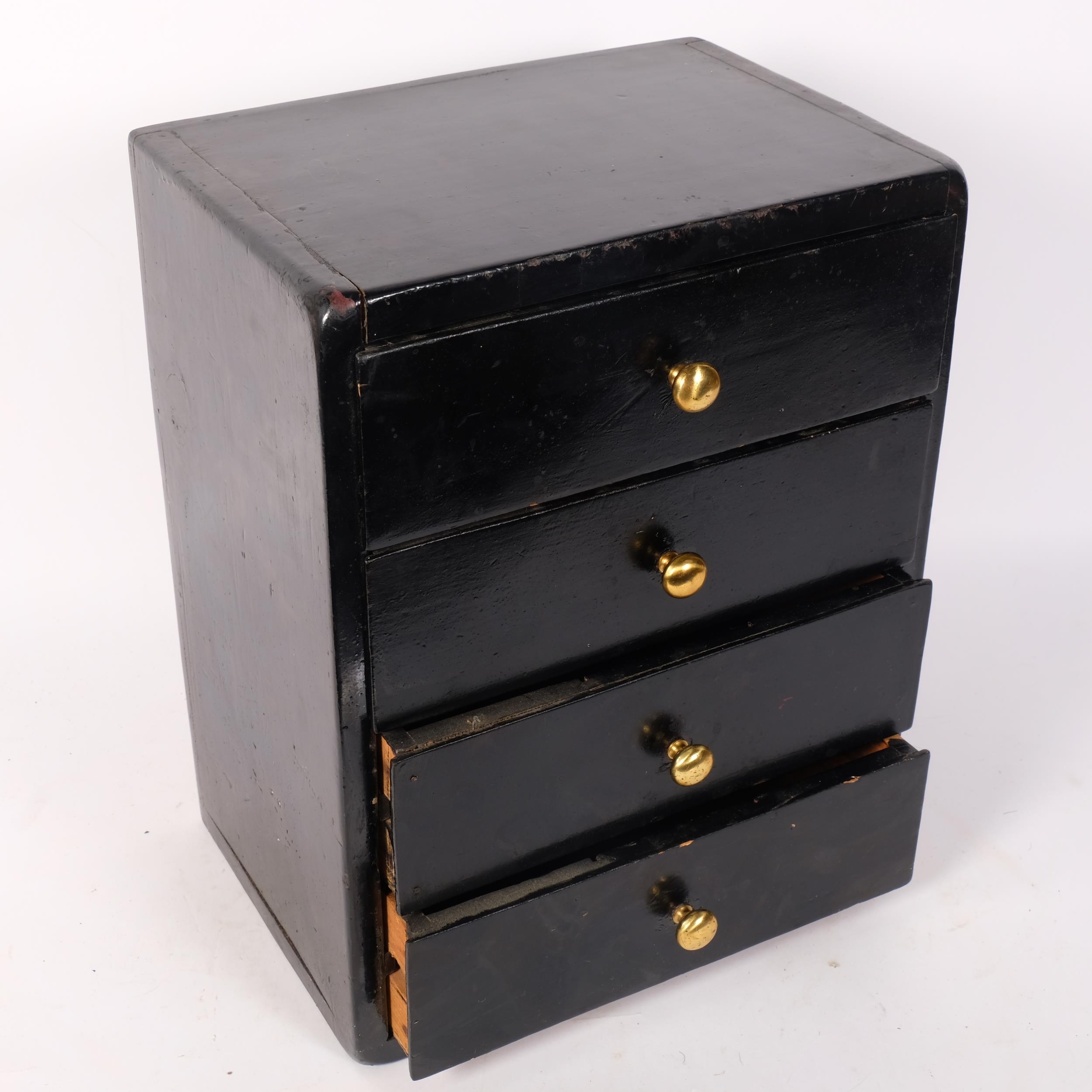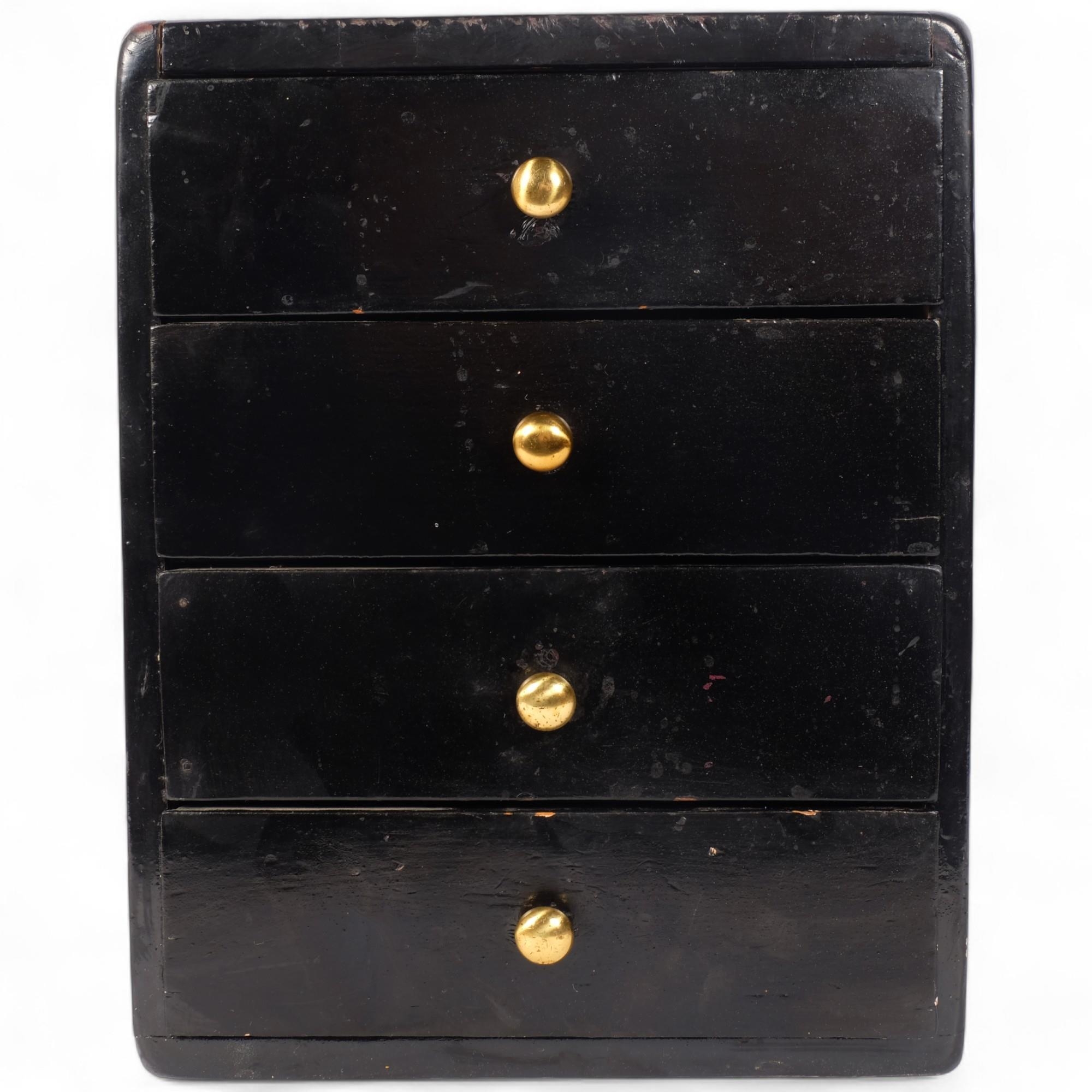 An Antique ebonised table-top collector's chest, 4 short drawers, brass handles, 28cm x 36cm x 20cm