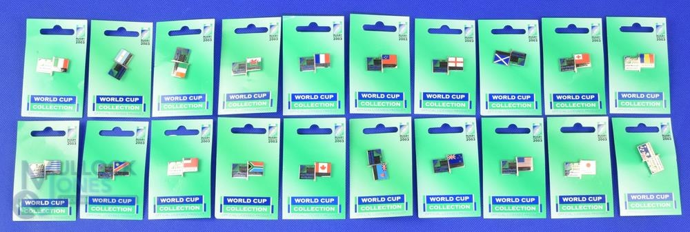 2003 RWC Official Lapel Badge Collection (16): 16-badge, new with tags, mint collection of official national badges for the RWC in Australia 2003