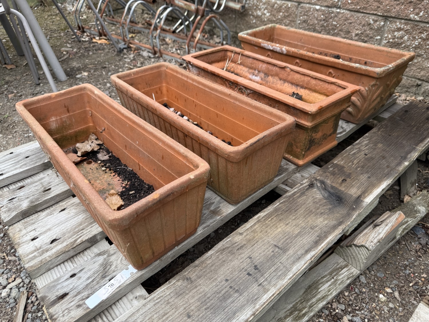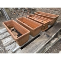 Four terracotta flower troughs