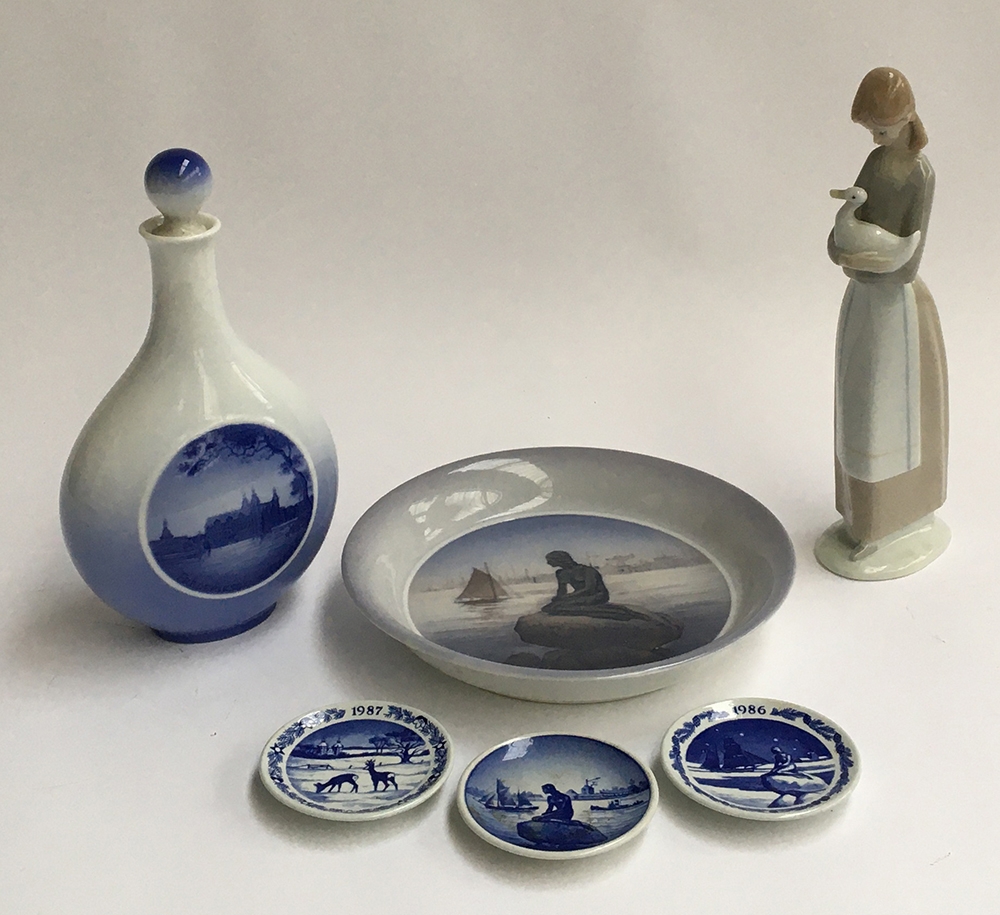 A small quantity of Royal Copenhagen ceramics; together with an NAO figurine of a girl holding a duck, 36.5cmH