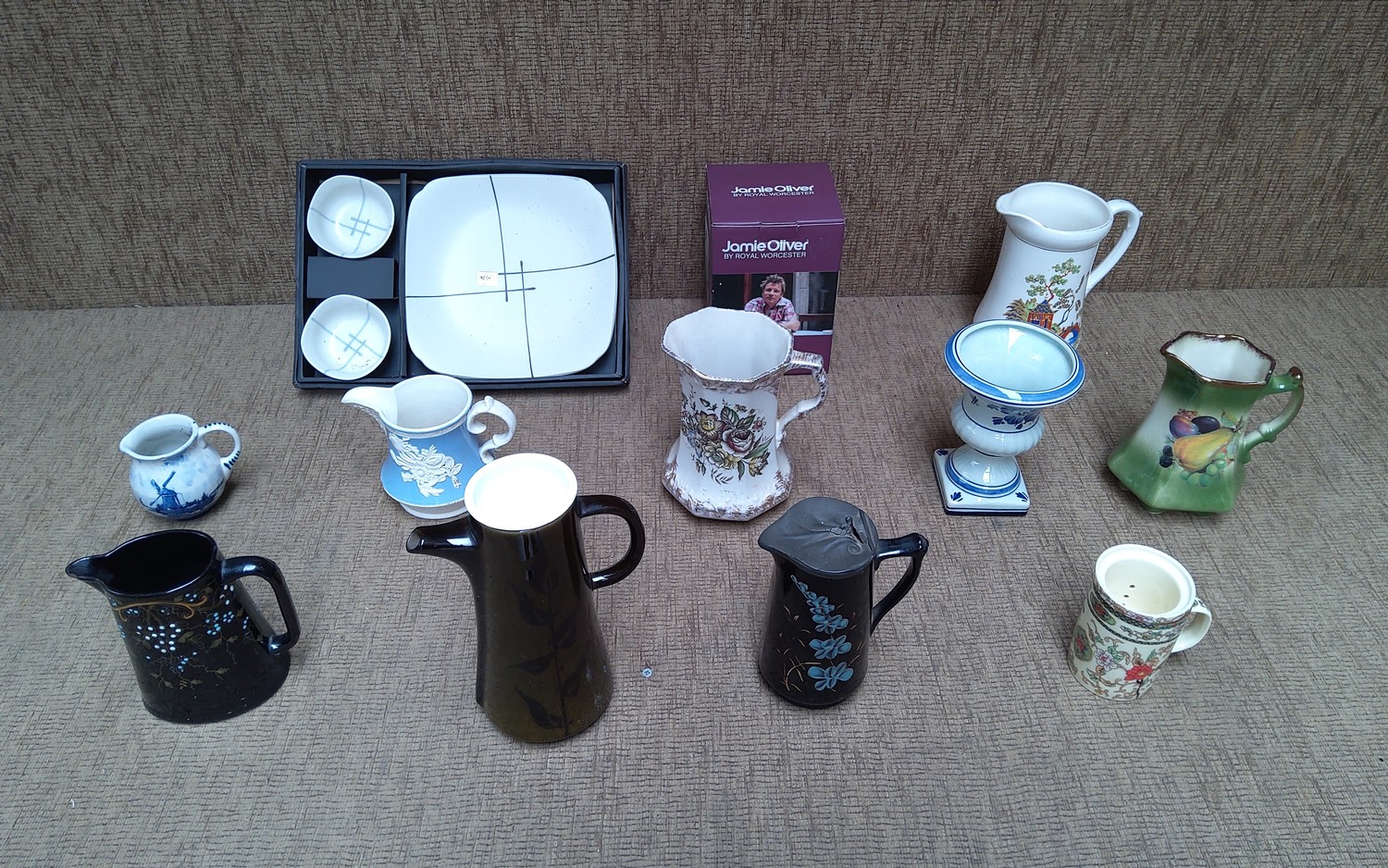 Collectable ceramic jugs and tankards including a Royal Worcester Sugar pot.