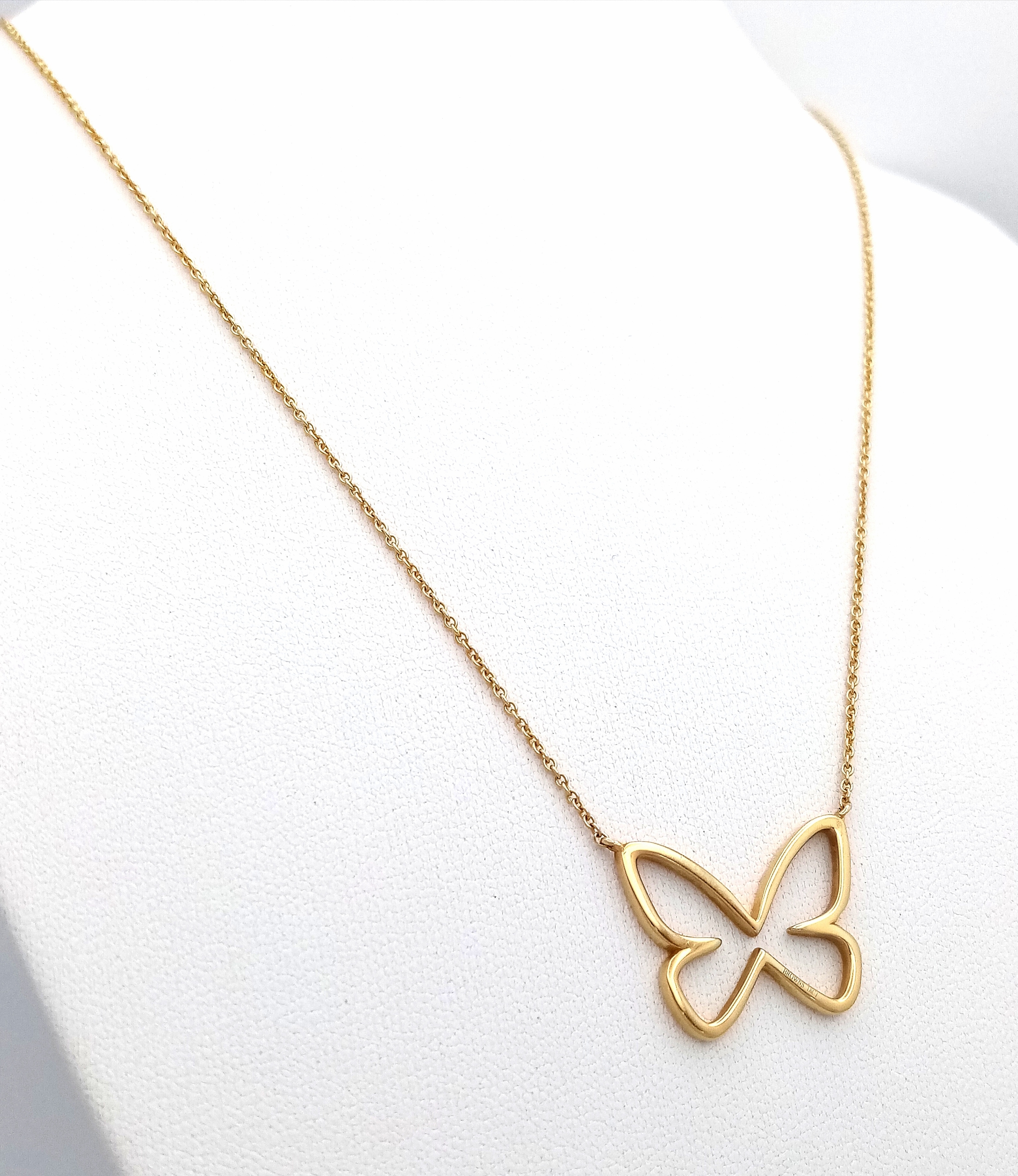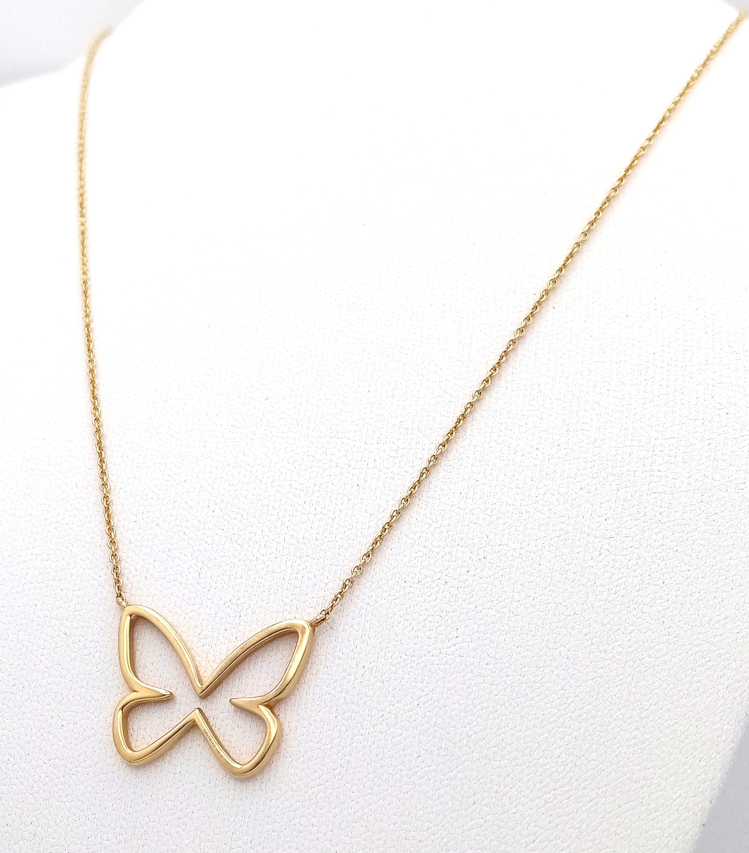 An 18k yellow gold butterfly necklace, 4.7g total weight, 18” chain length. Ref: 1455I.