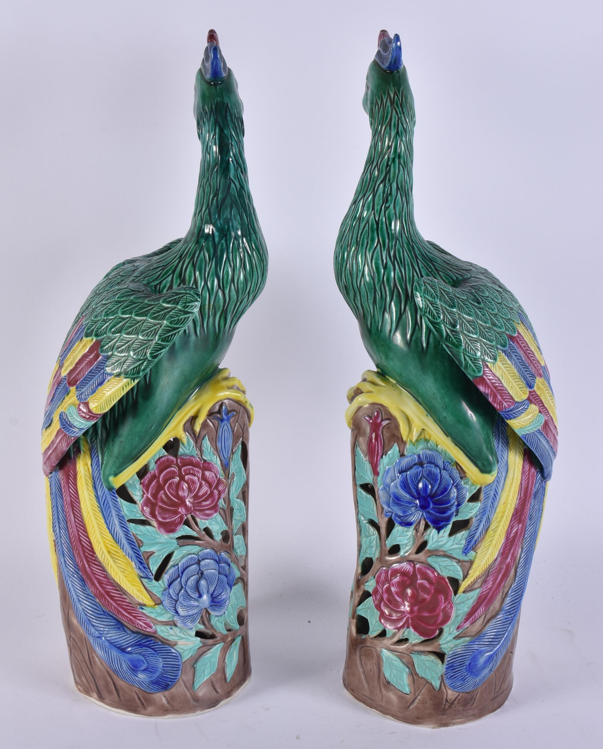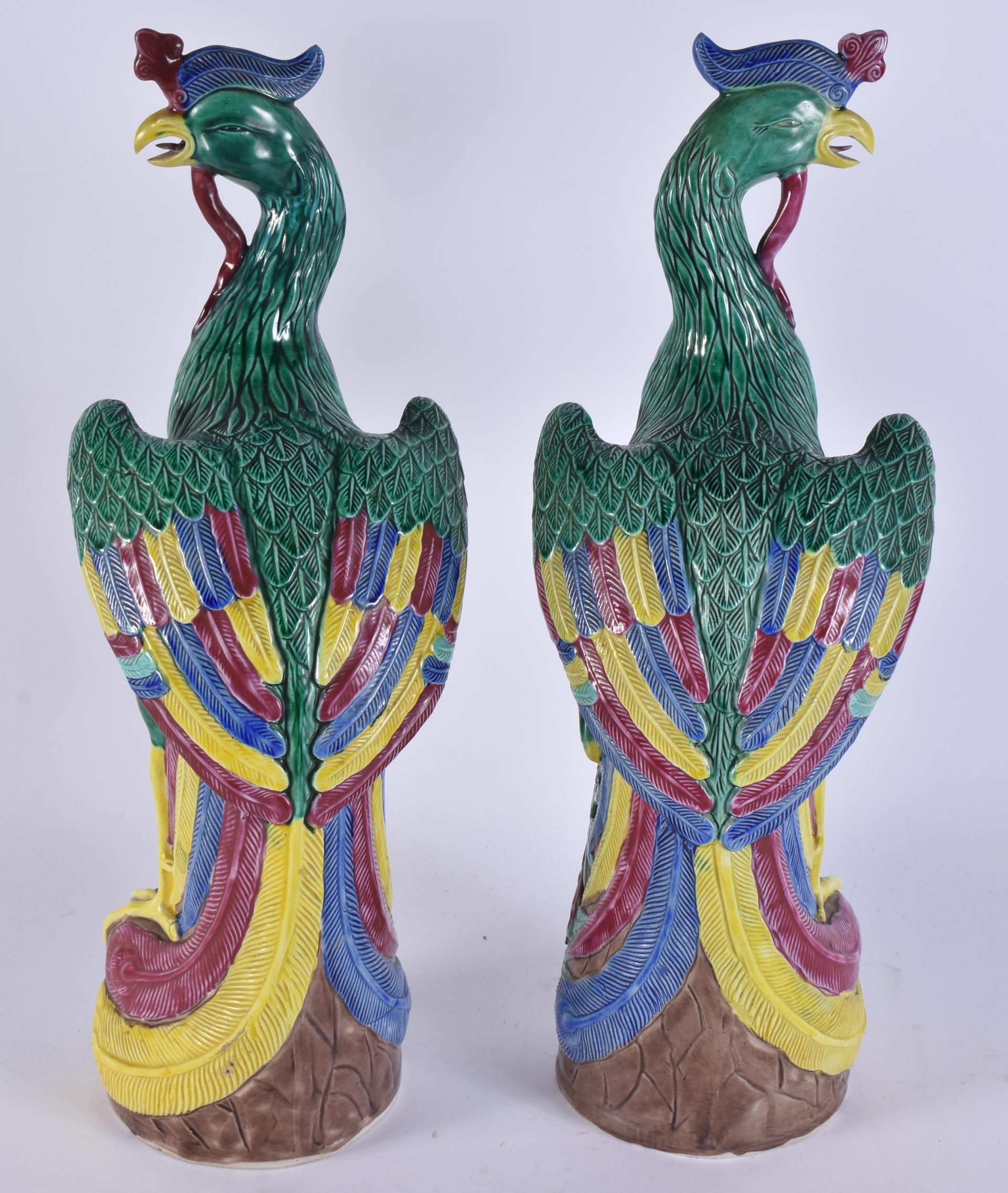 A LARGE PAIR OF EARLY 20TH CENTURY CHINESE PORCELAIN HOHO BIRDS Late Qing/Republic. 40 cm high.
