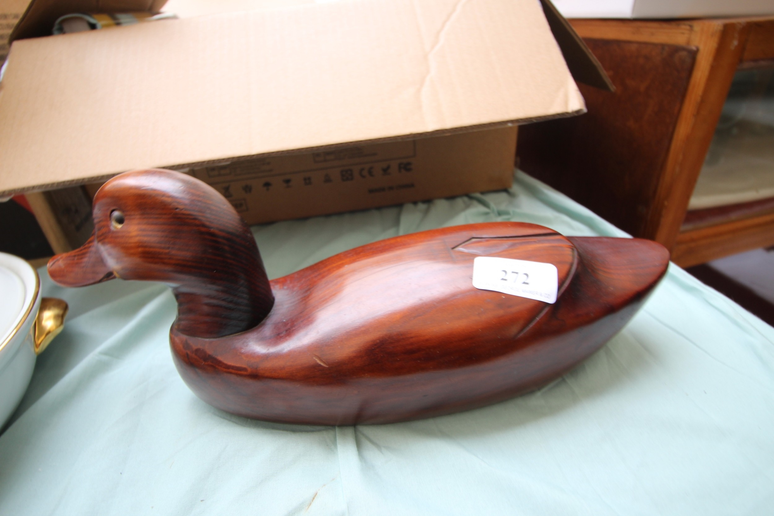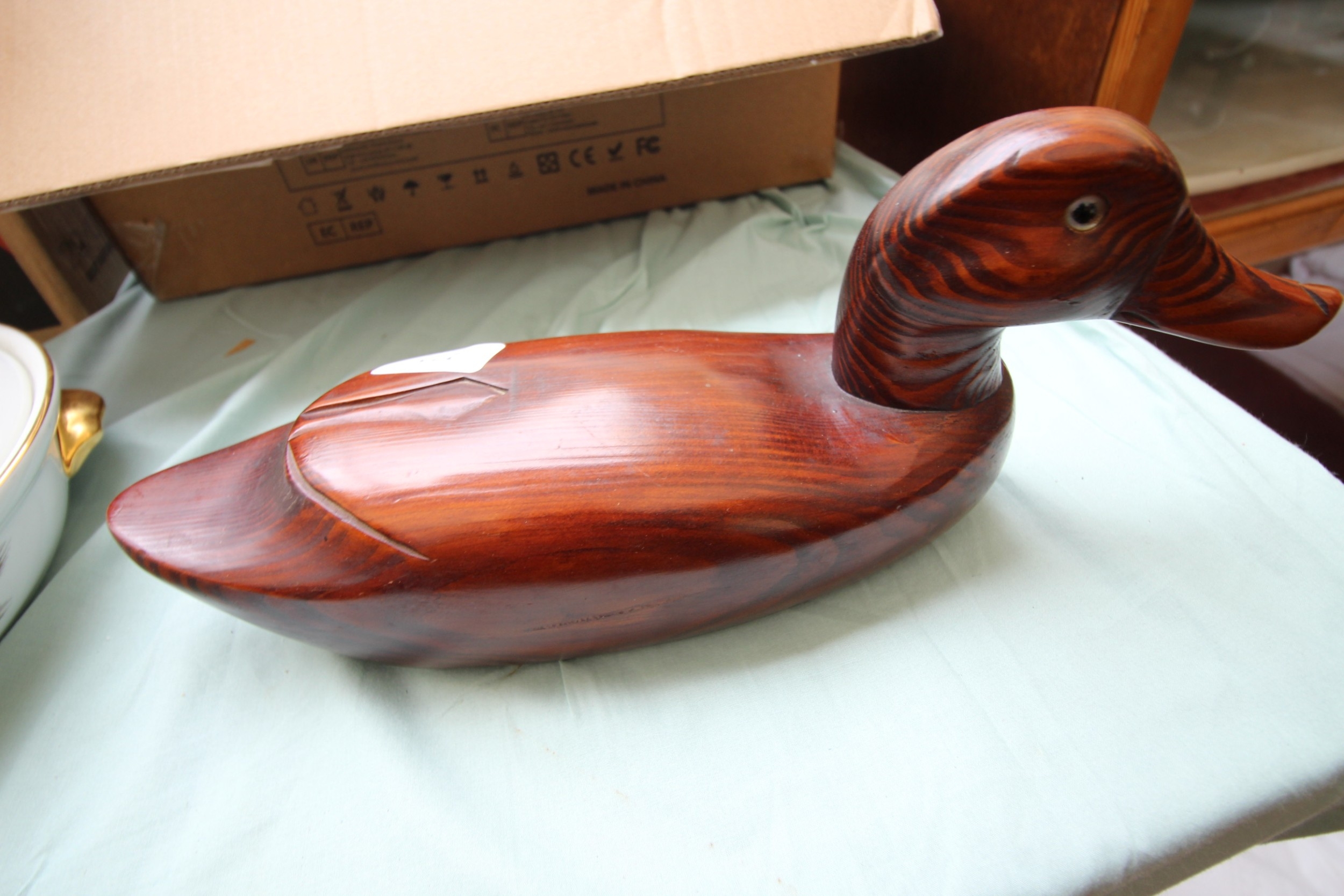 Attractively carved Oriental duck in mahogany