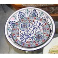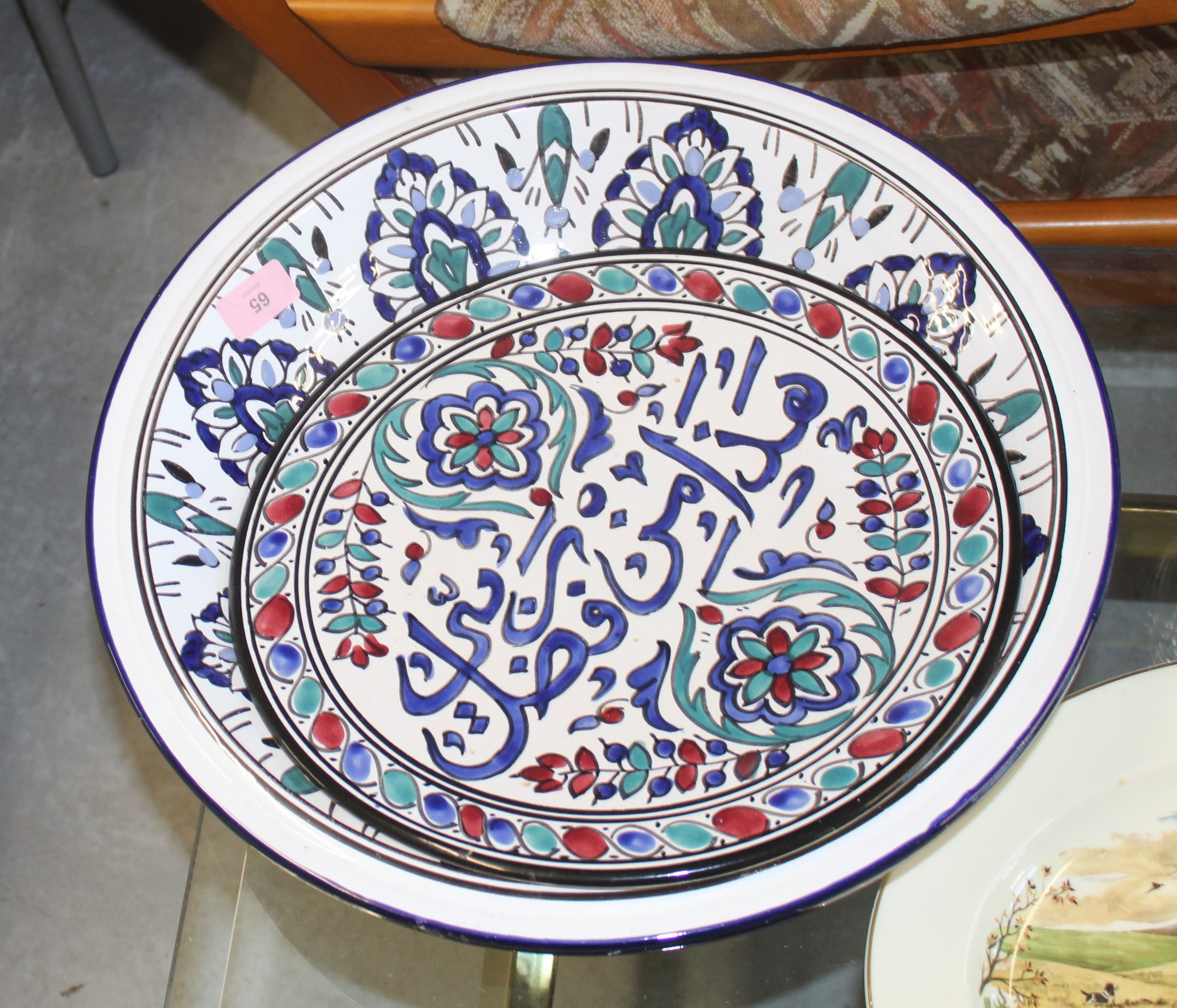 Moroccan Style Glazed Charger and Large Bowl Plus a Heavy Glass Vase