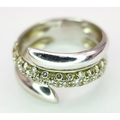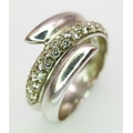 A FABULOUS 18K WHITE GOLD DIAMOND SET CROSSOVER RING . 4.4gms size L