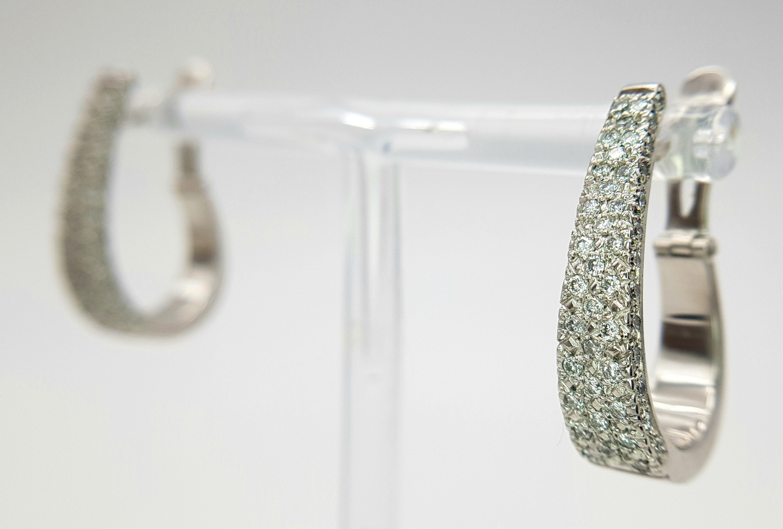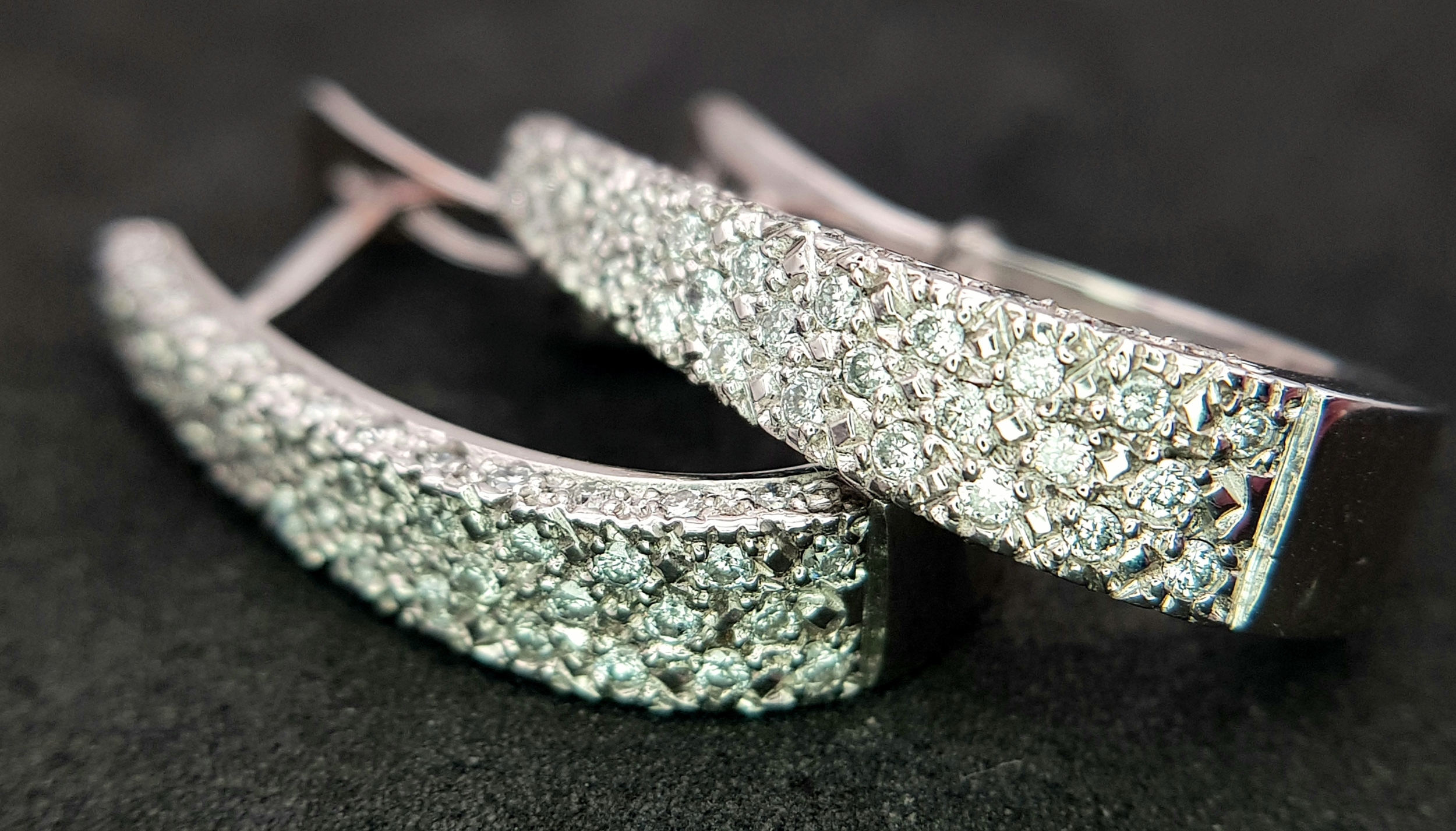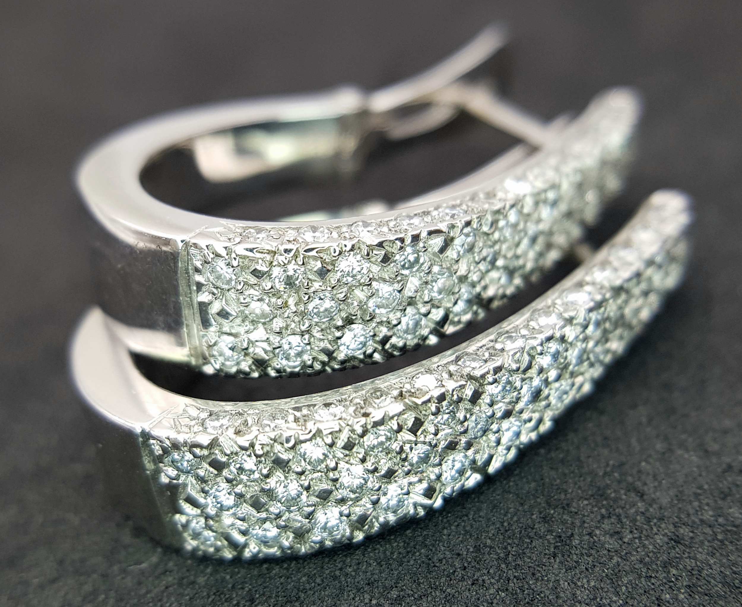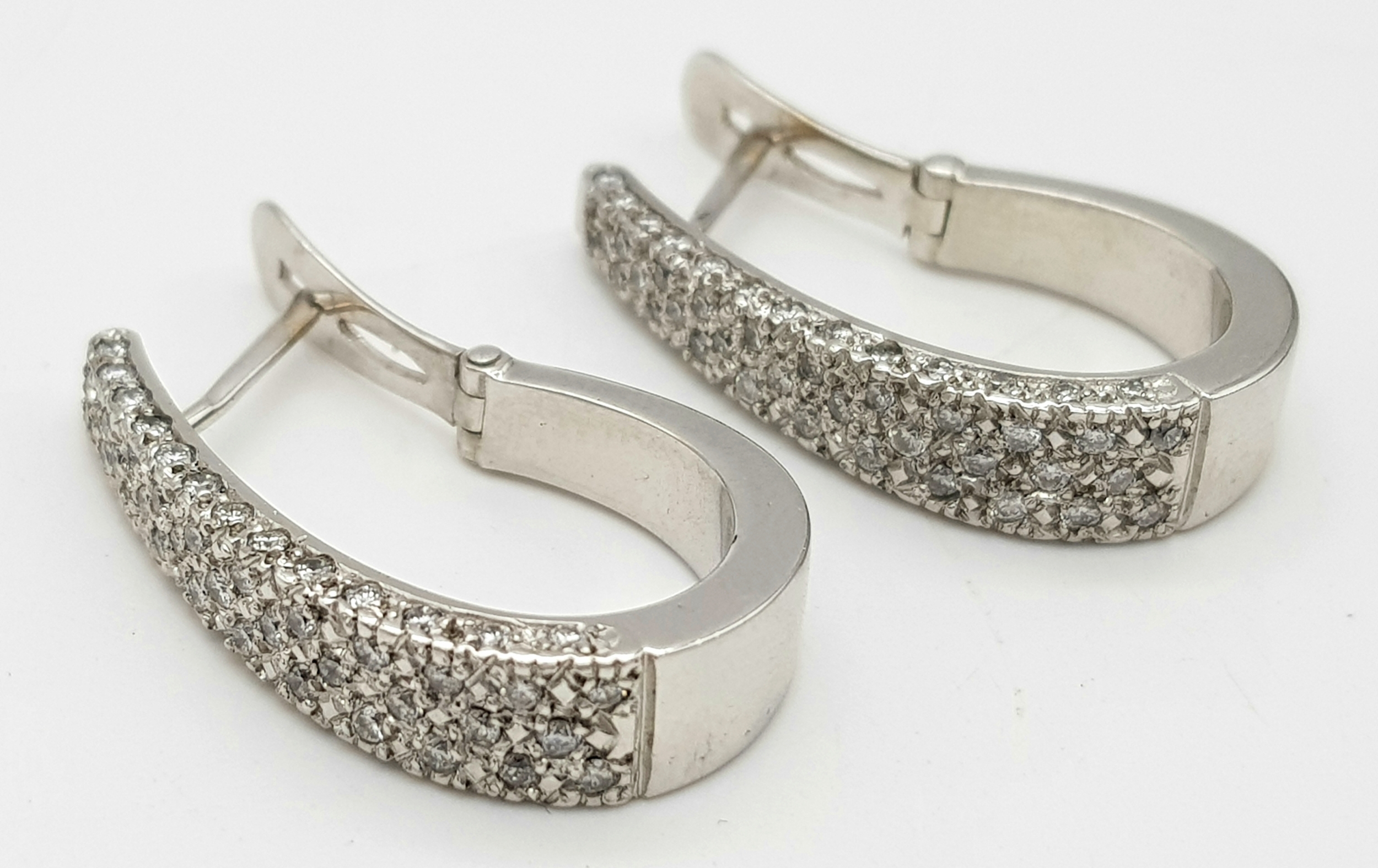A PAIR OF 18K WHITE GOLD DIAMOND SET EARRINGS 1CT. APPROX 7.2G TOTAL WEIGHT, 2.5CM x 1.5CM . REF: TAN 1007