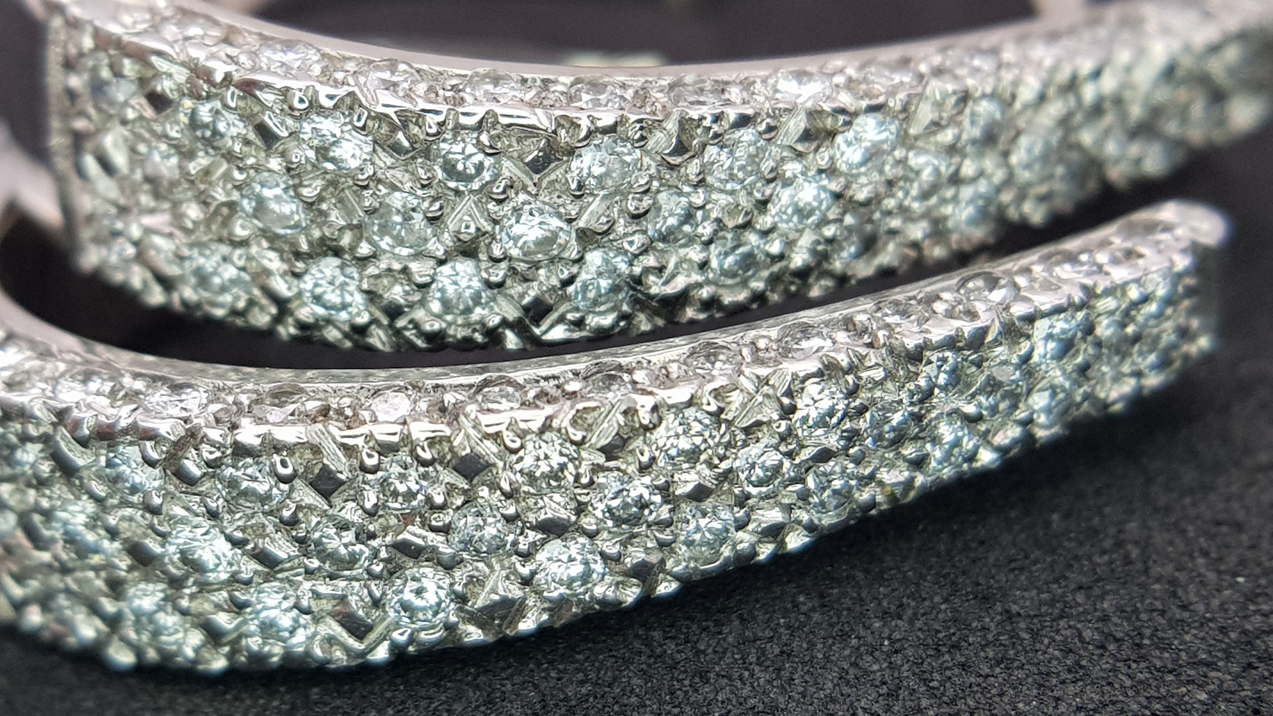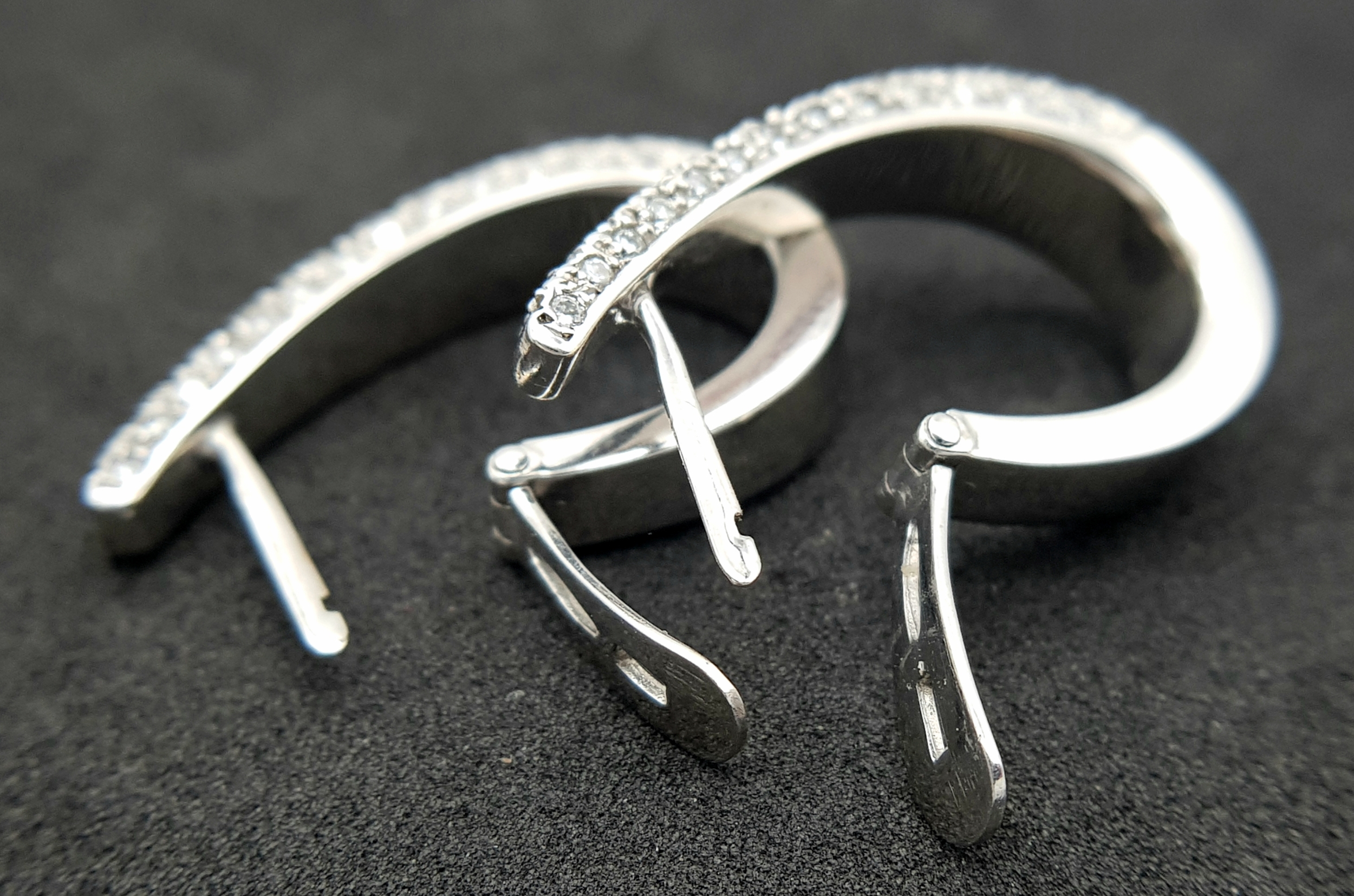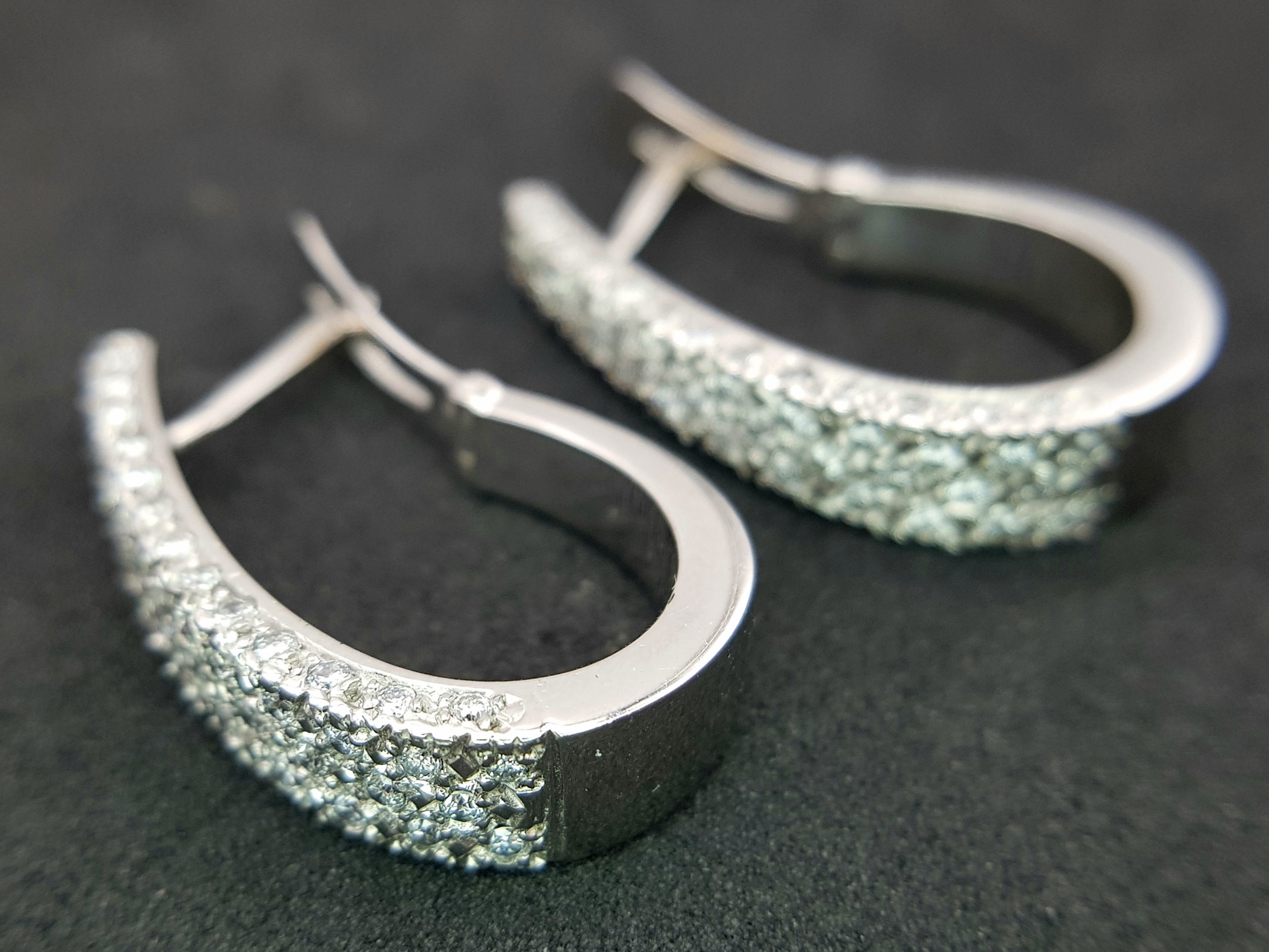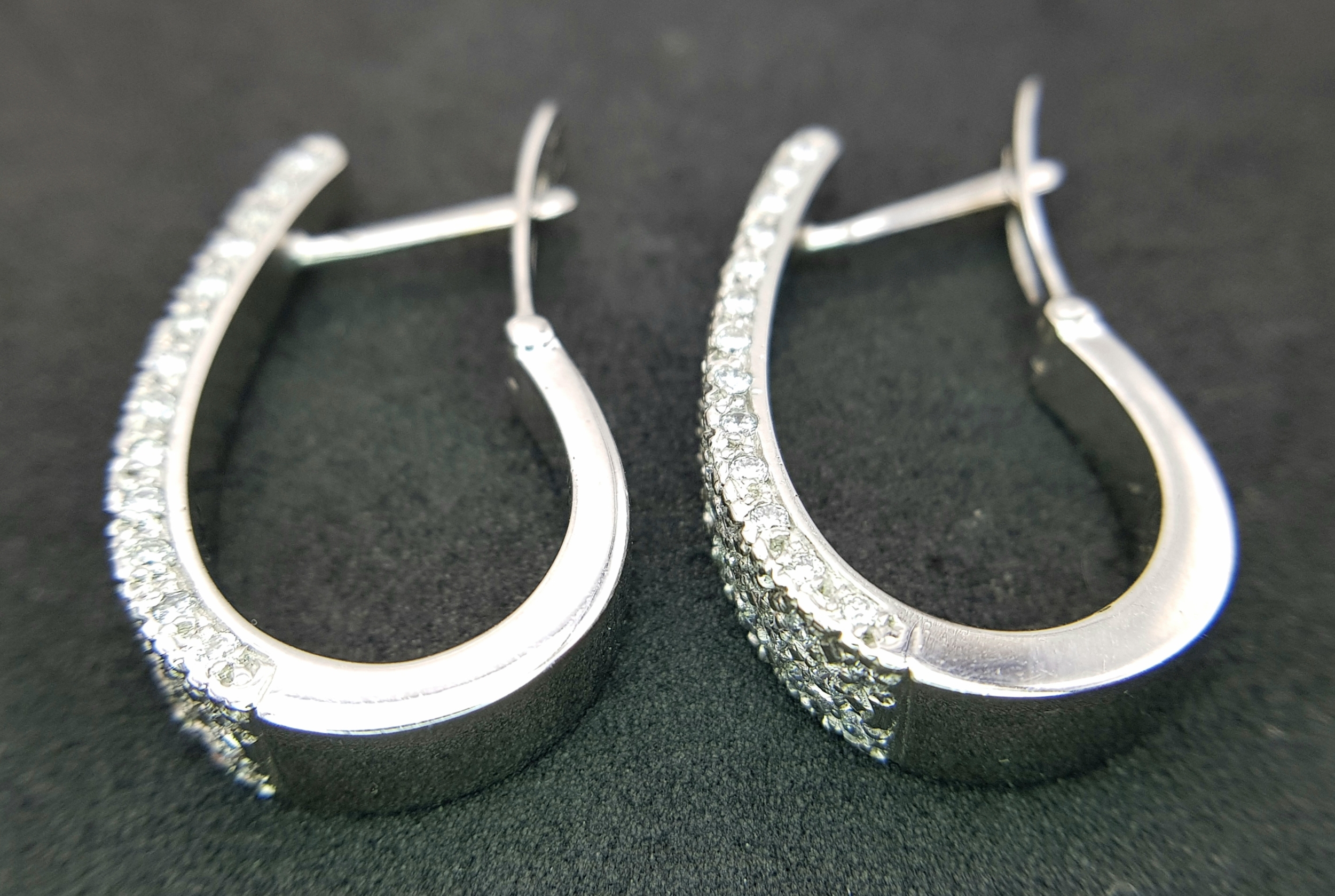 A PAIR OF 18K WHITE GOLD DIAMOND SET EARRINGS 1CT. APPROX 7.2G TOTAL WEIGHT, 2.5CM x 1.5CM . REF: TAN 1007