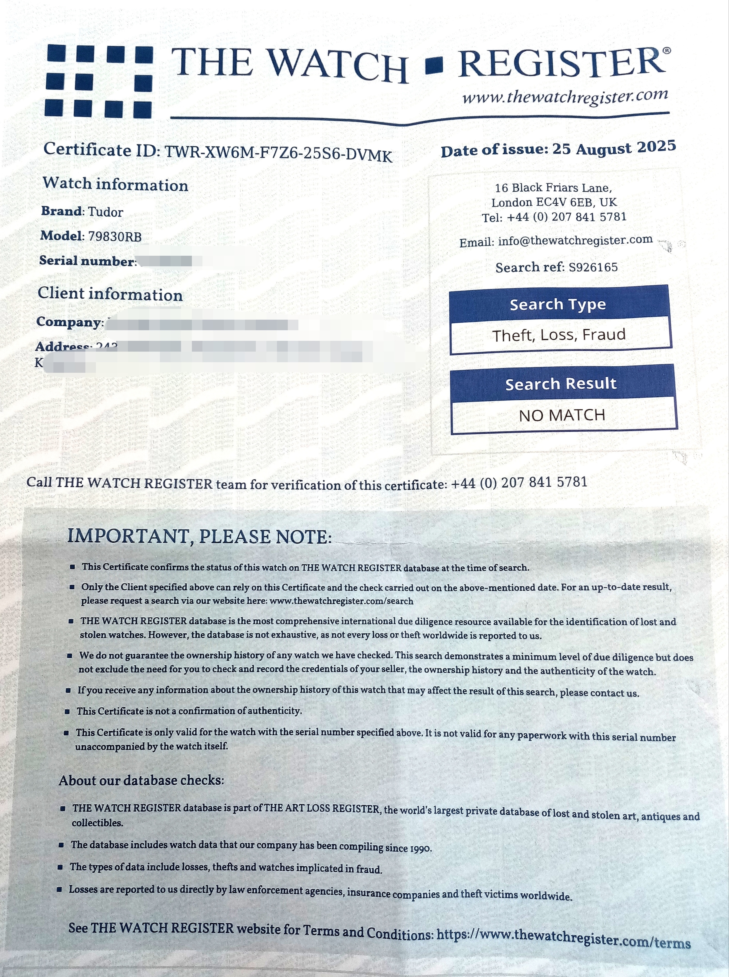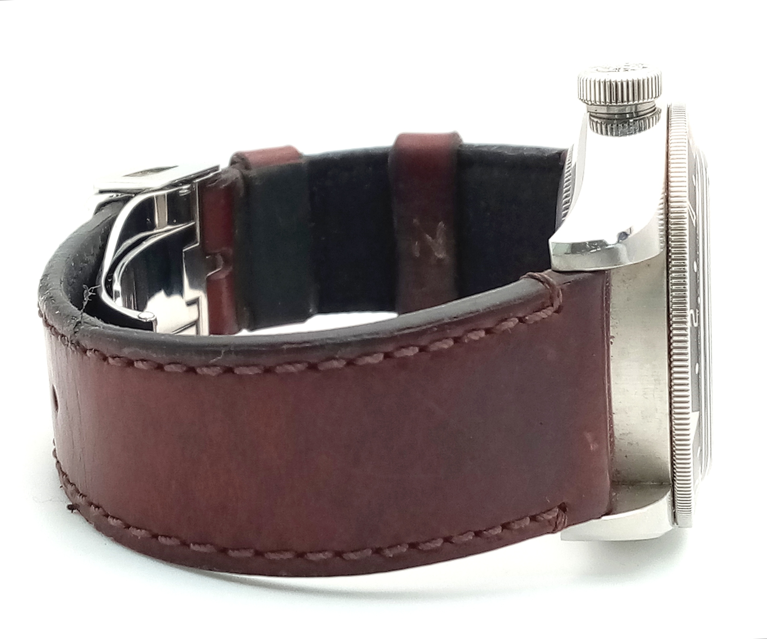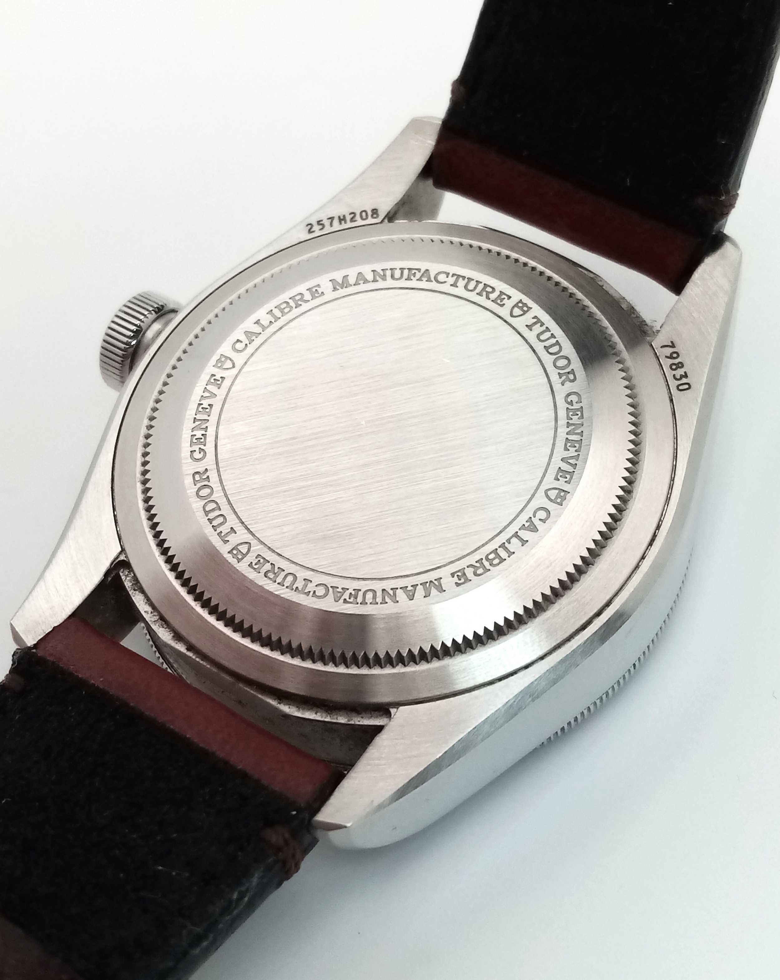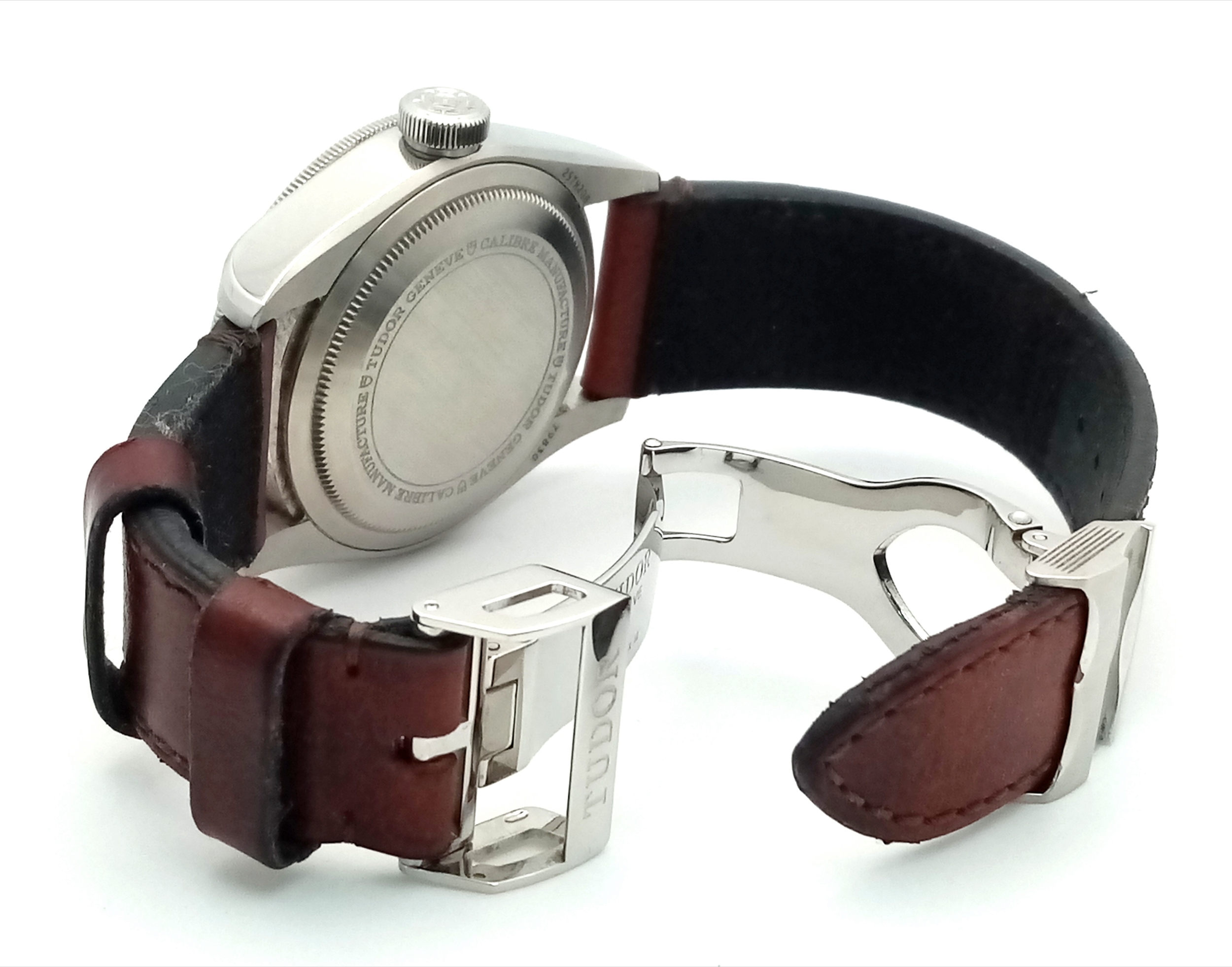 A Tudor GMT Automatic Gents Watch. Model 79830RB. Brown leather strap. Stainless steel case - 42mm. Black dial with date window. Rotating 'Pepsi' Bezel. In good condition and working order. Comes with box and papers. . REF: STK024710