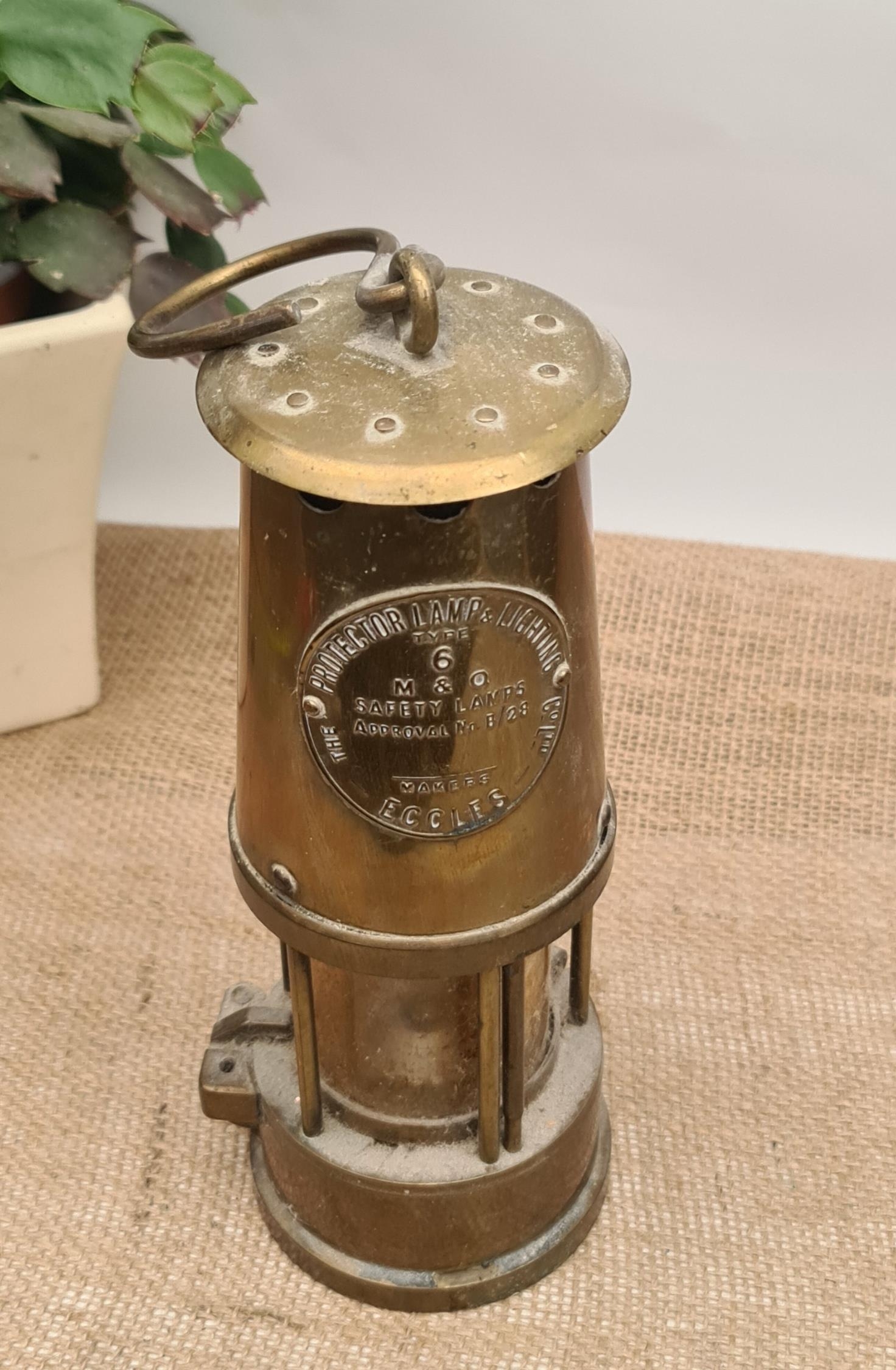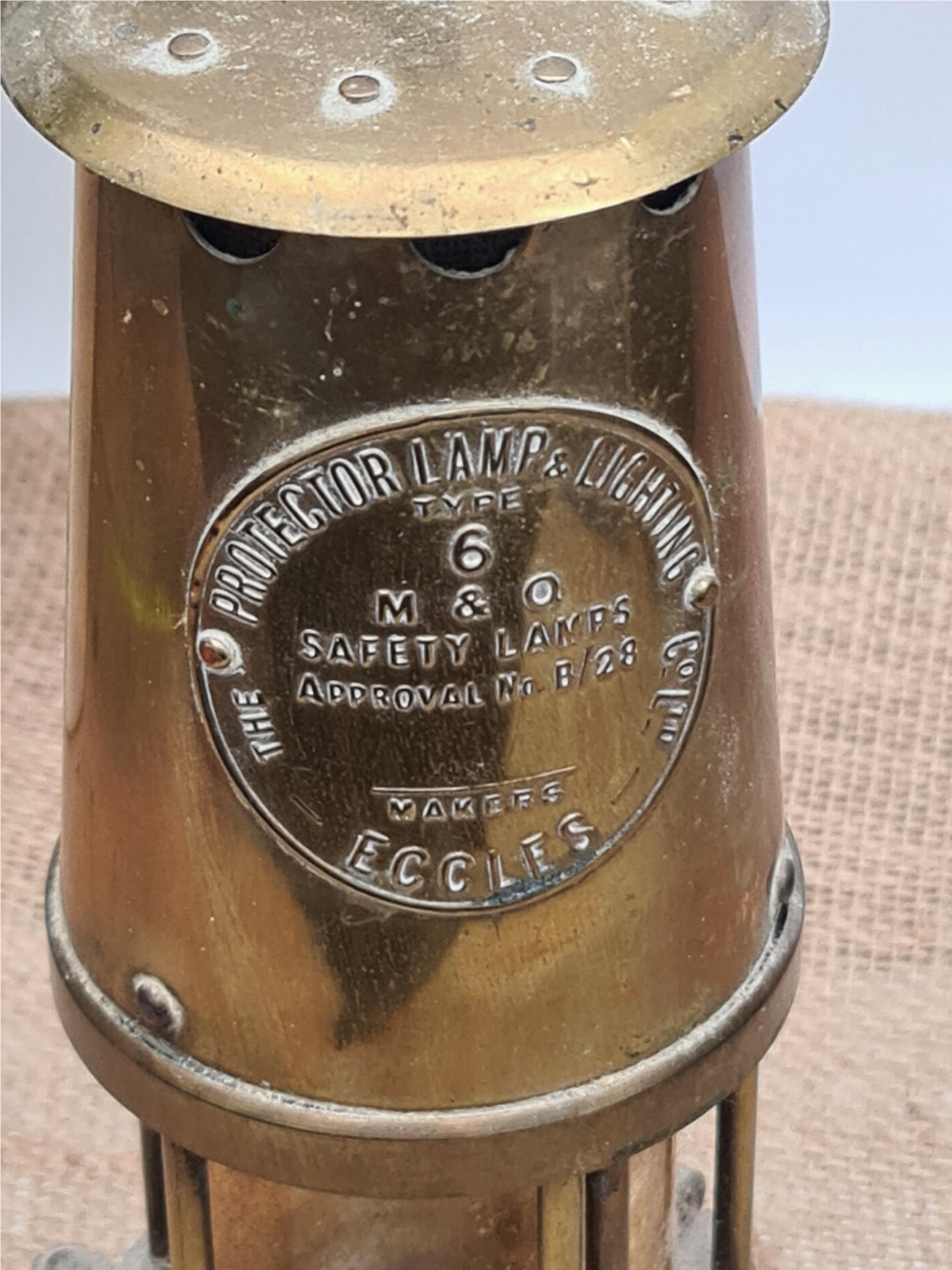 Vintage Large Miners Brass Lamp With Affixed Plate Detailing The Protector Lamp and Lighting Co. Ltd. Type 6 M and O Safety Lamp Approval No. B/28 Maker Eccles. Measures 23cm tall. Shipping is available. Please ask for a quote before bidding. Where possible we combine shipping costs. Remember, if you are the highest bidder above reserve on this Lot you have bought the item and are legally responsible for the item. Viewing is recommended in either person or via video link. Contact us to arrange.
