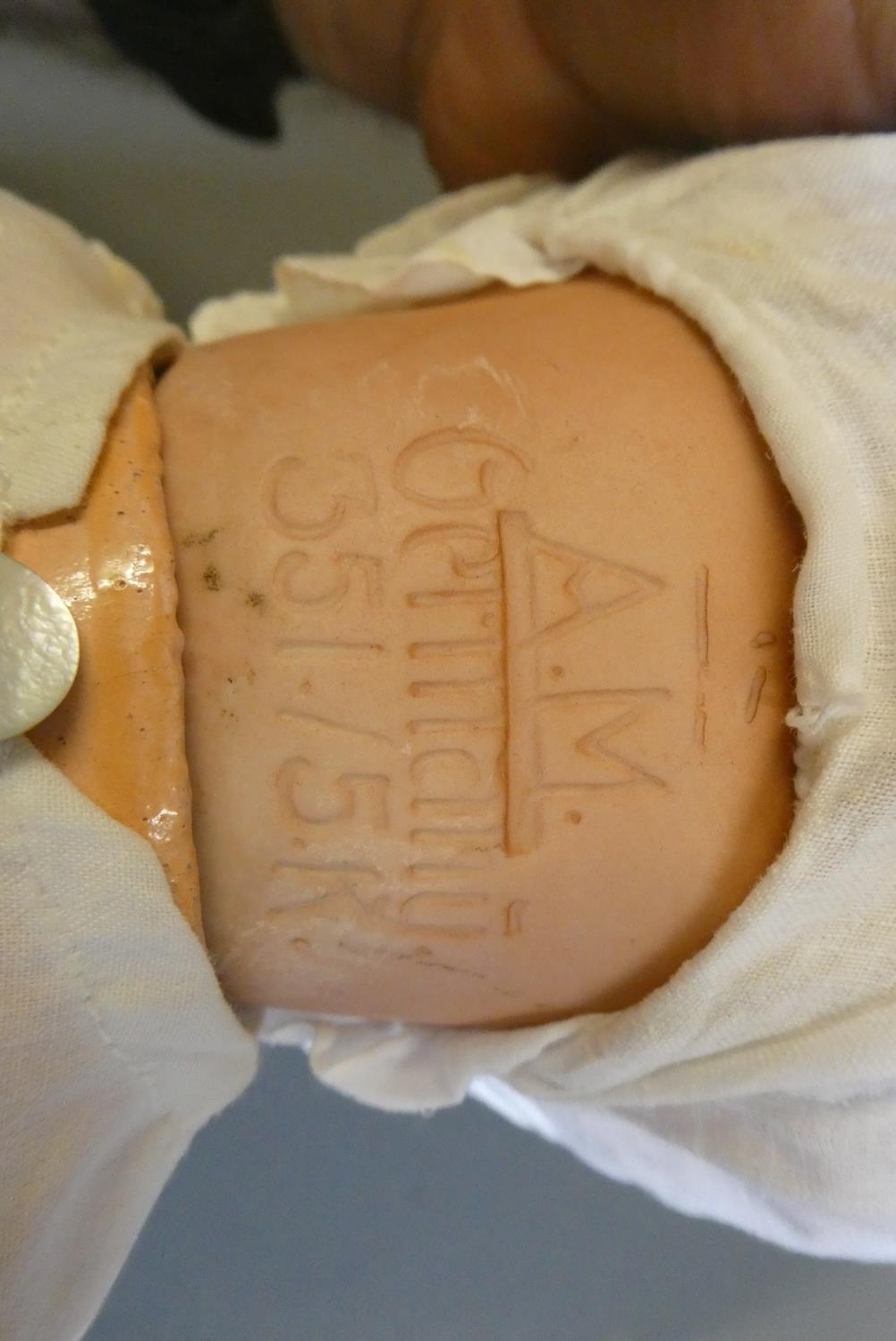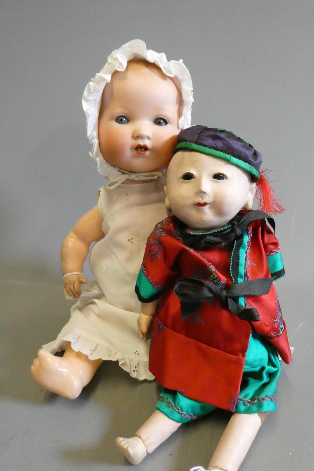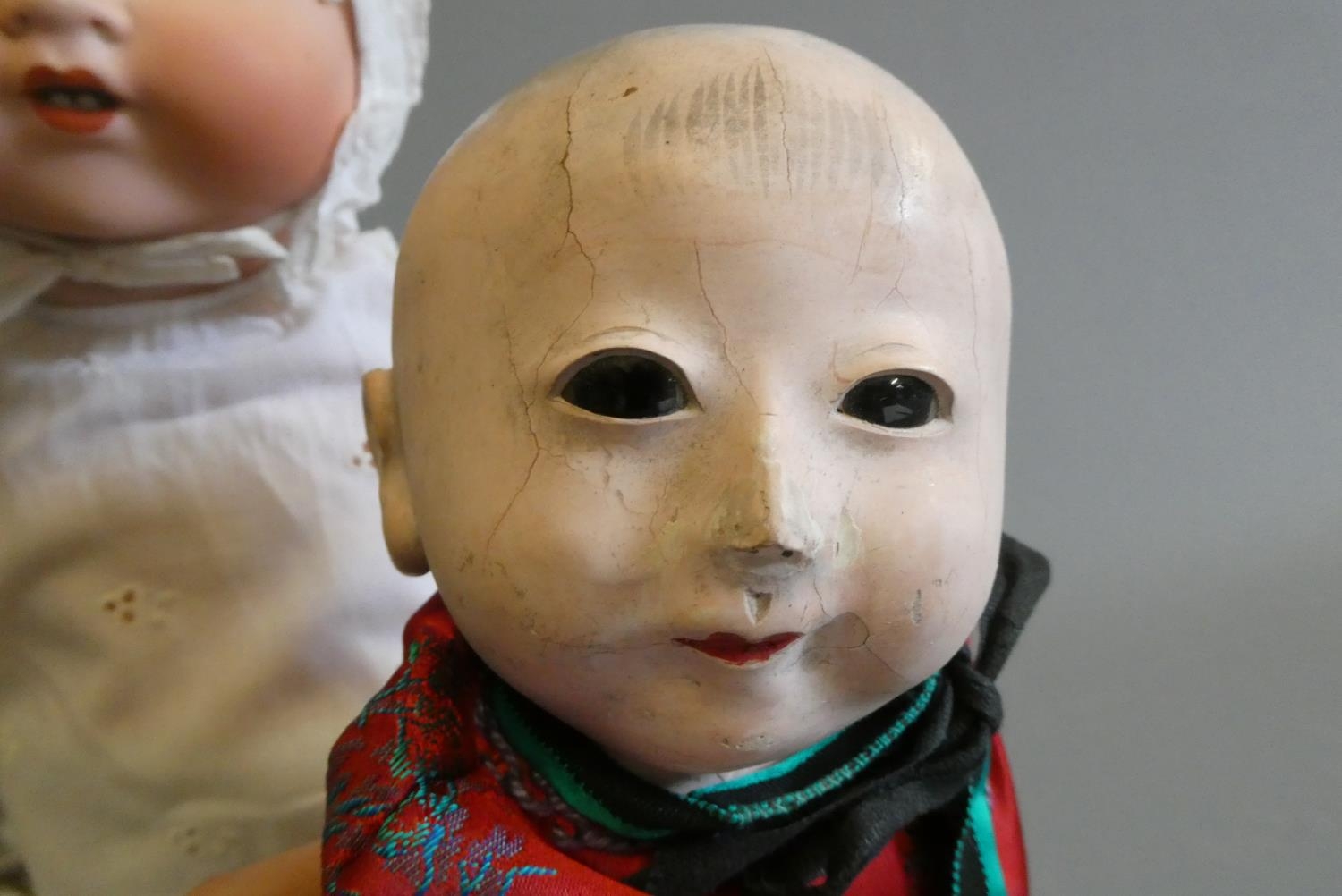Generally good, AM doll with no faults to head but wear to hands and feet. Oriental doll with some crazing/minor cracking.
