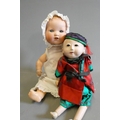 Two vintage dolls, comprising an Armand Marseille bisque socket head doll with sleeping eyes, open mouth, applied bottom teeth, with bent limb composition body, numbered 351/5K, and 13" all composition oriental jointed doll with fixed brown glass eyes