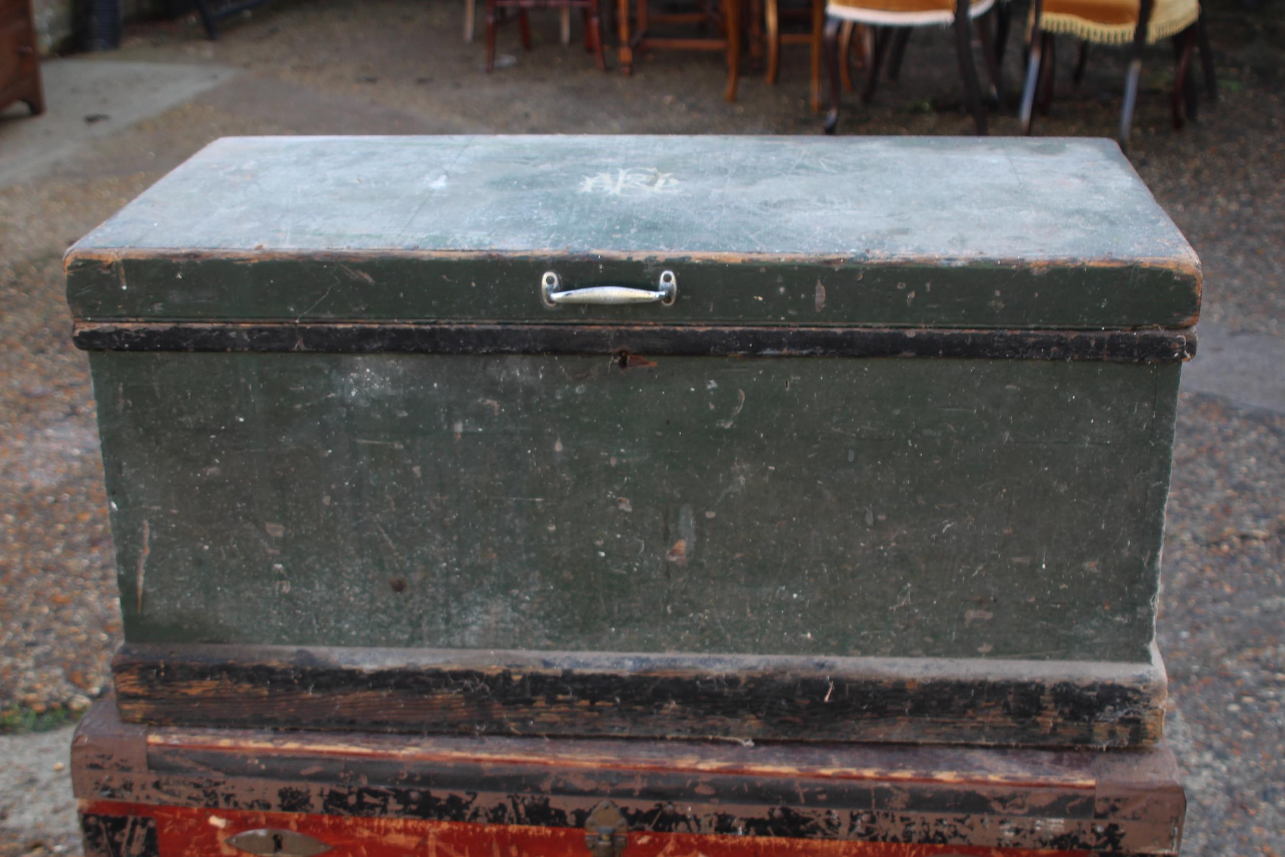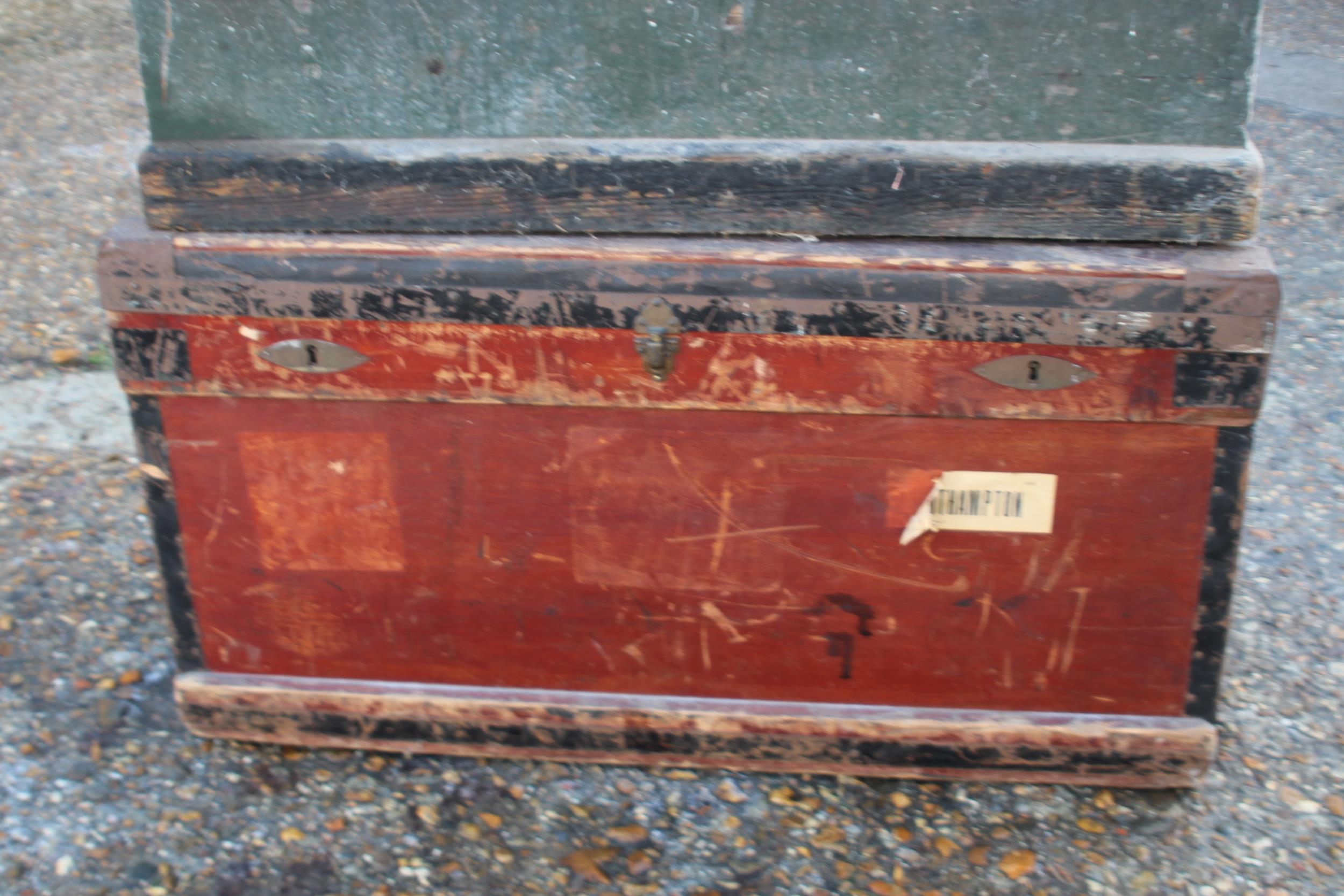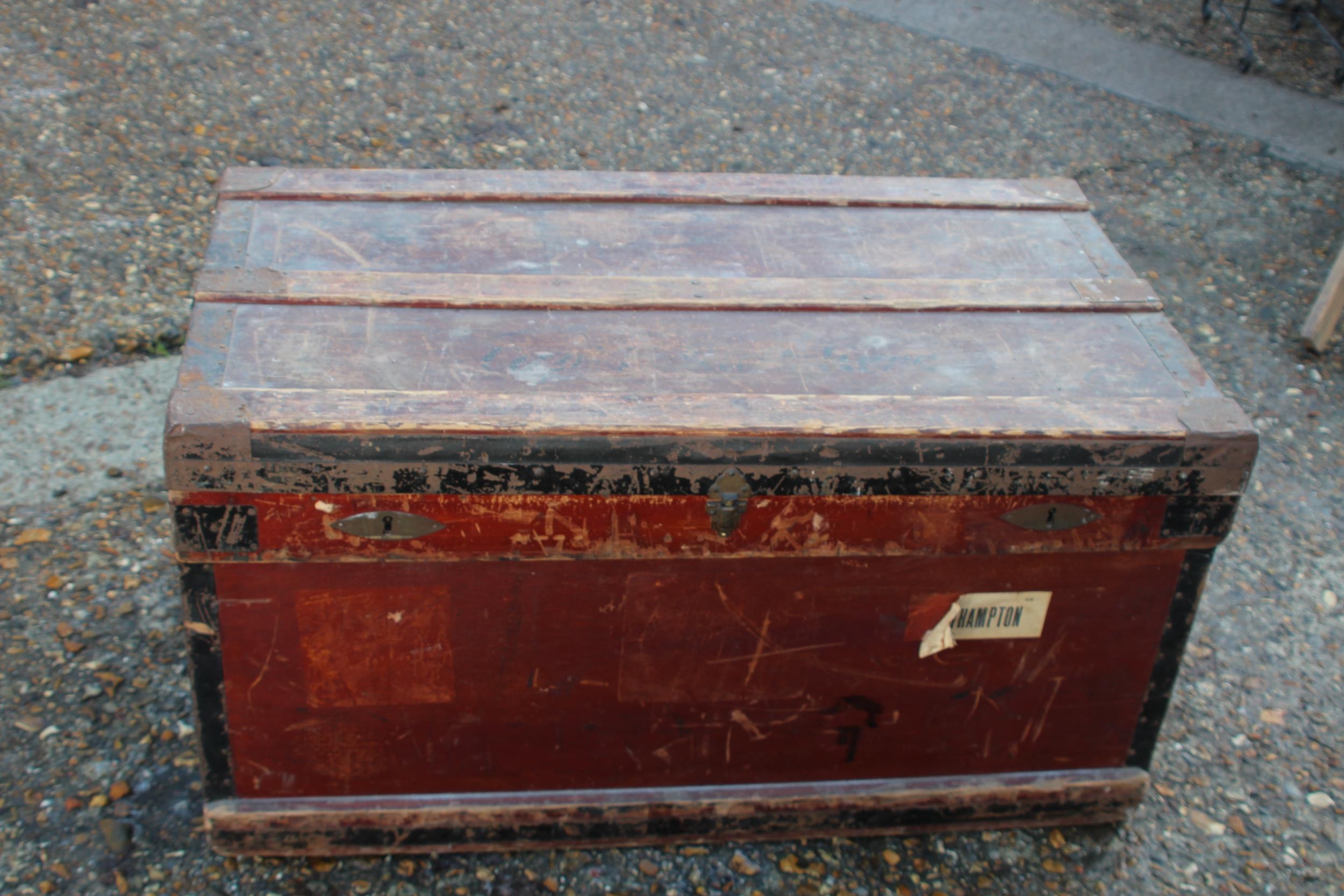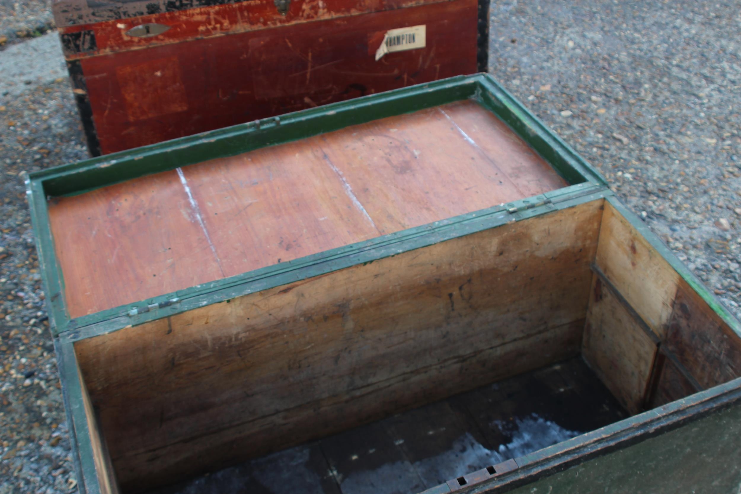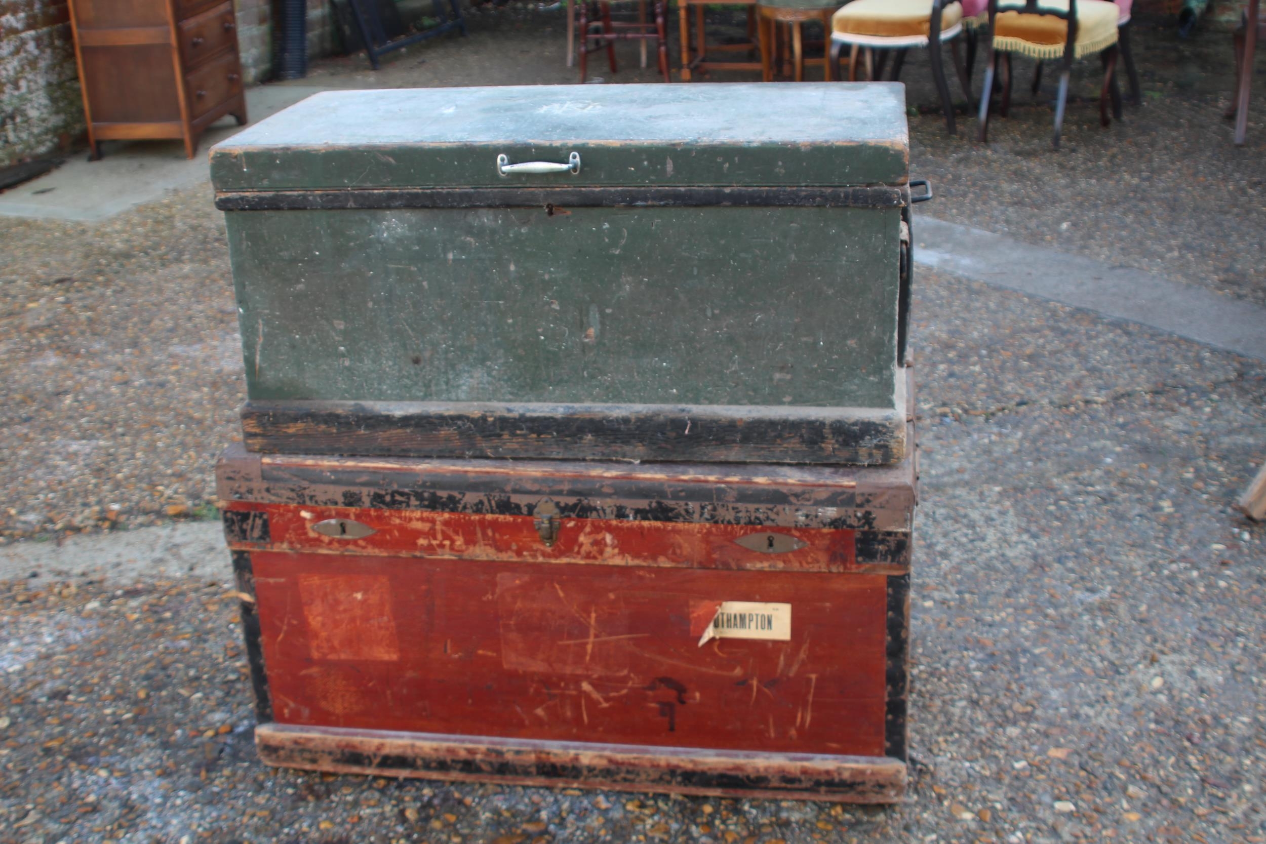 TWO VINTAGE WOODEN TRUCKS ONE LEAD LINED56 X 97 X 53CM