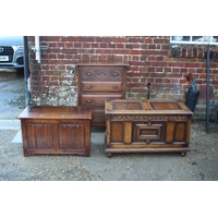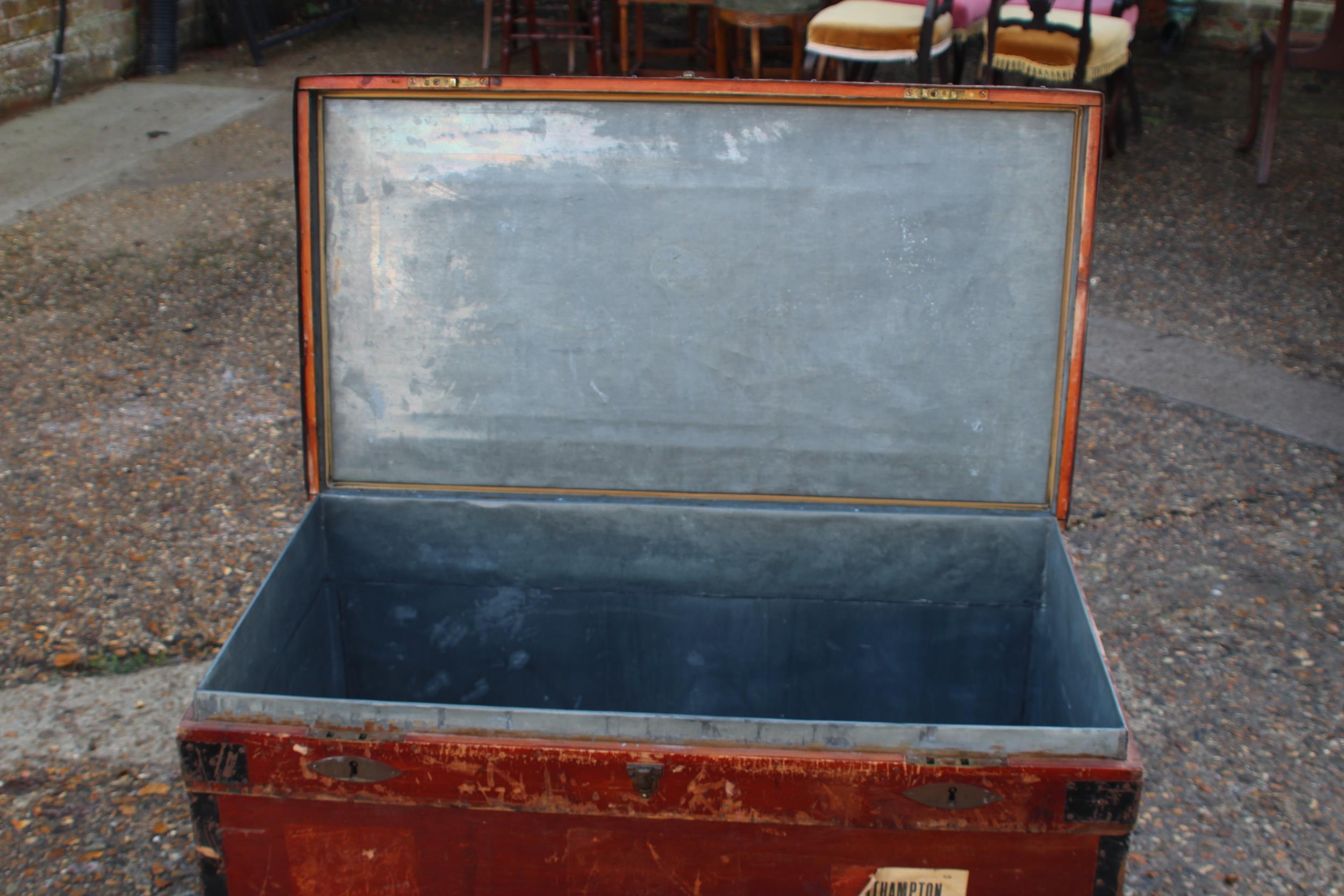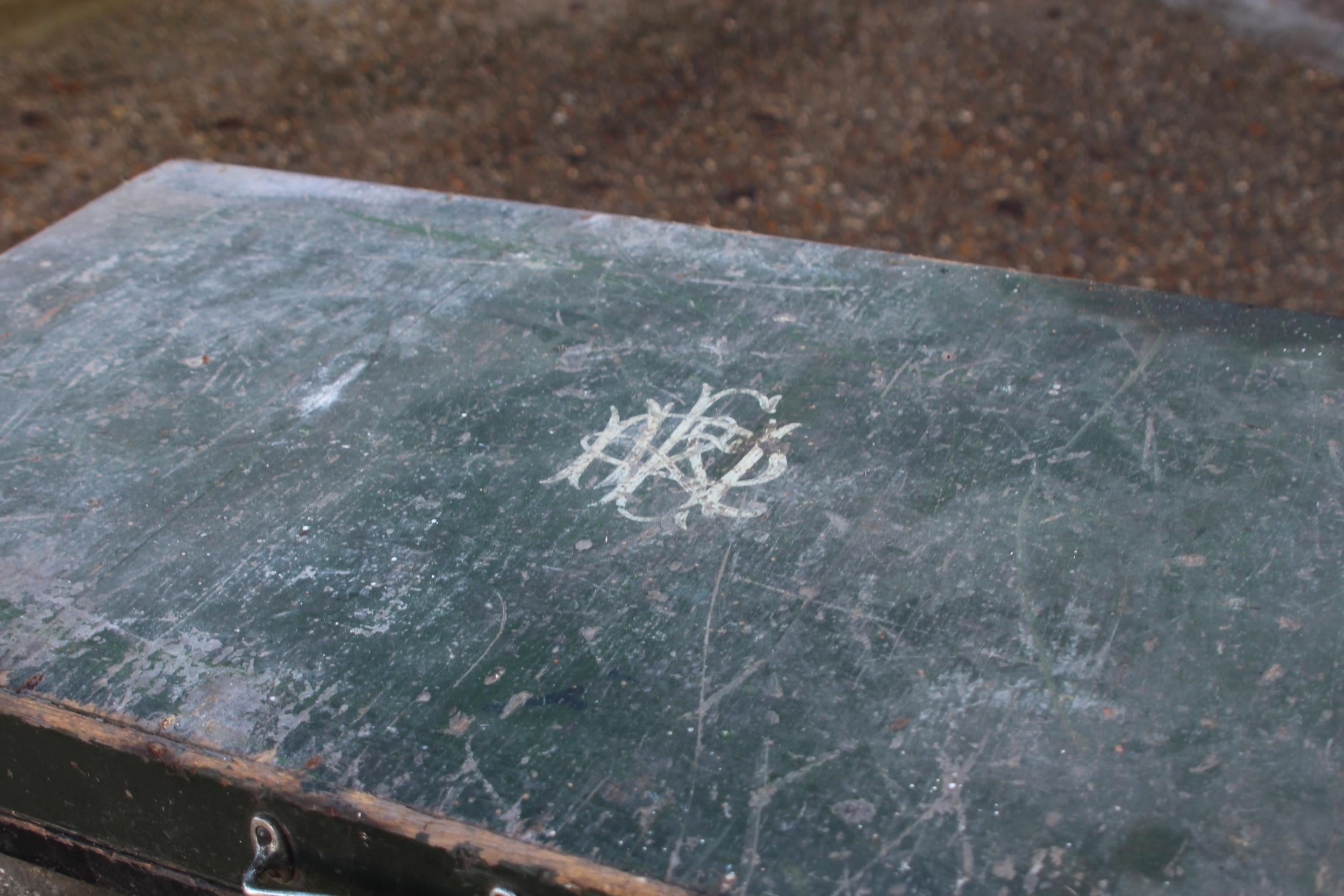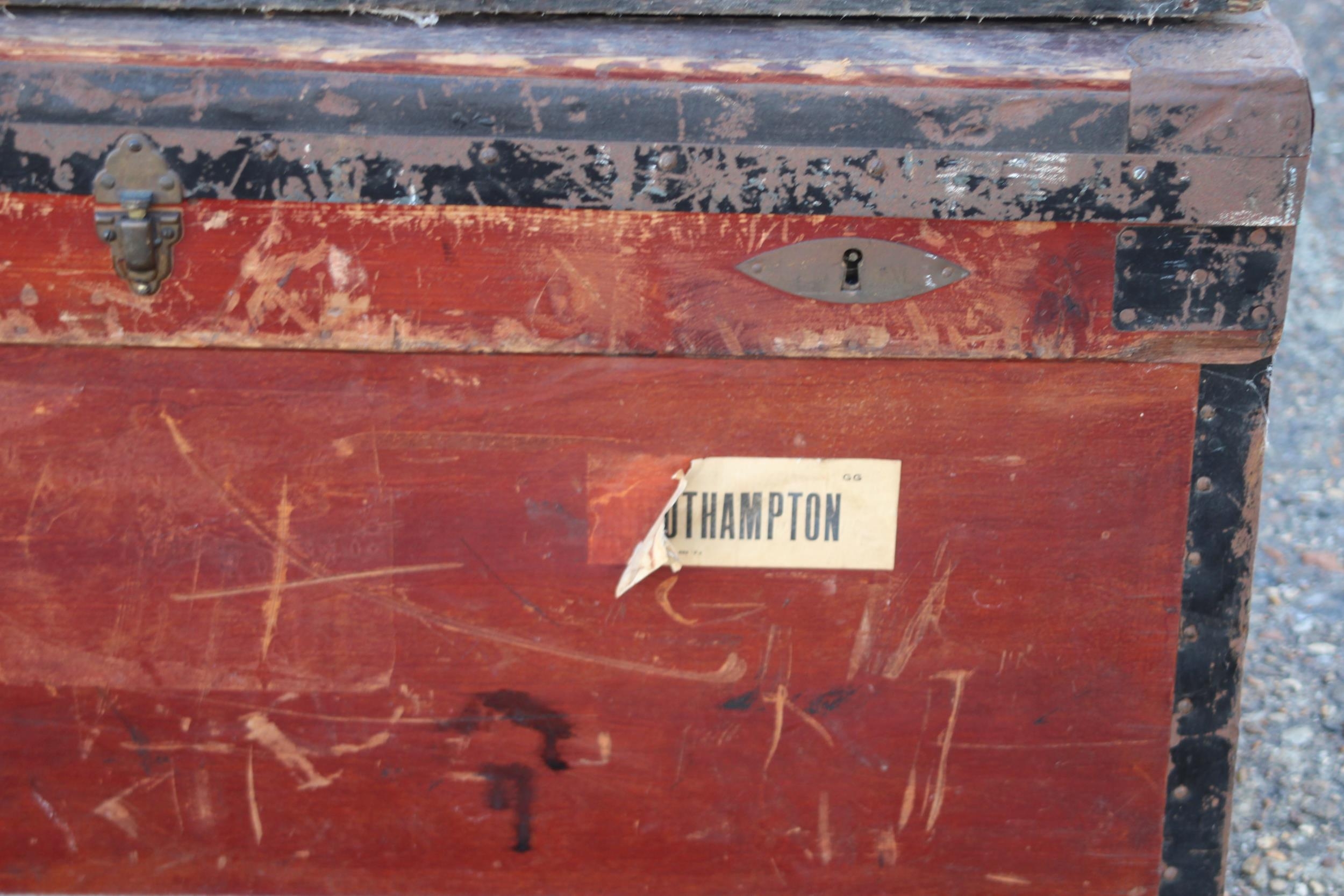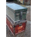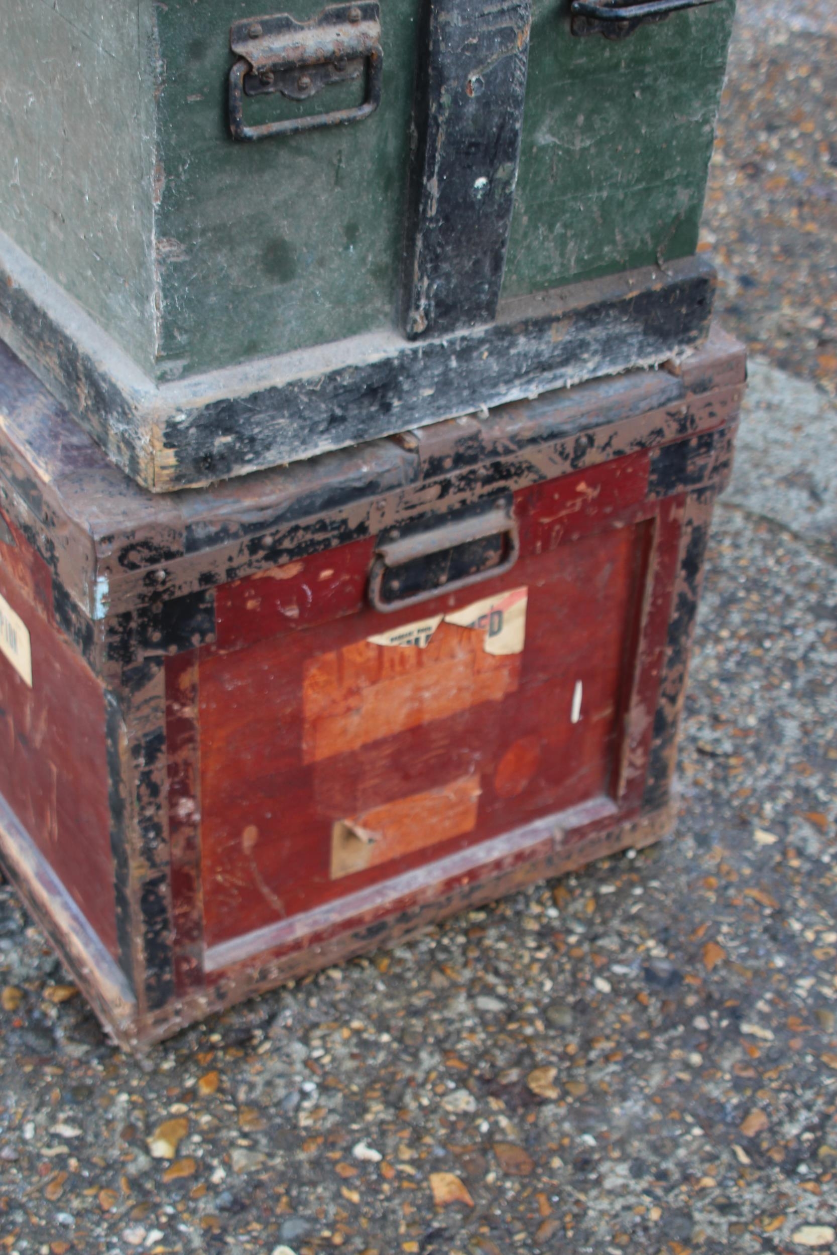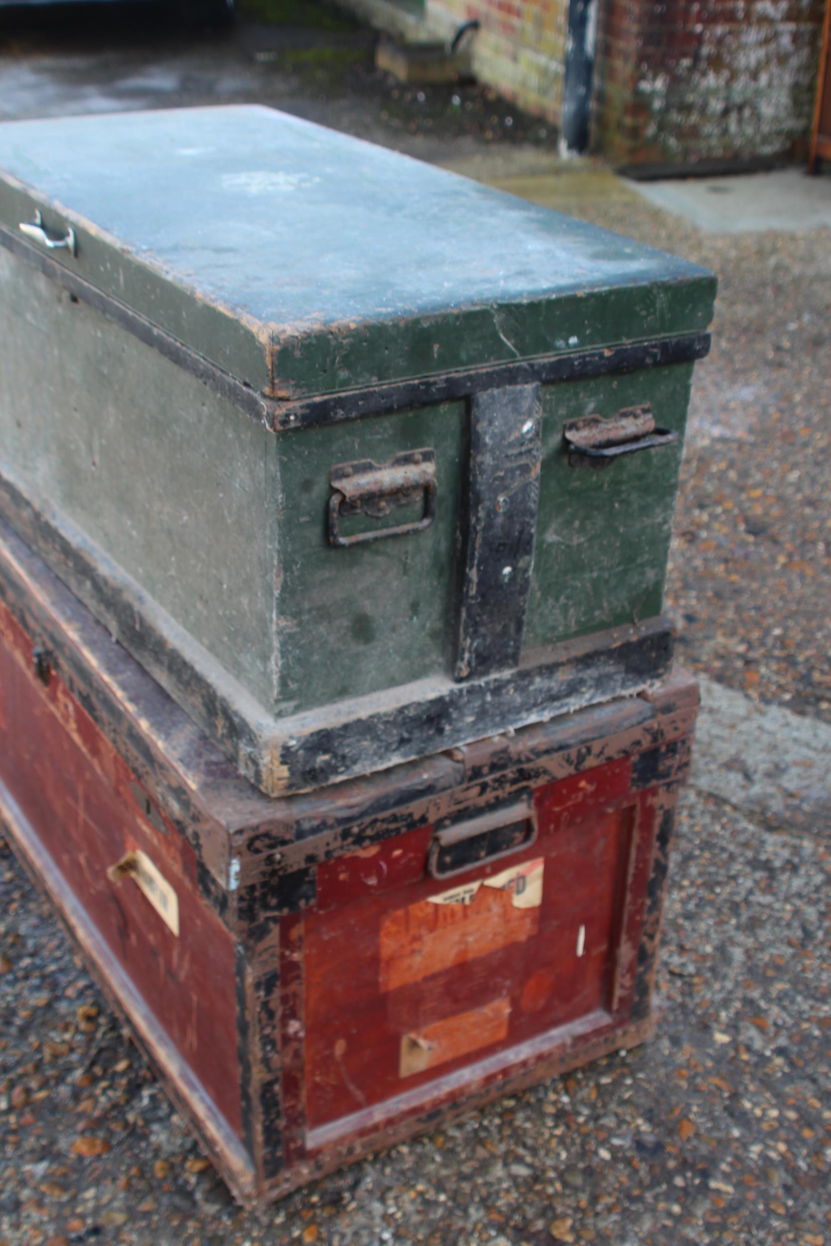 TWO VINTAGE WOODEN TRUCKS ONE LEAD LINED56 X 97 X 53CM