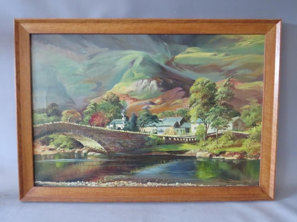 ALAN BENGALL CHARLTON (1913-1981). Lakeland scene 'Grange in Borrowdale', see verso, signed lower right, oil on canvas, framed, 49 x 75 cm