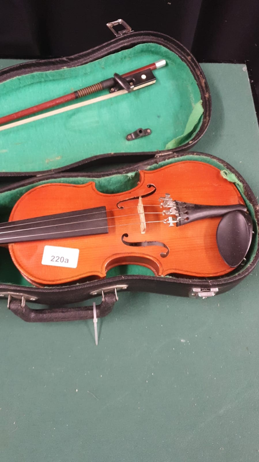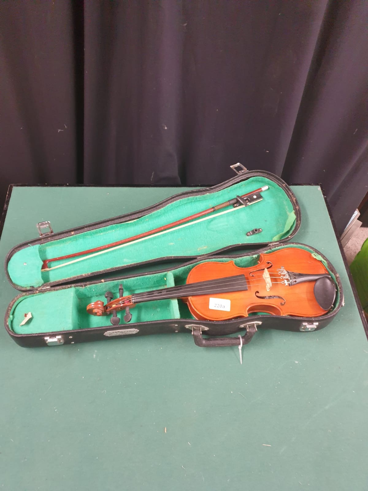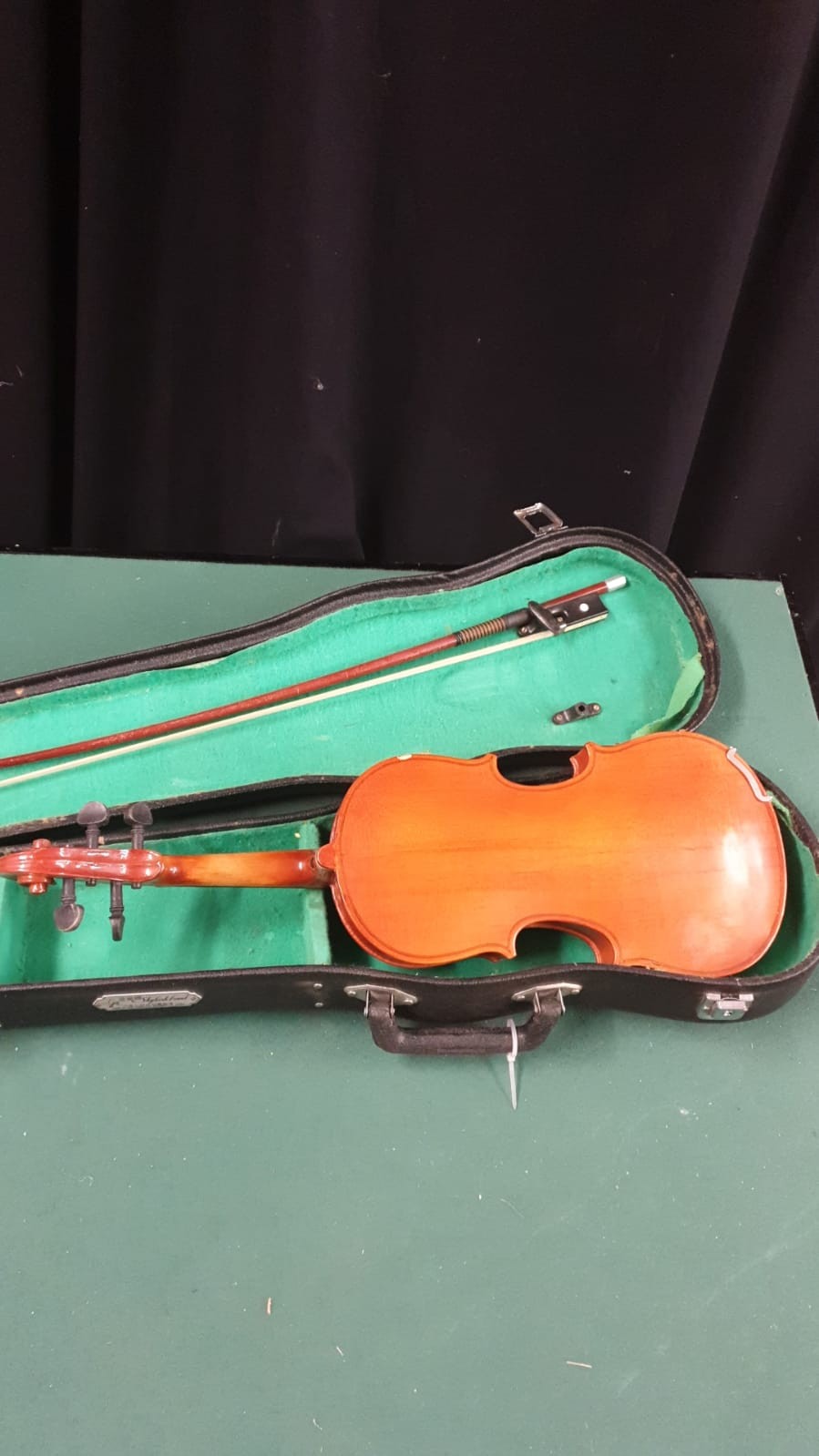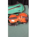 Violin with bow in fitted case.