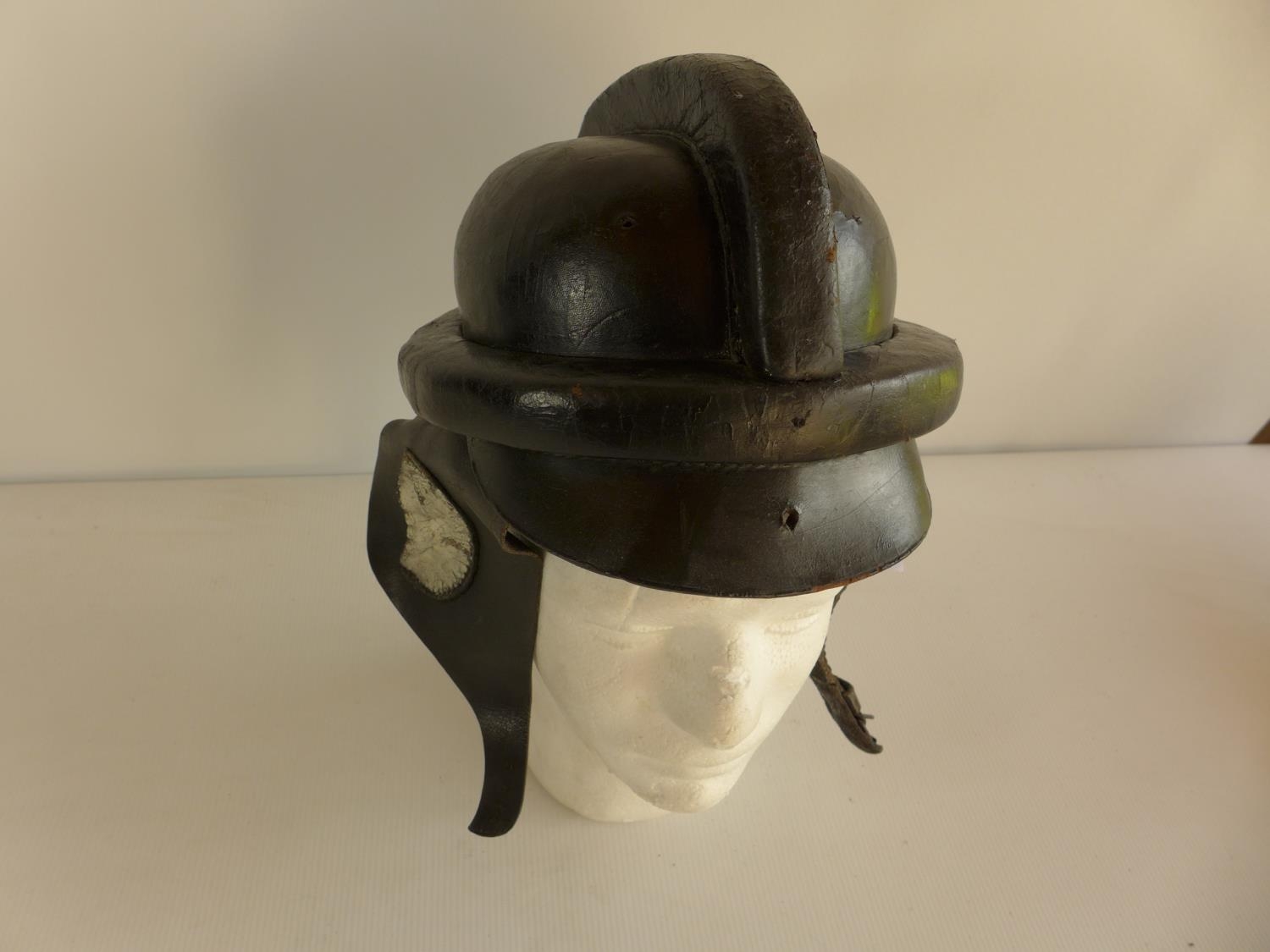 A NAZI GERMANY NSKK LEATHER HELMET (PLEASE NOTE THAT A BADGE FOR THIS HELMET IS LOT 361)
