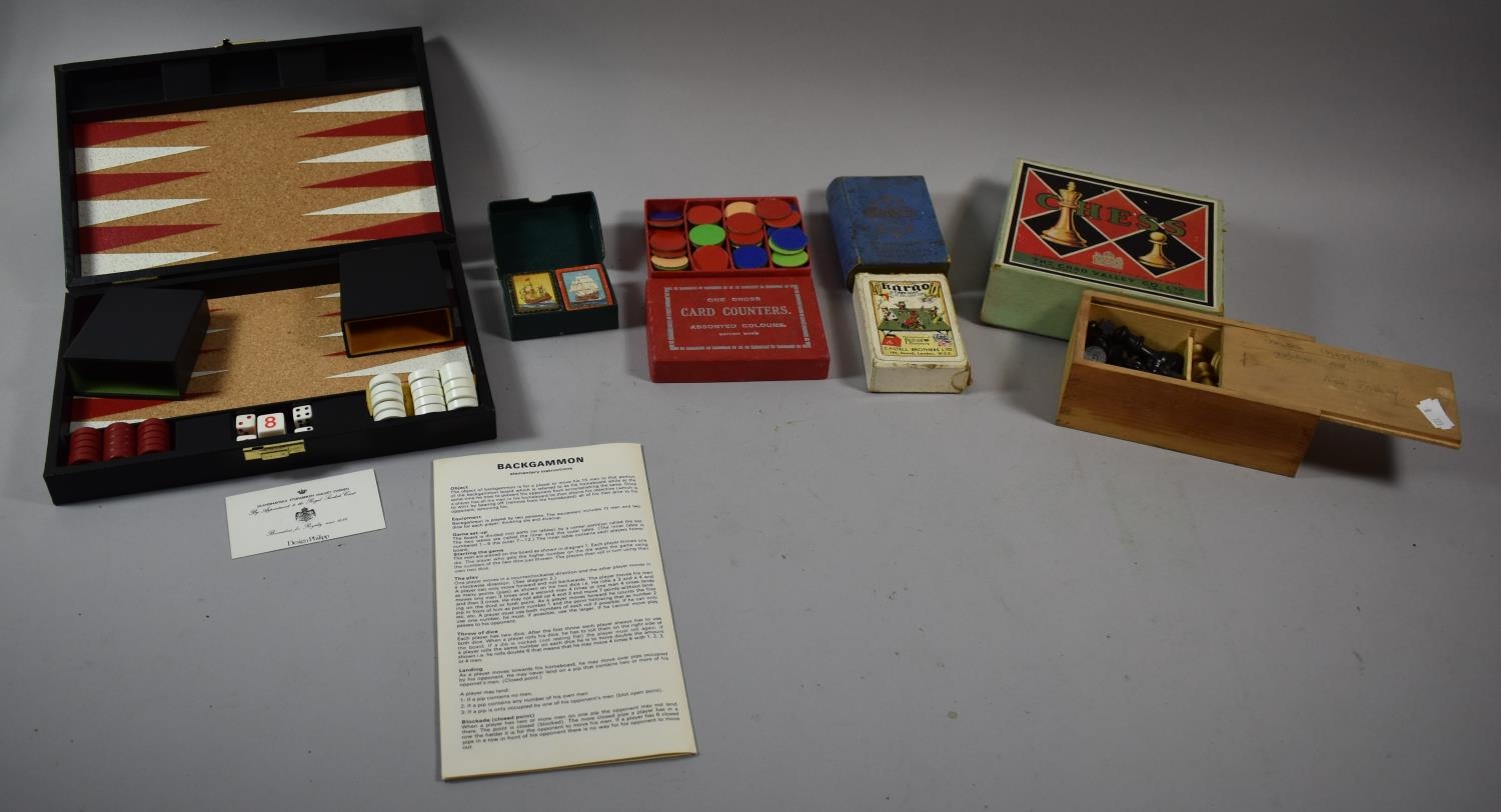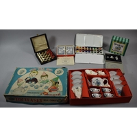 A Collection of Various Vintage Toys to Include Wooden Chess Set, Chad Valley Boxed Example, Cars Etc