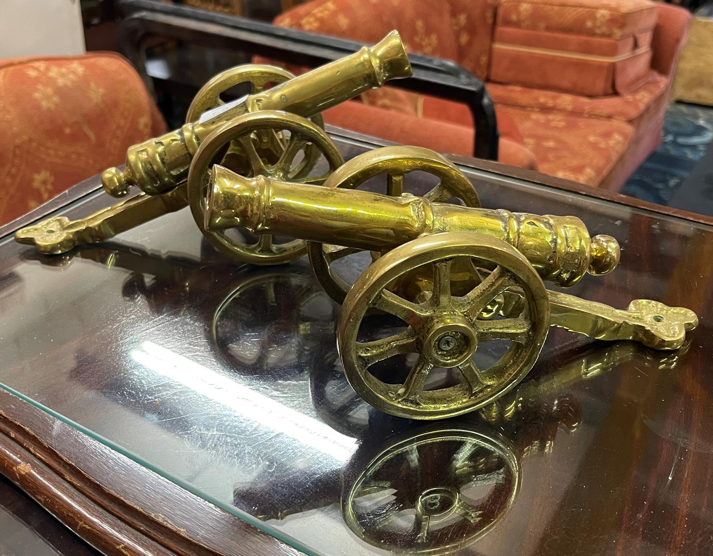 PAIR OF BRASS CANNONS