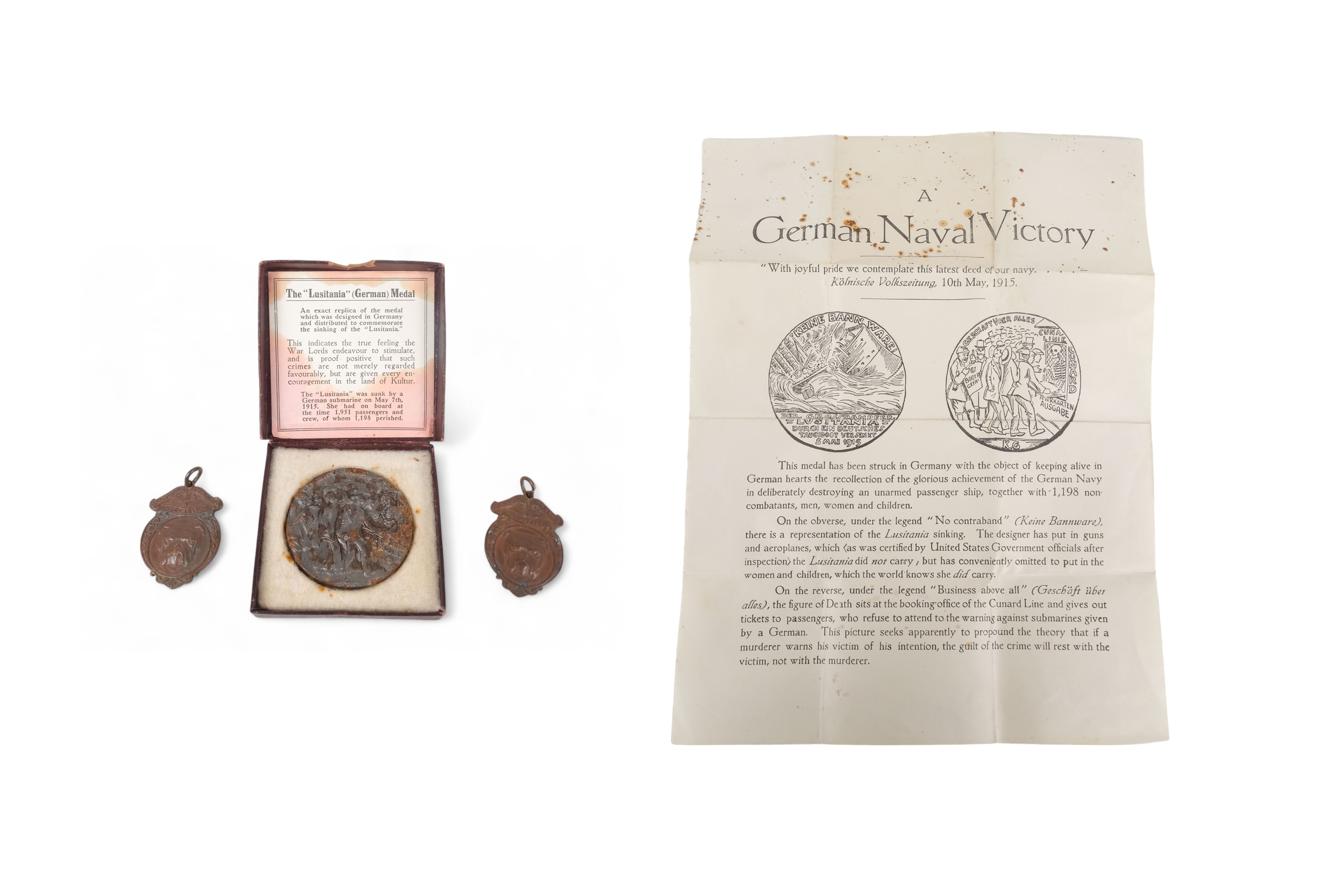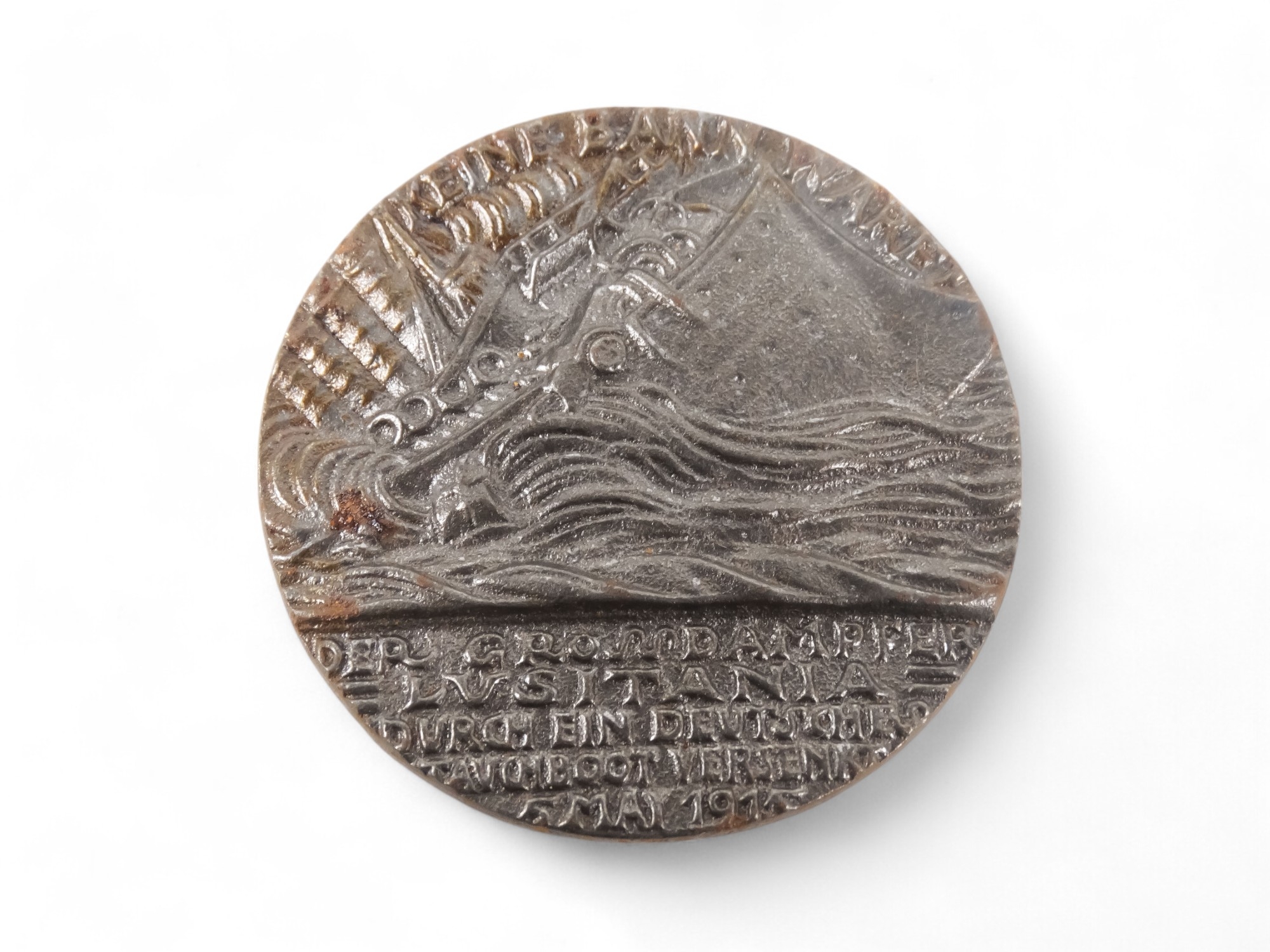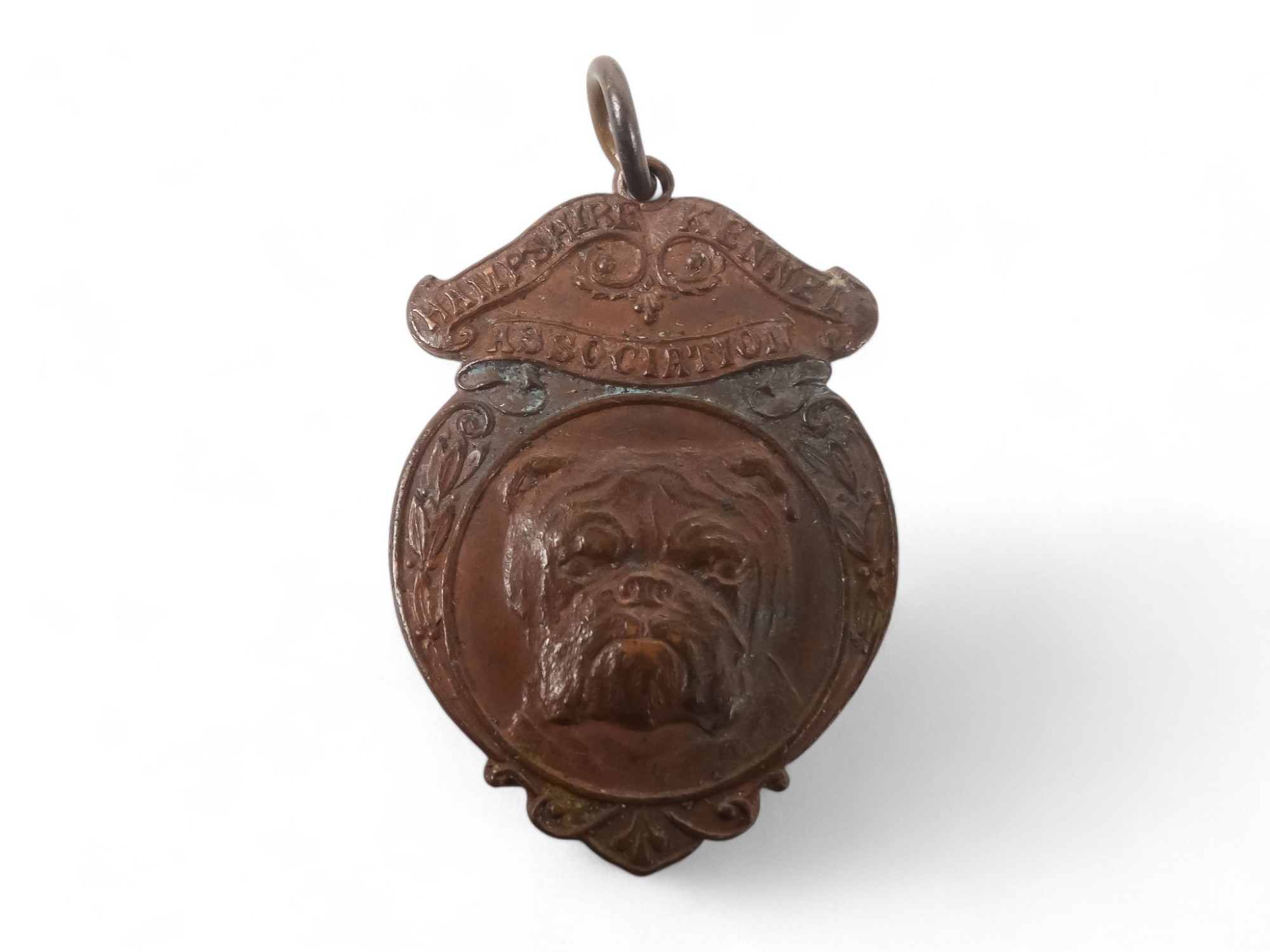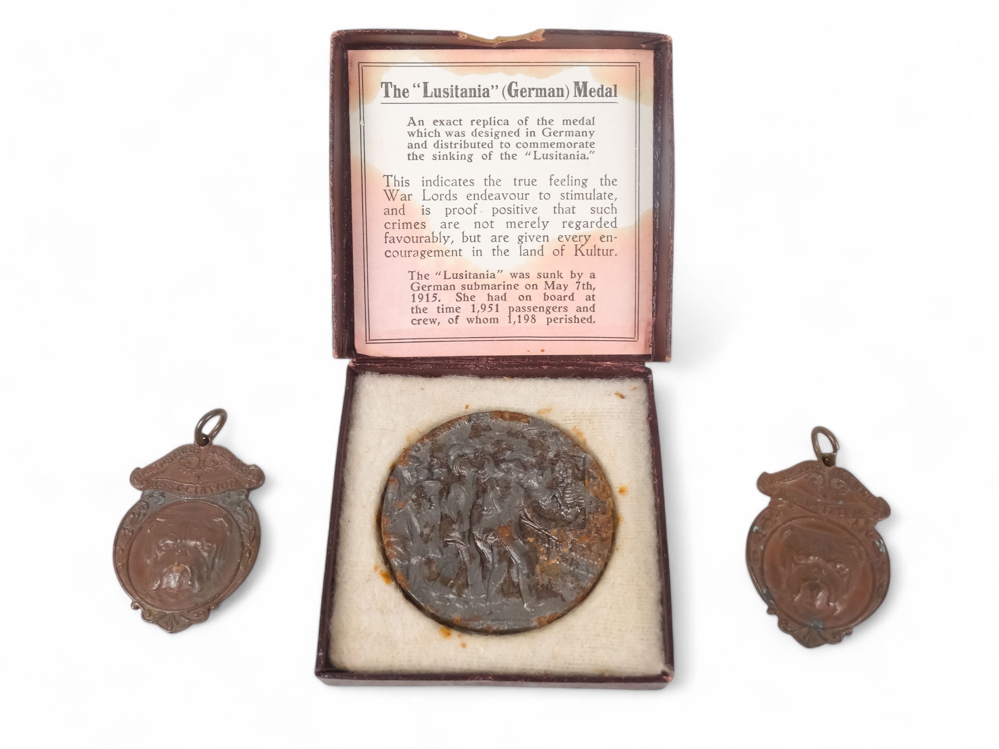 Two early 20th century Hampshire Kennel Association bronze badges - together with a RMS Lusitania medal with box and papers.