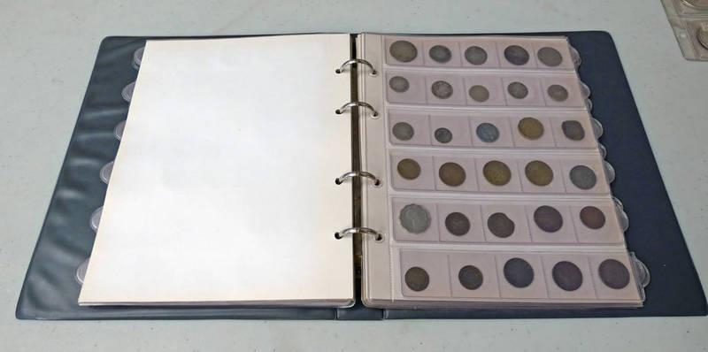 COIN ALBUM OF MOSTLY 20TH CENTURY COINS TO INCLUDE 1739 GERMAN STATES 3 PFENNIG, 1834 & 1835 WILLIAM IV PENNIES, 1902 CANADA 10 CENTS, VARIOUS MOUNTED SILVER EXAMPLES, ETC