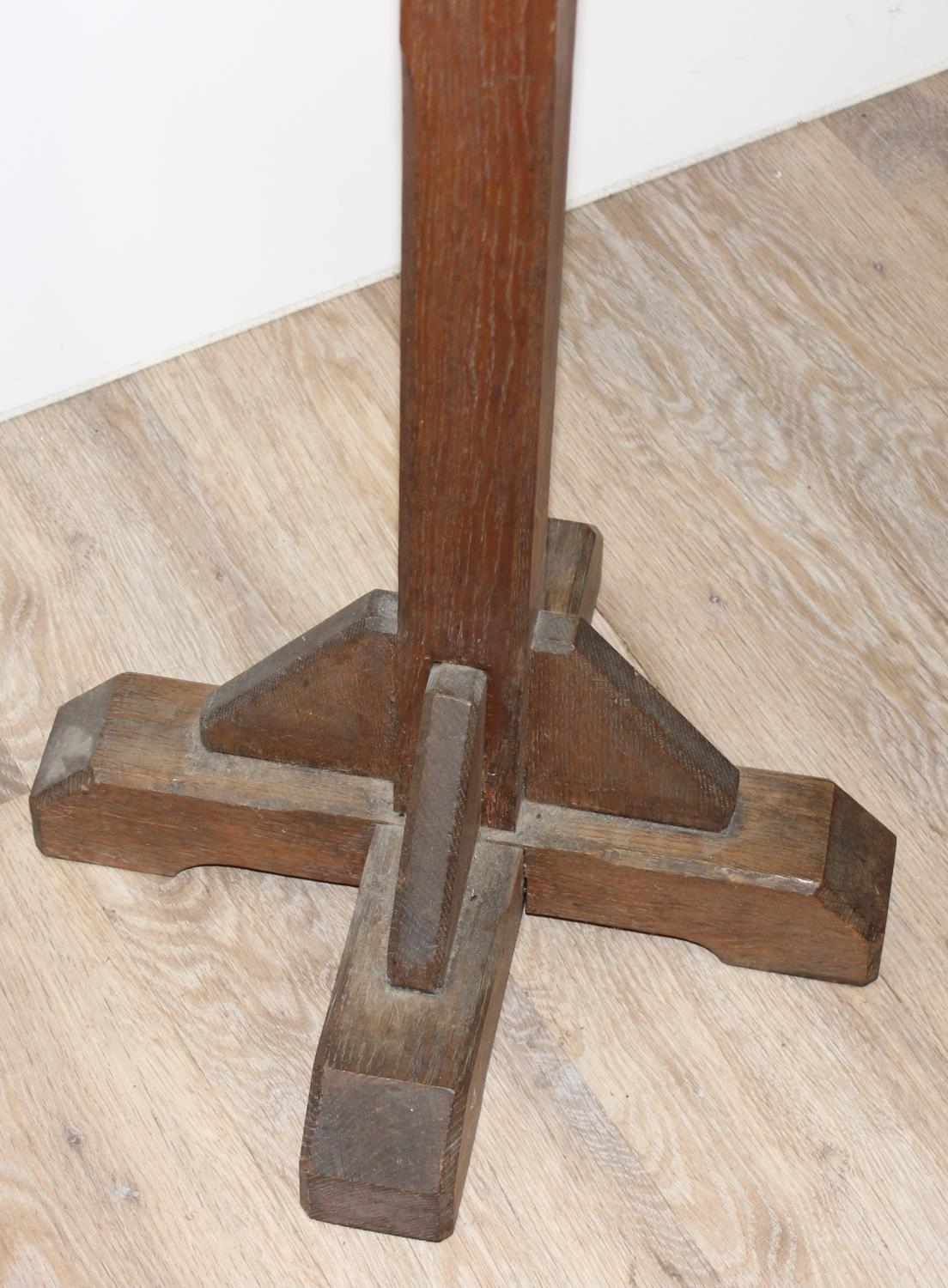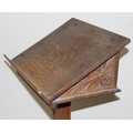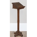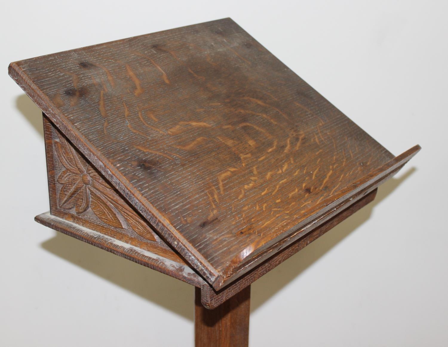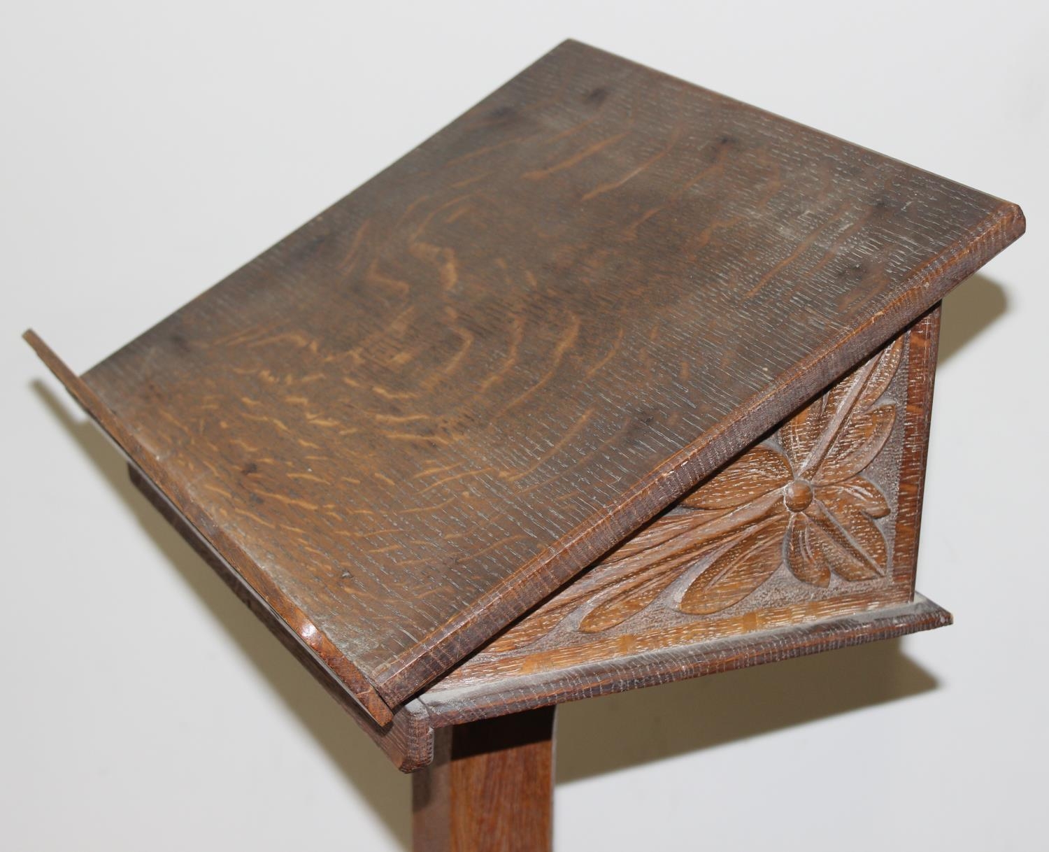 A vintage oak lectern with carved details, approx 40cm wide x 40cm deep x 124cm tall