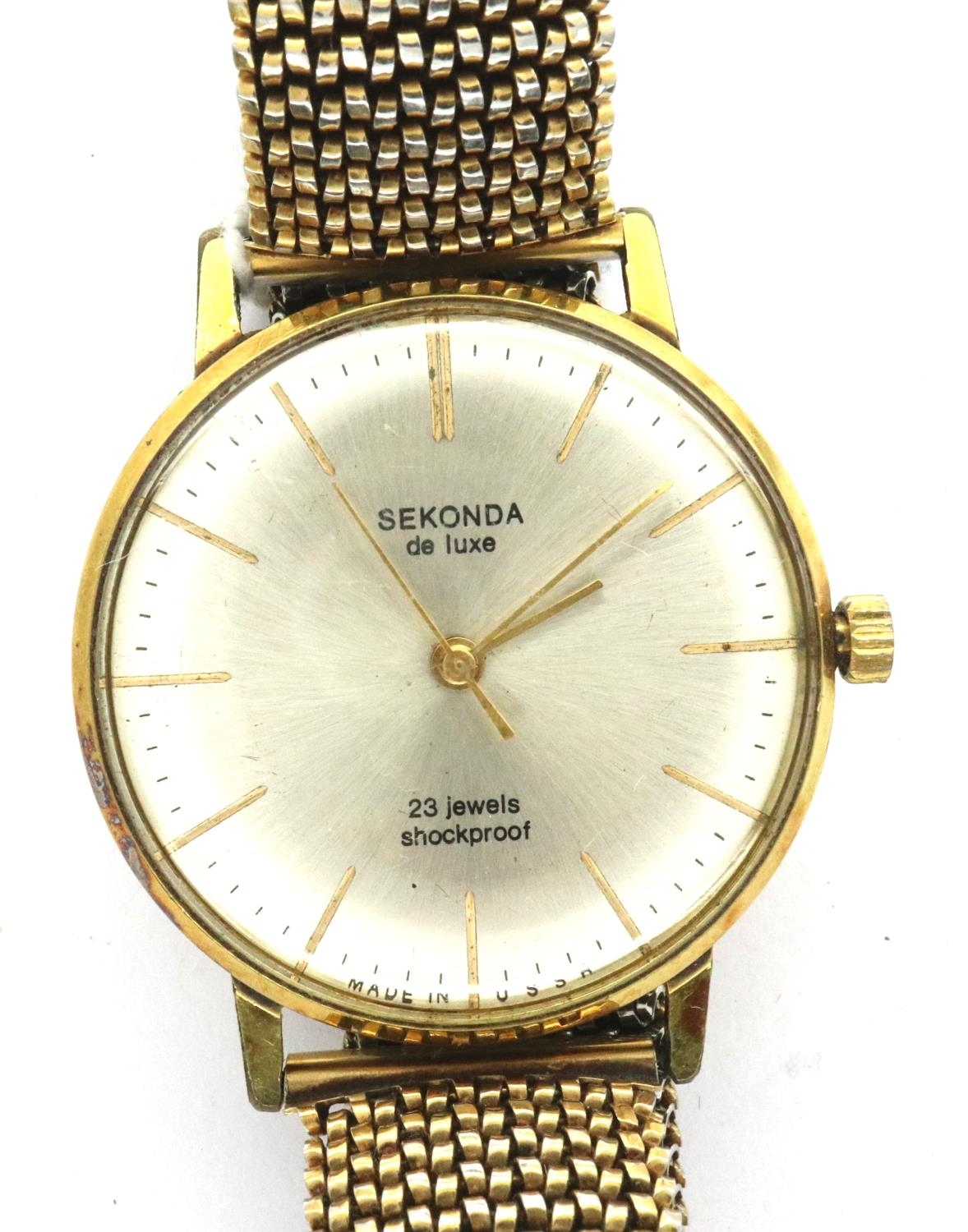 Sekonda: De Luxe 23 jewel gents wristwatch on an expanding bracelet, working at lotting. P&P Group 1 (£14+VAT for the first lot and £1+VAT for subsequent lots)