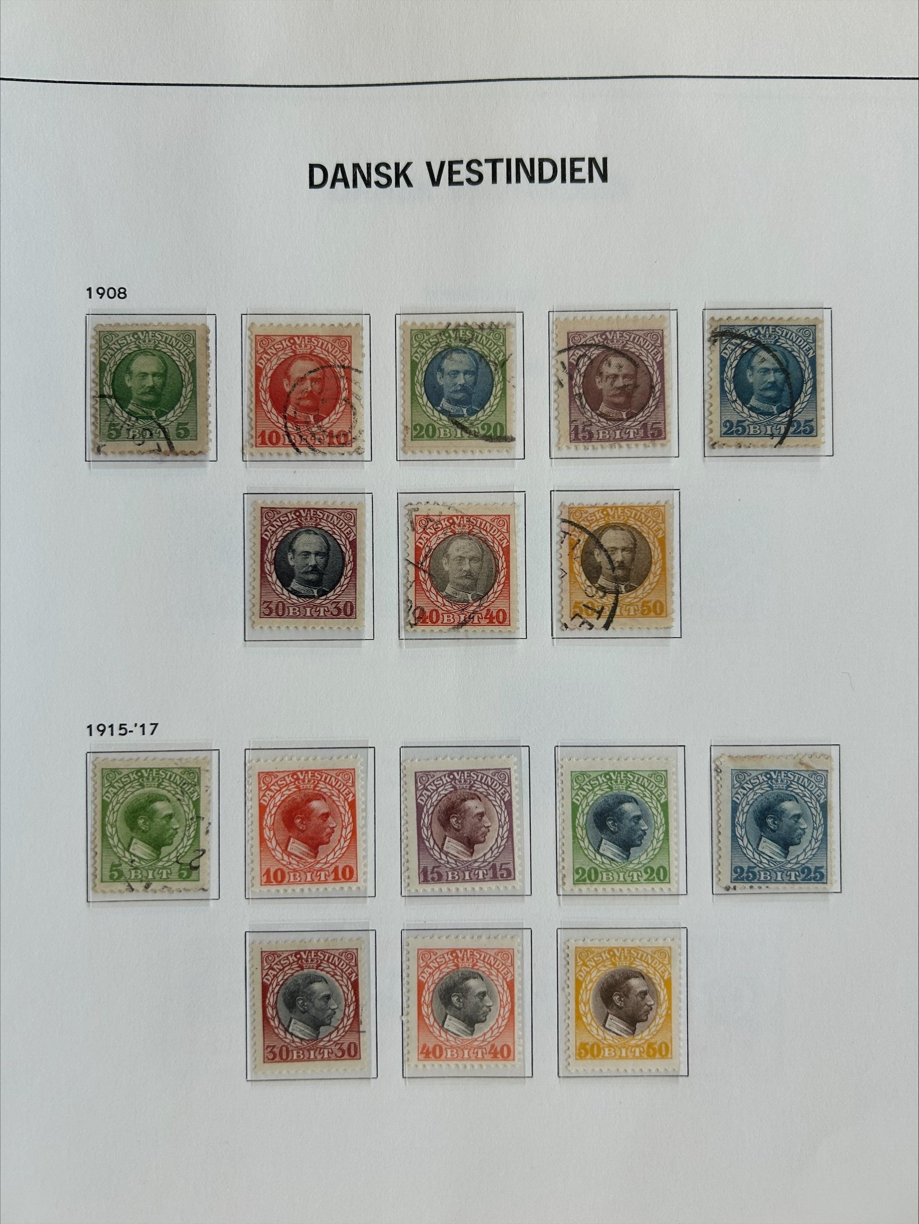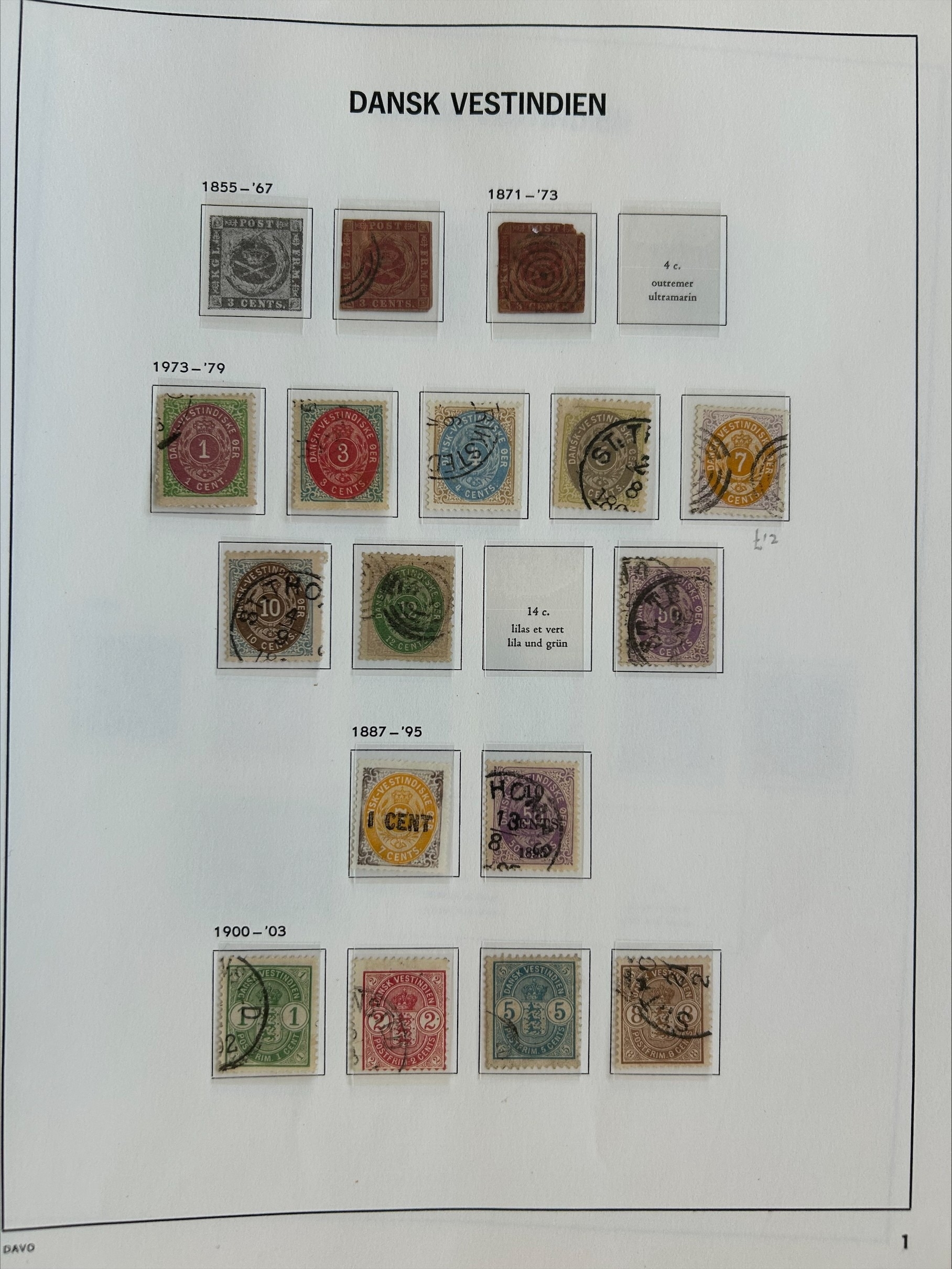 Danish West Indies from 1855 3c (2) faults, 1873-1902 Posthorns U to 12c & 50c, 1887 1c on 7c unused, 10c on 50c U, 1900-03 set used, 1902-5 surcharges M or U, 1905 set, plus 1 fr, U, 1907-8 set U, 1915-16 set M, (5B used), Dues . High Cat. (55) (E)