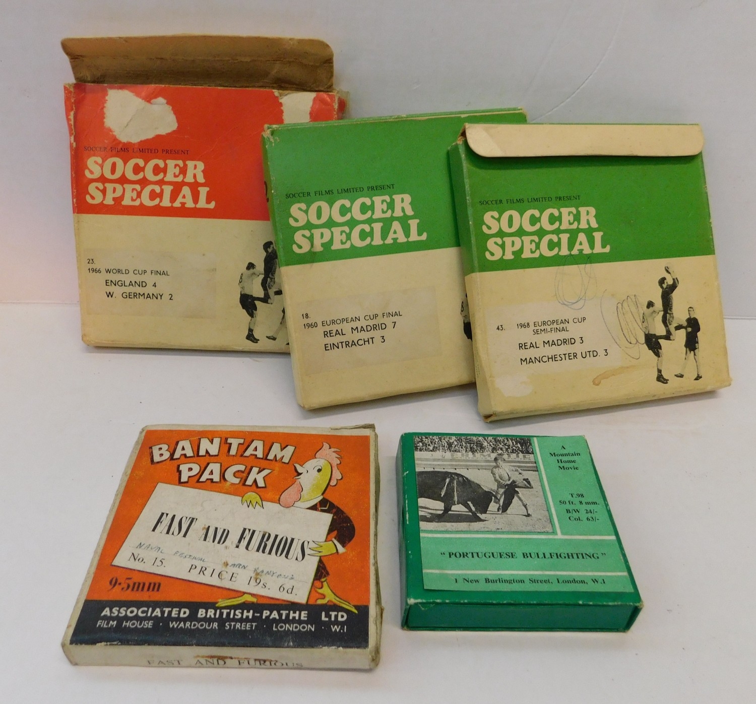 Vintage film reels incl; football and bull fighting