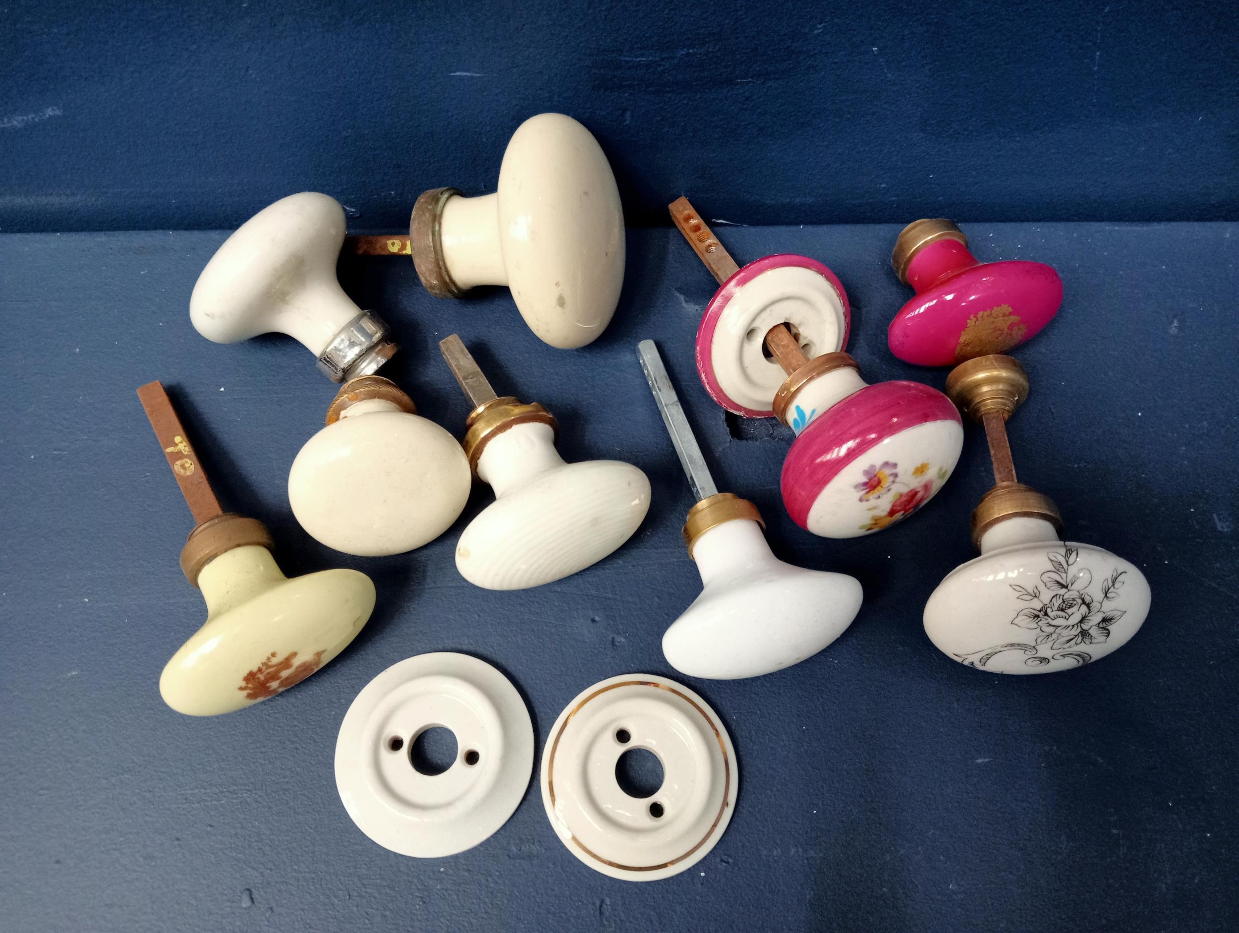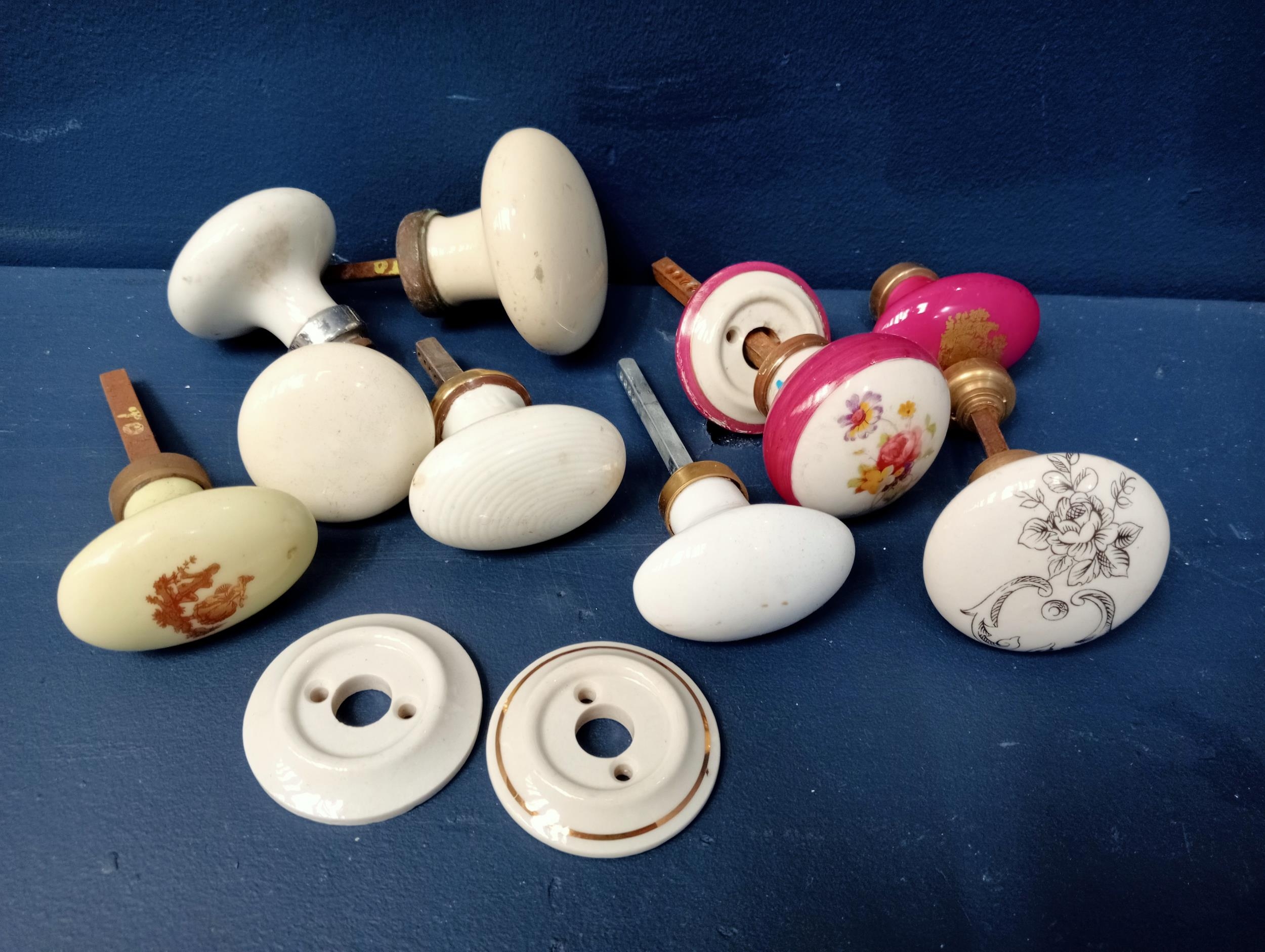 Lot of ceramic door knobs, plates, etc - NOT AVAILABLE TO VIEW IN PERSON
