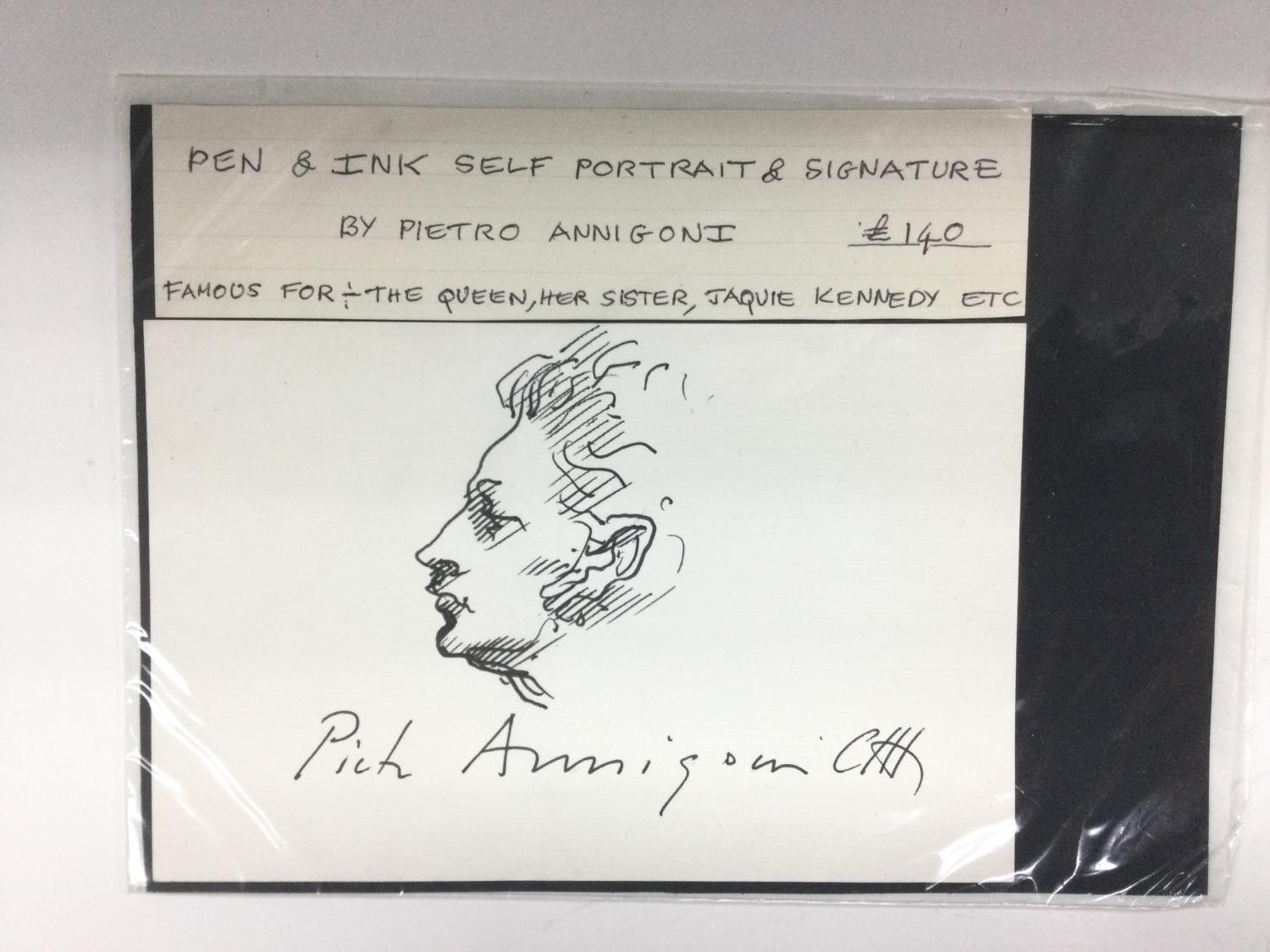 A pen and ink self portrait by Pietro Annigioni, approx 17cm x 15cm. Shipping category A.- NO RESERVE