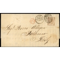 1872 6d Pale chestnut Pl.12. Very fine used example of this rare ‘abnormal’ issue lettered AL neatly tied to a clean entire to Palermo, Italy by a Liverpool ‘466’ duplex for JA.17.1873. Palermo receiving cds on reverse for the 23rd. A very rare cover. 1987 RPS Certificate. SG124a. Cat. £3500 off cover.
