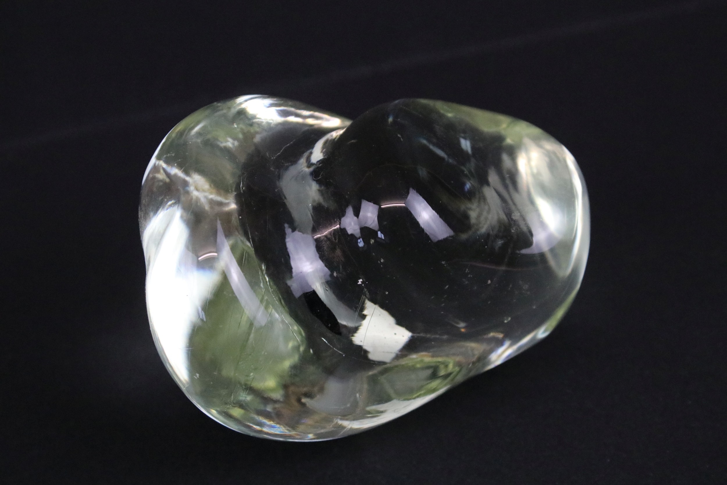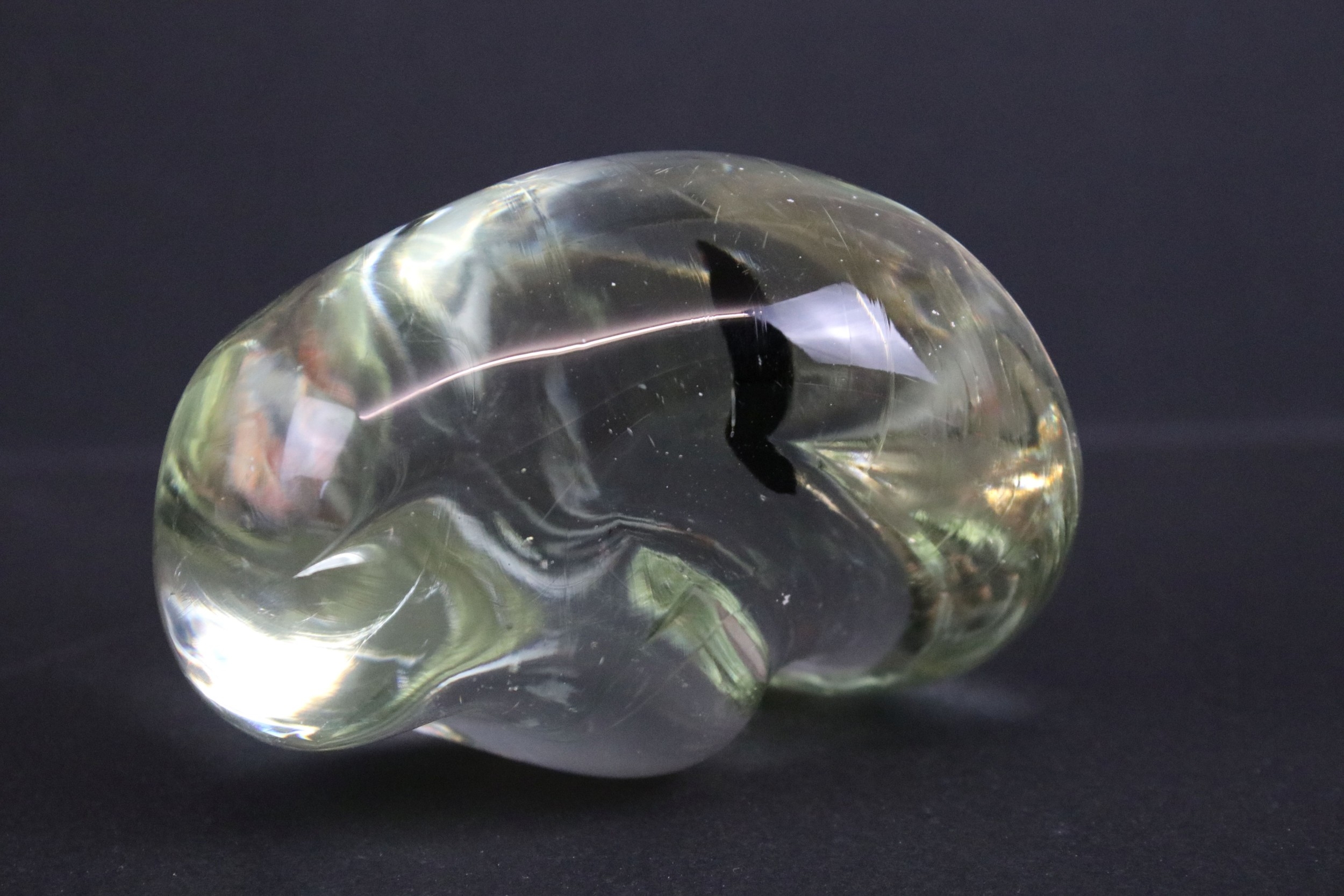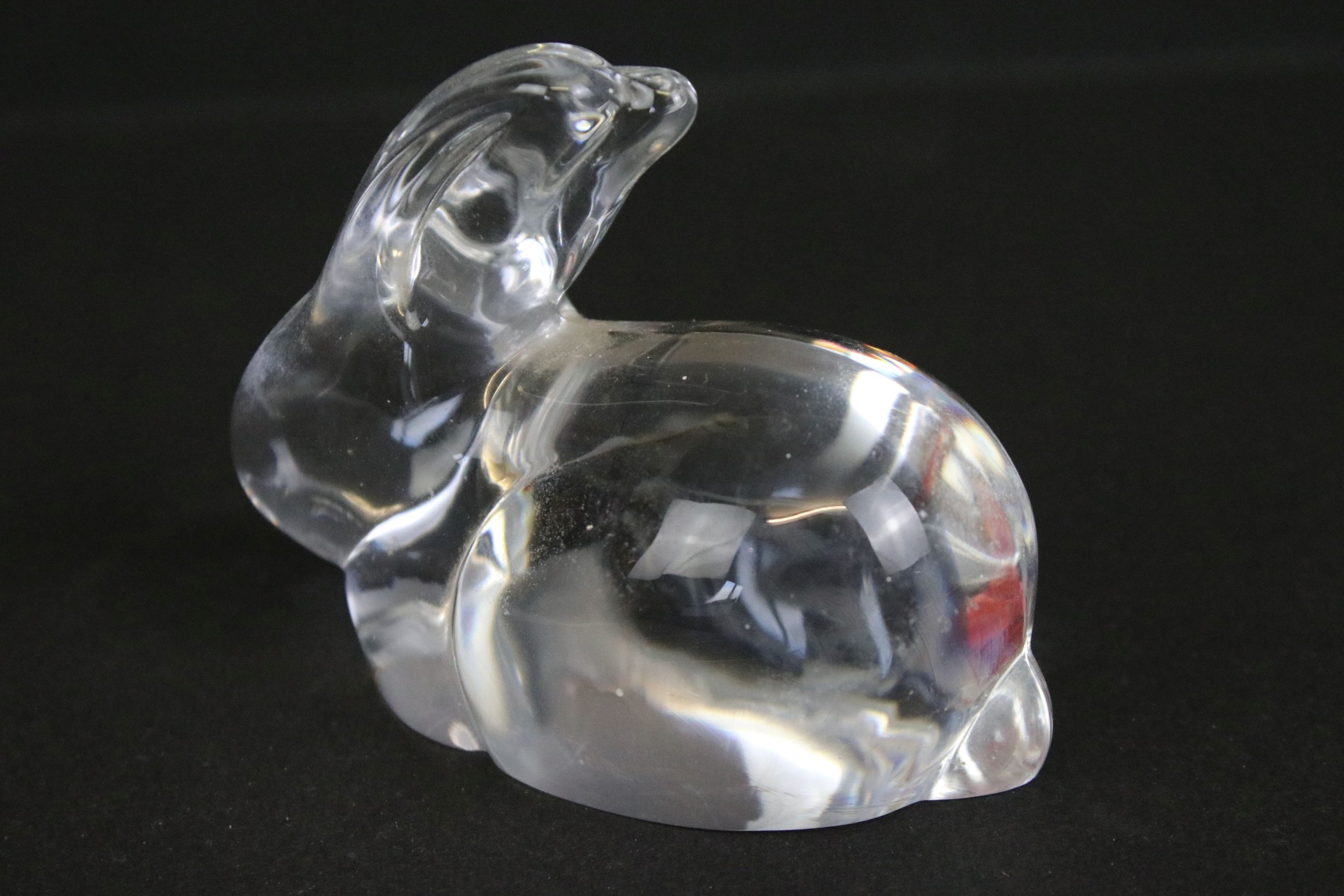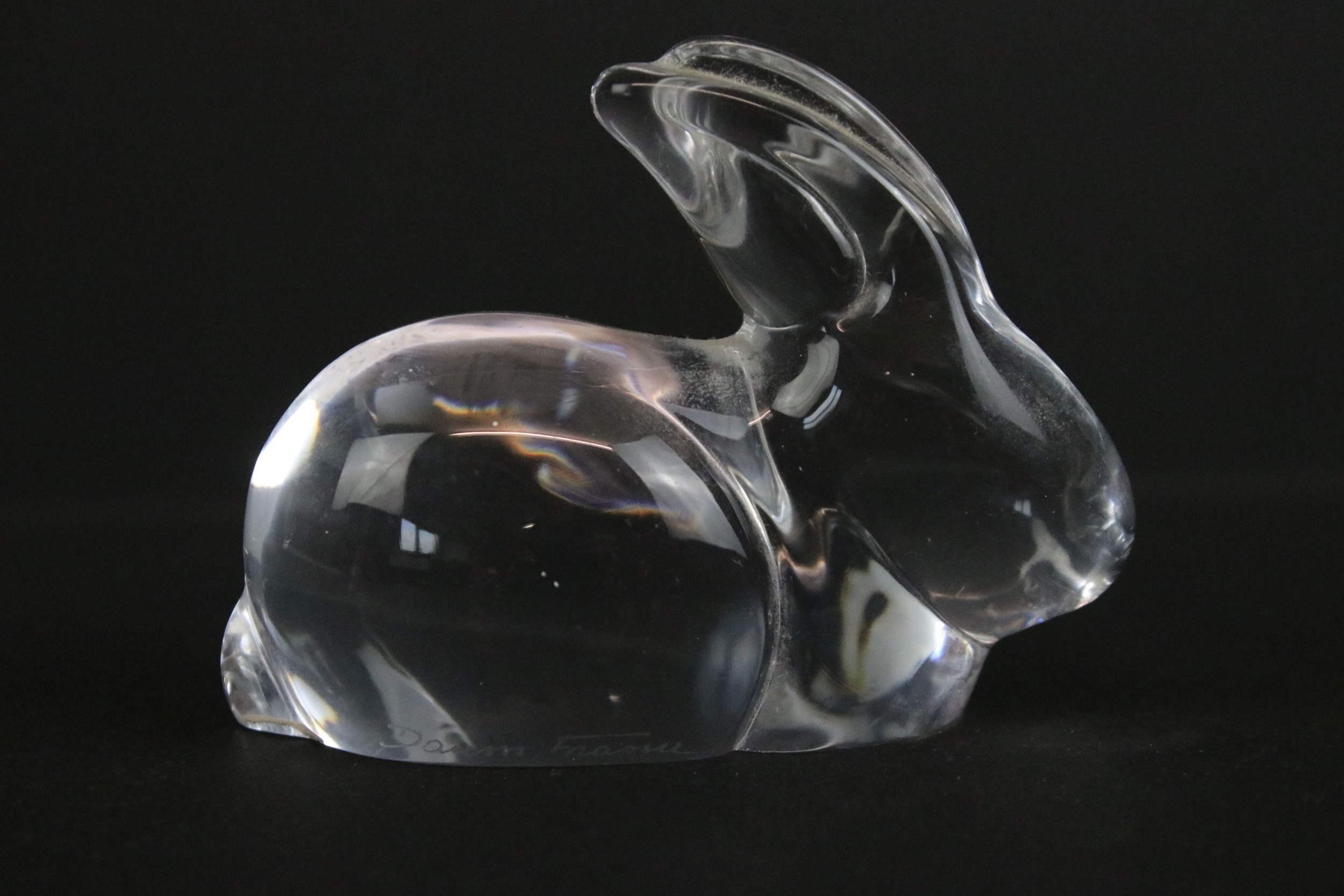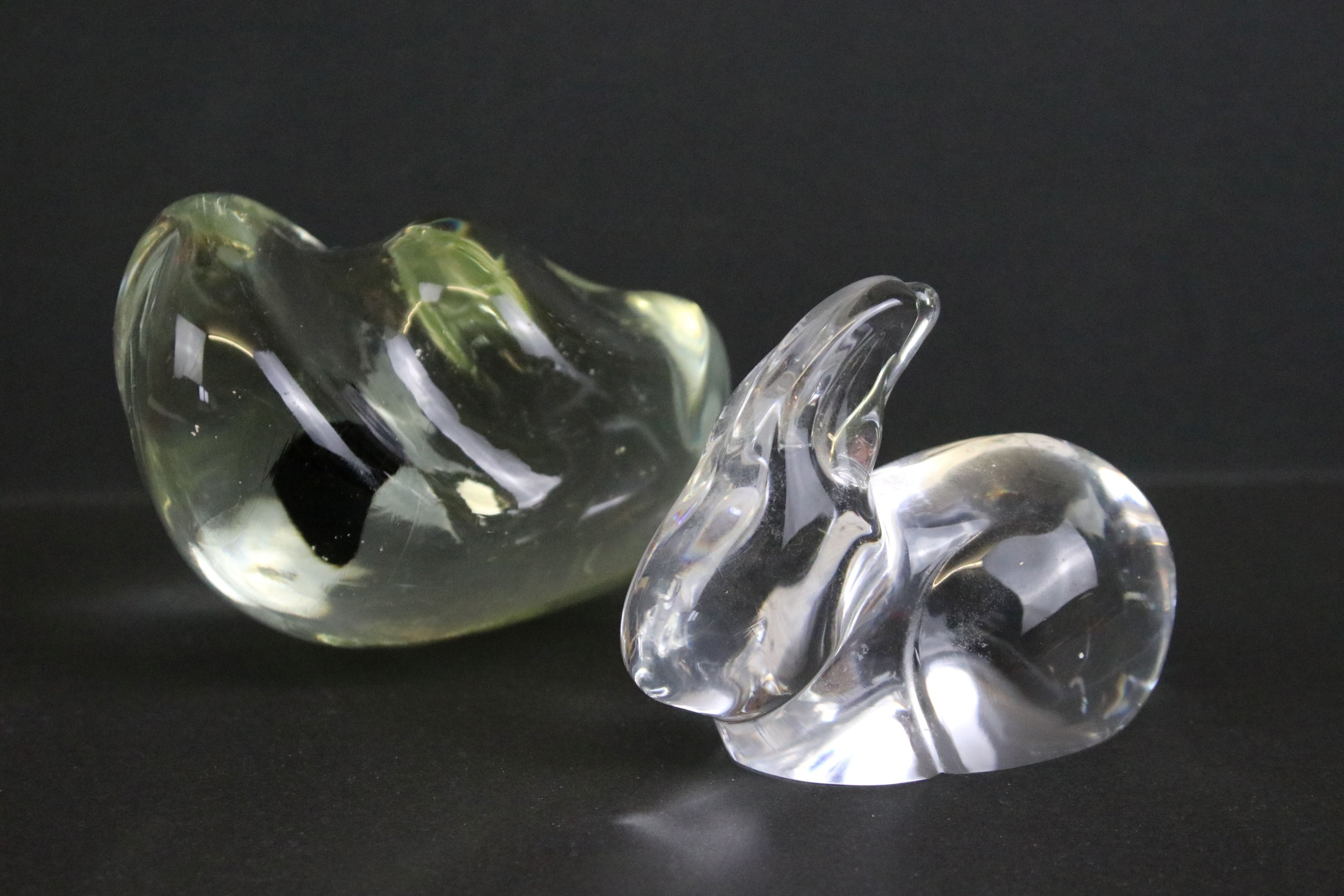 Daum crystal figure of a seated rabbit, having engraved signature, H 6.5cm, together with an unusual glass form (2)