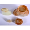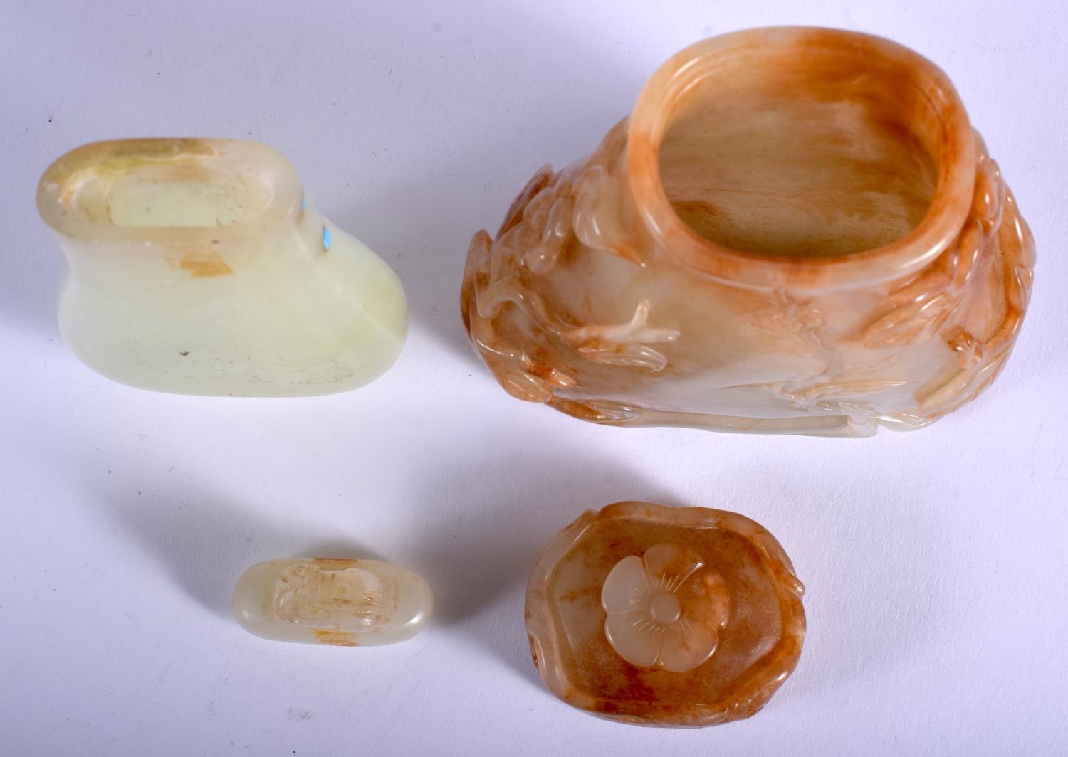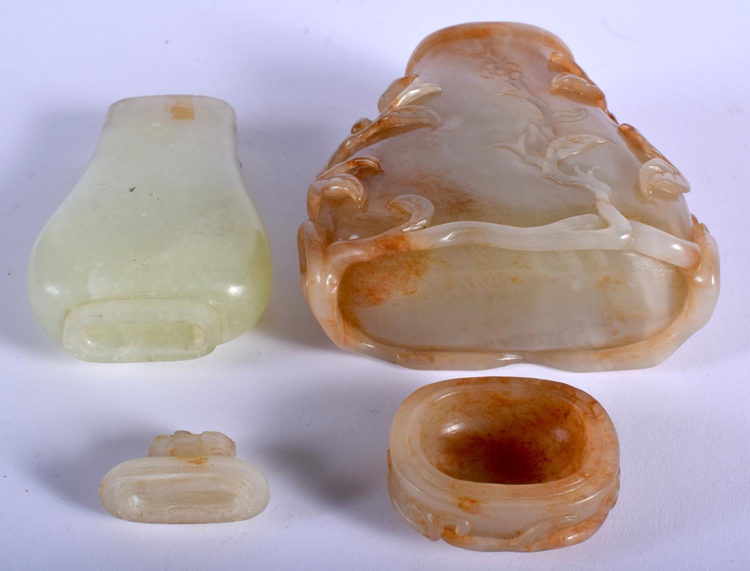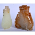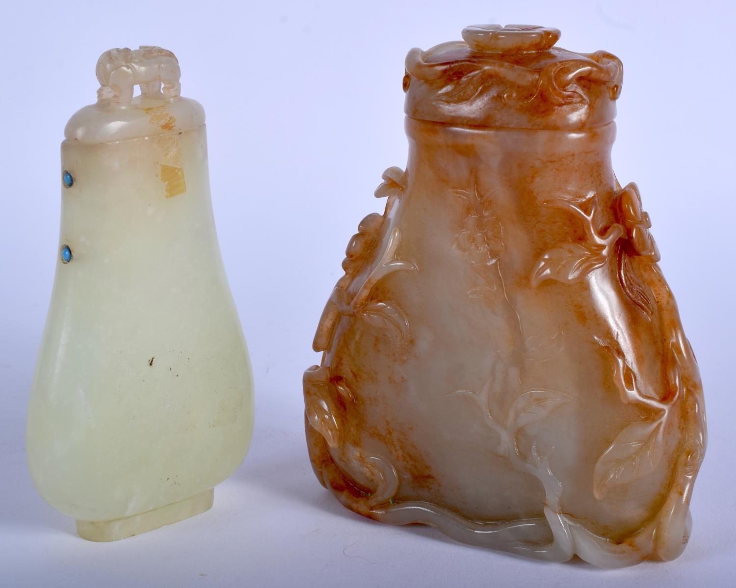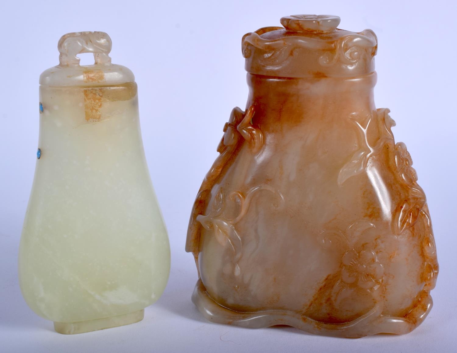 TWO 19TH CENTURY CHINESE CARVED JADE VASES AND COVERS Qing, one overlaid with flowers. 11.5 cm & 9.5 cm high. (2)