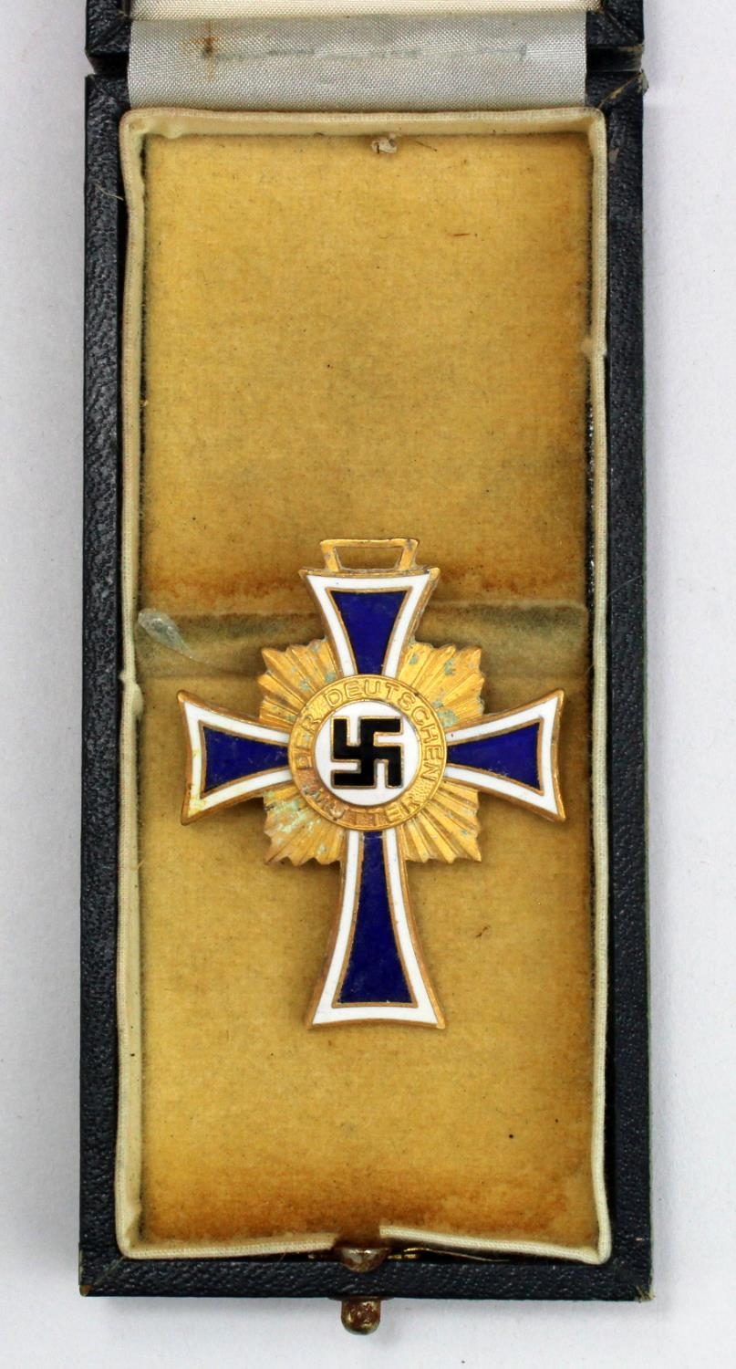 German Mothers Cross in Gold, in fitted case, 2nd type Hitler dedication