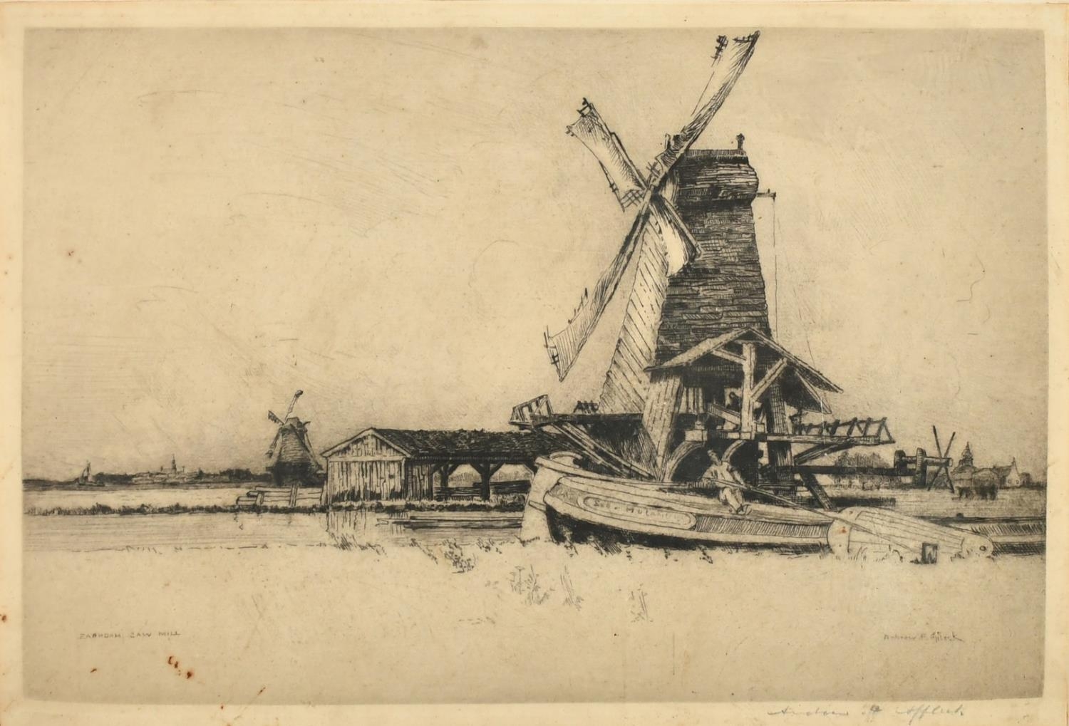 Andrew Fairbairn Affleck (1874-1935), 'Zaandam Zaw Mill', etching, signed in pencil, plate size 9" x 13.75" (23 x 35cm).