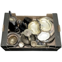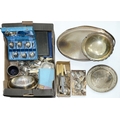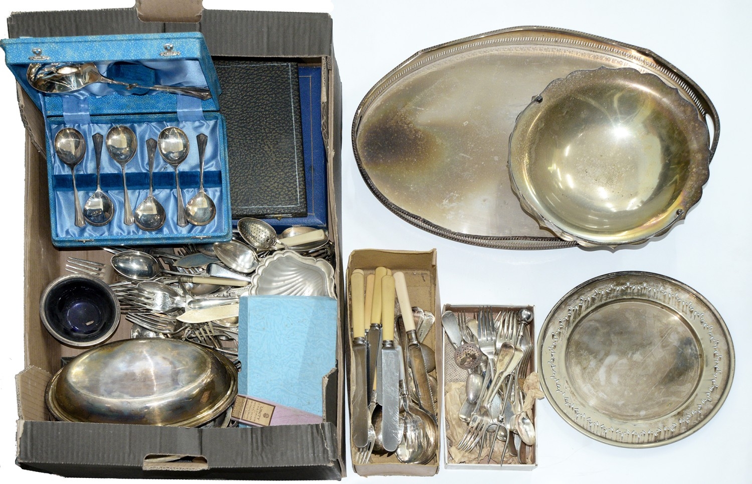 Miscellaneous plated ware, to include a basket gallery tray and flatware