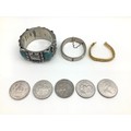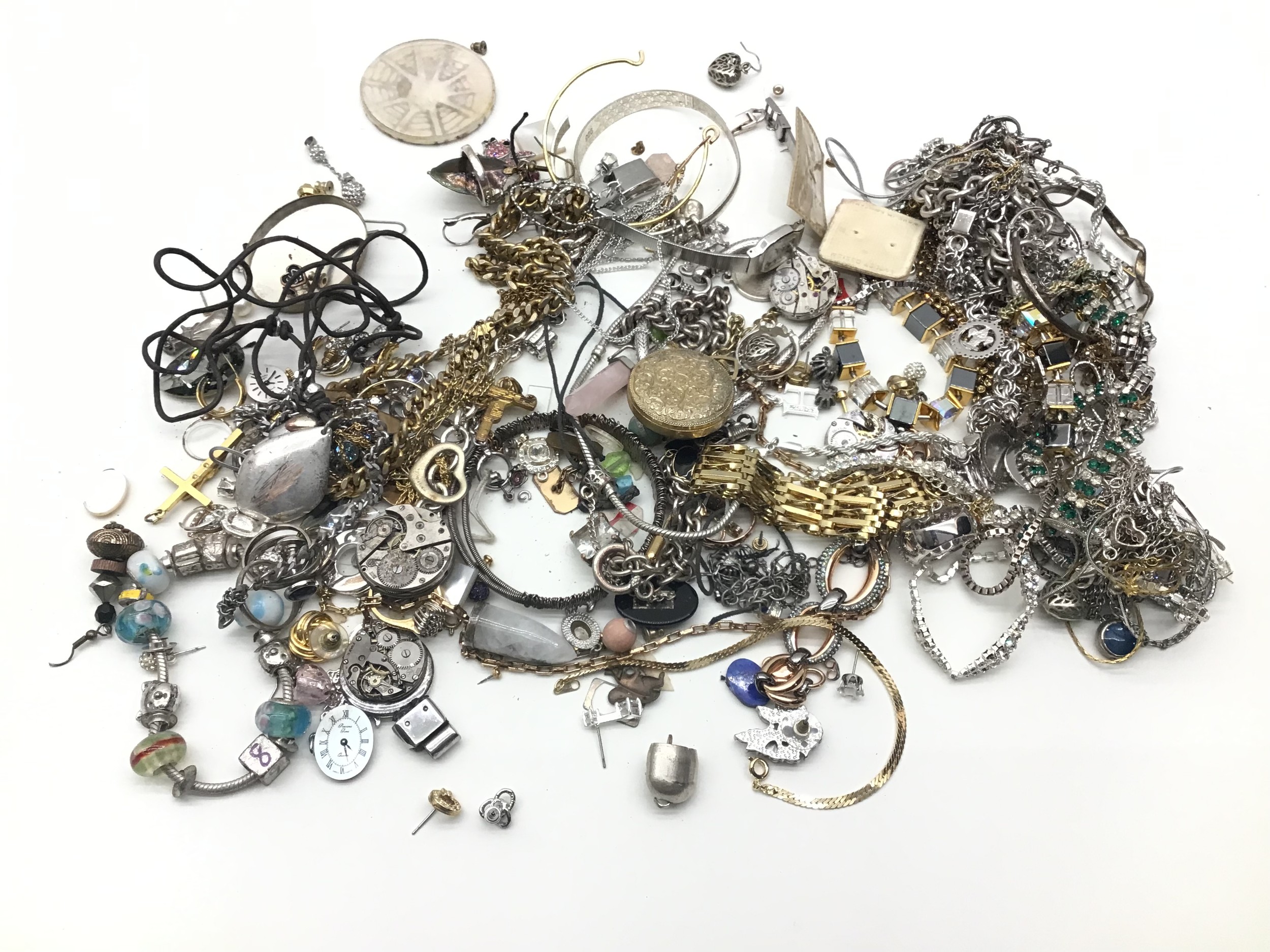 Bag of various items of costume jewellery and watches.