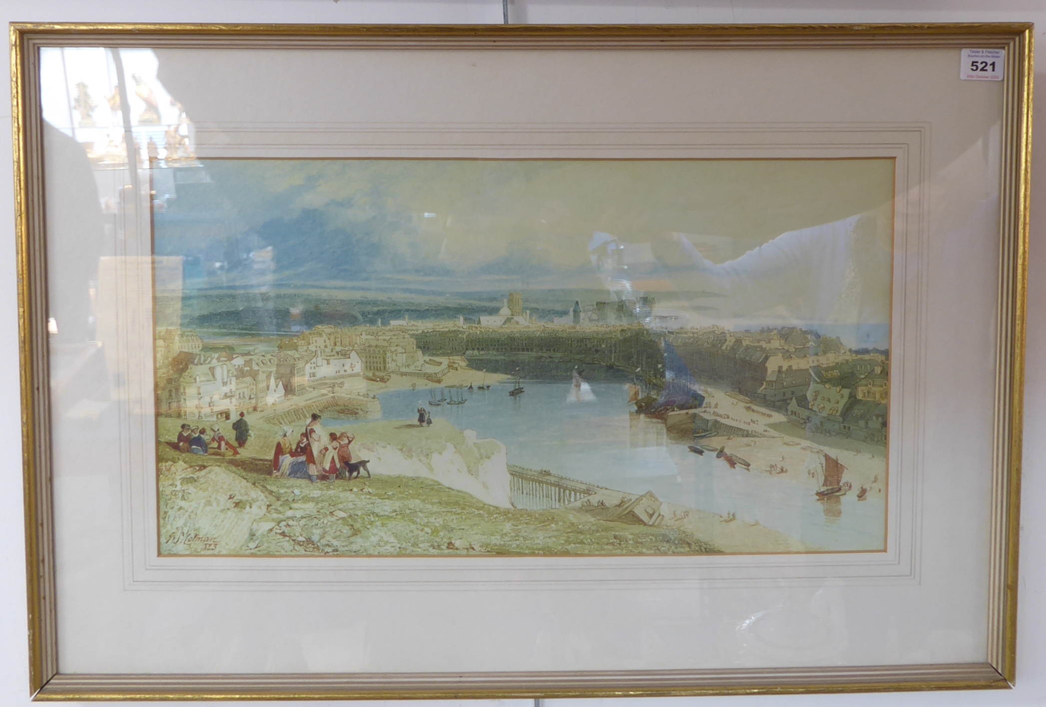 After JOHN SELL COTMAN - a vintage print of Dieppe harbour; signed and dated 1823, re-framed and glazed