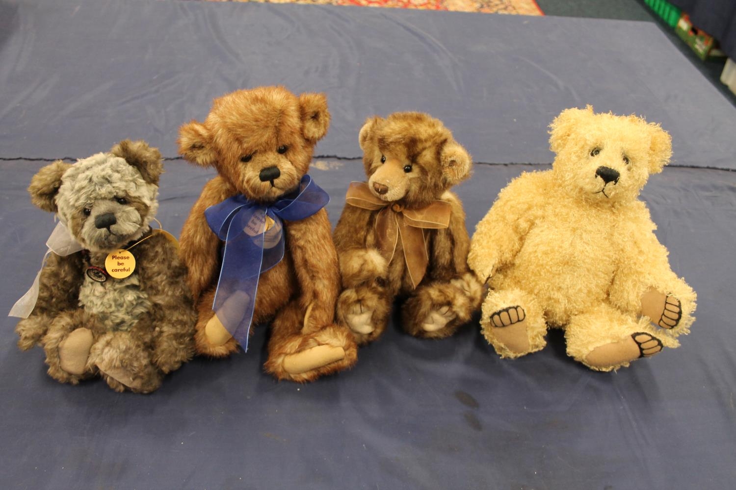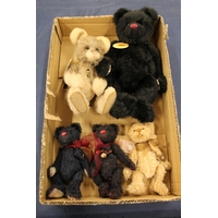Charlie Bears to include CB093515A Johnny, 36cm tall, CB094103B Honey, 32cm tall, CB194535B Blair, 30cm tall and another, all would benefit from cleaning due to tobacco odour. (4)