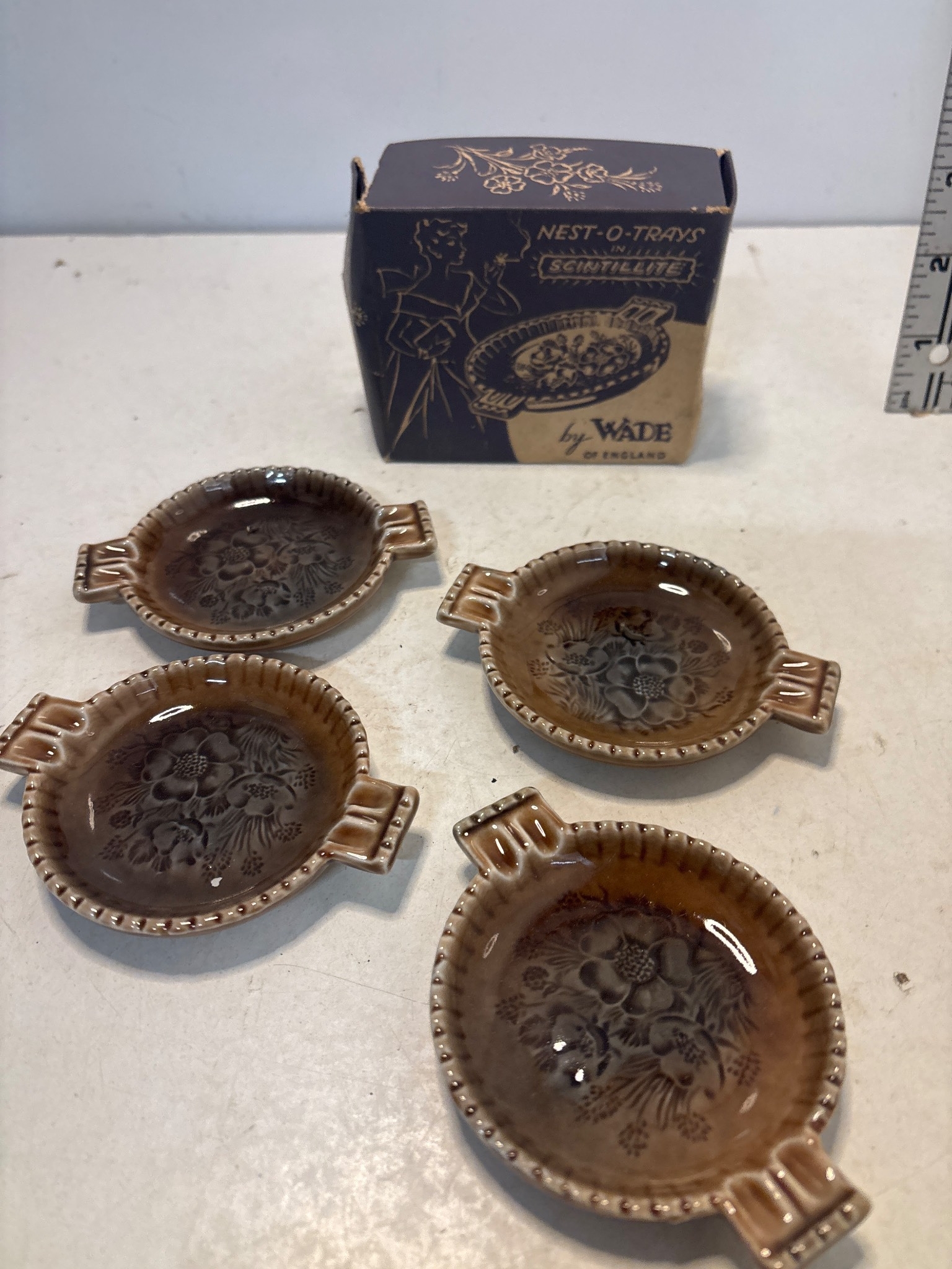 Four Wade Nest-O-Trays in Scintillite design. Made in Englan...