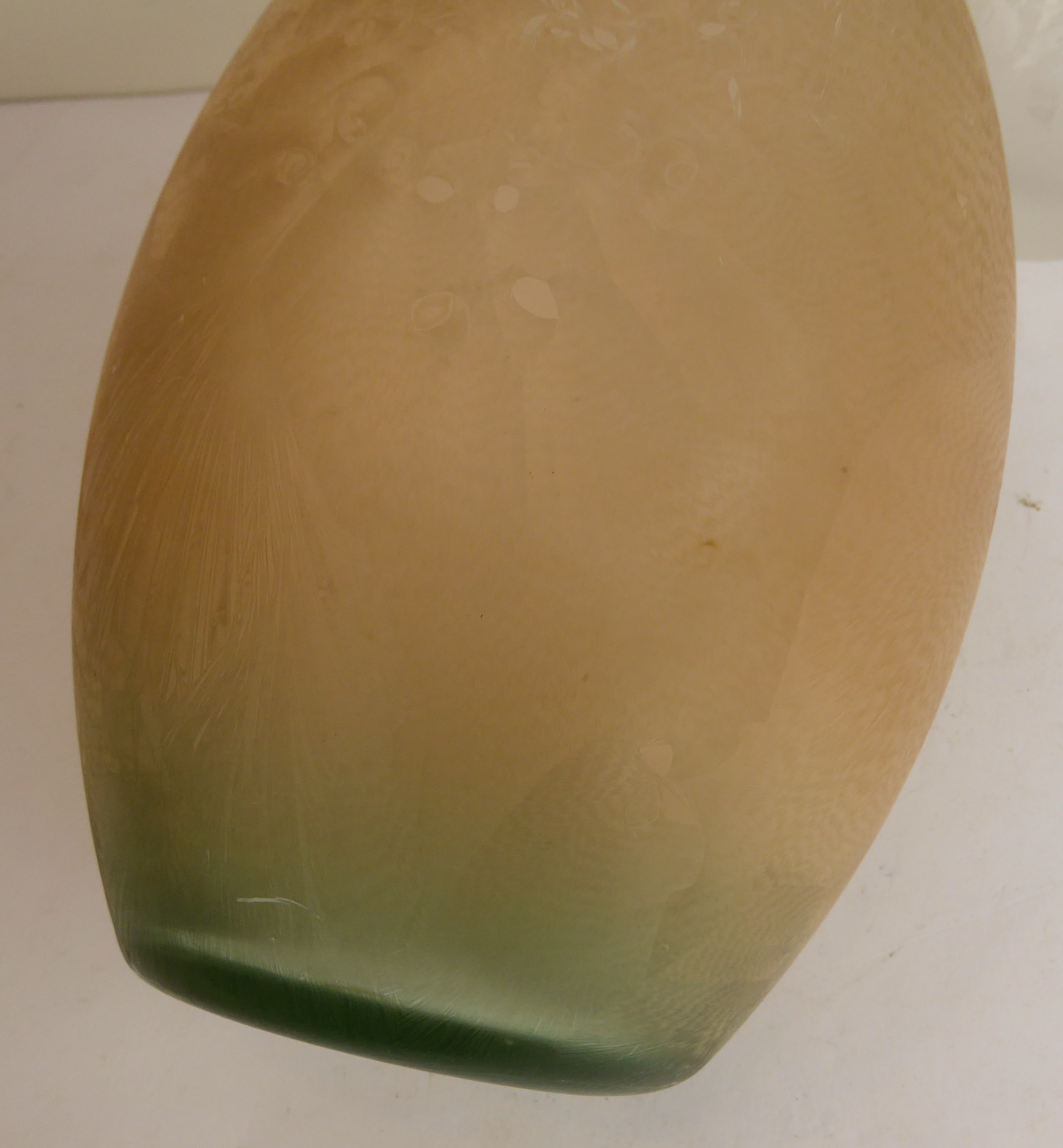 2. An Art Deco style vase with pink tinged colouration and animalesque etched design (21.5cm high).