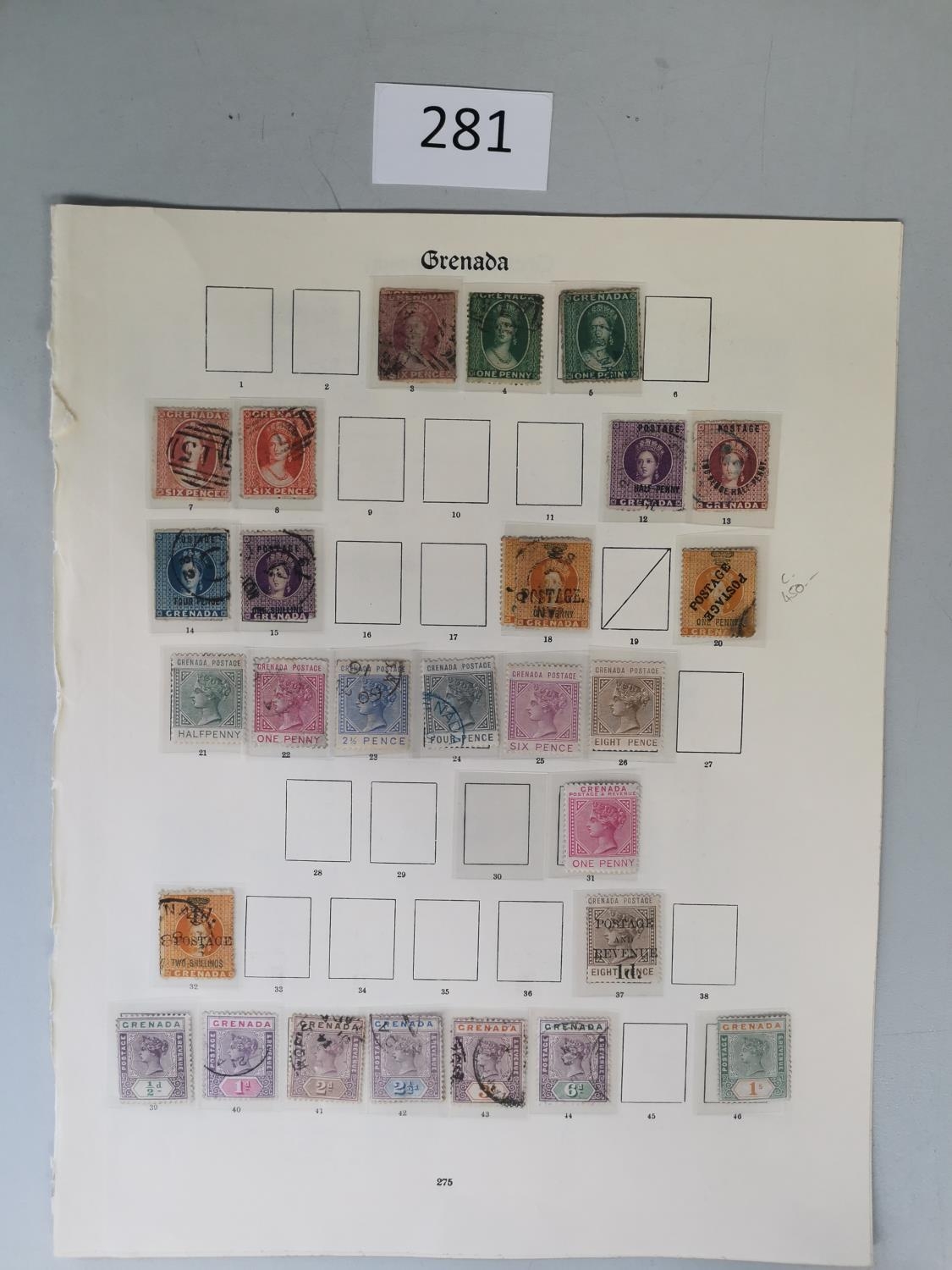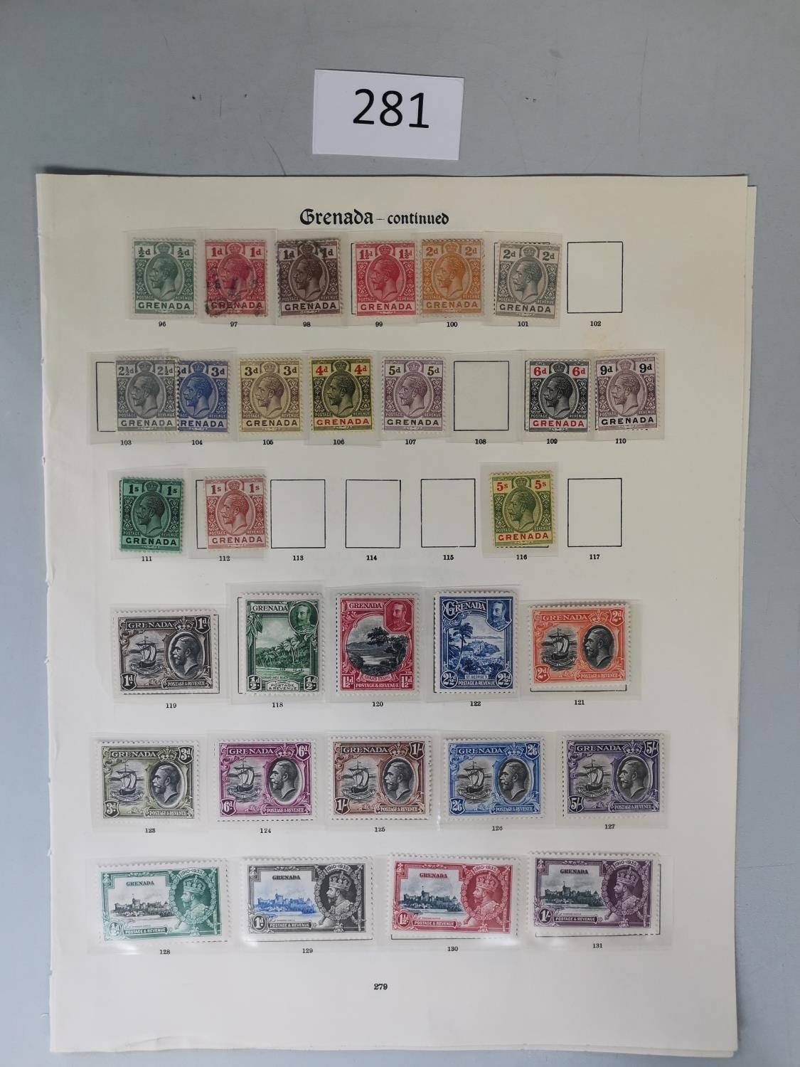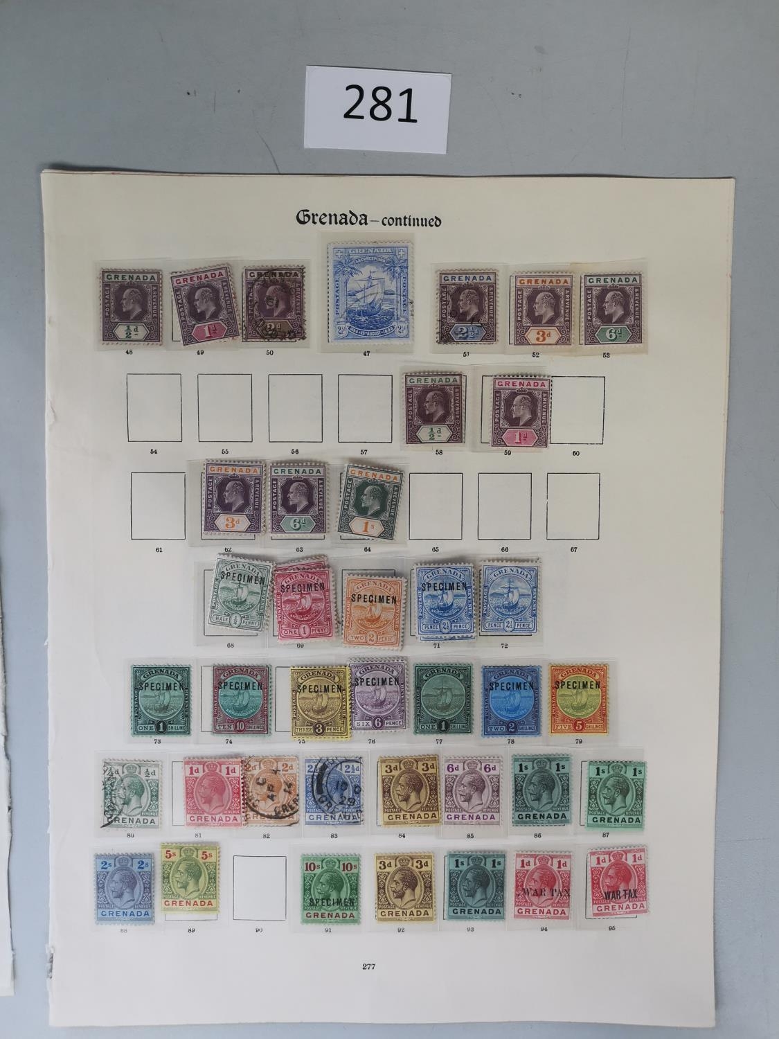 GRENADA. QV M and U range 1906-11 SPECIMENS to 10/- later KGV M vals to 5/- (3)