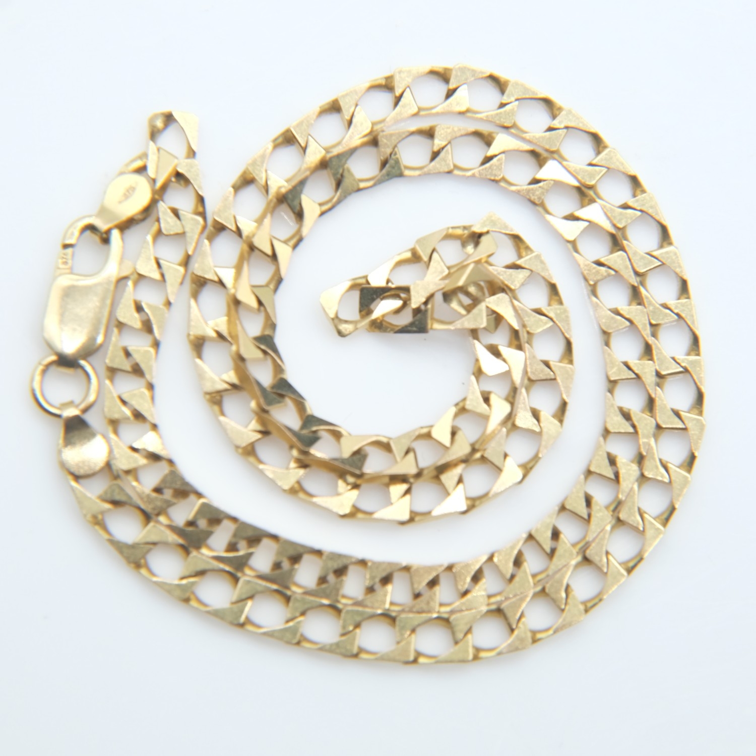 9ct gold square curb link chain, L: 46 cm, 14.6g. UK P&P Group 0 (£7+VAT for the first lot and £1+VAT for subsequent lots)