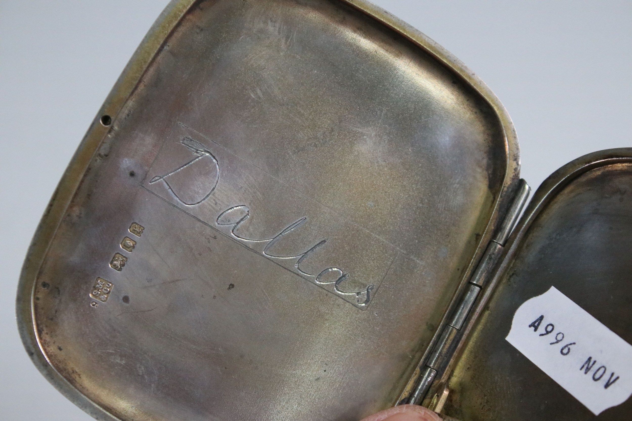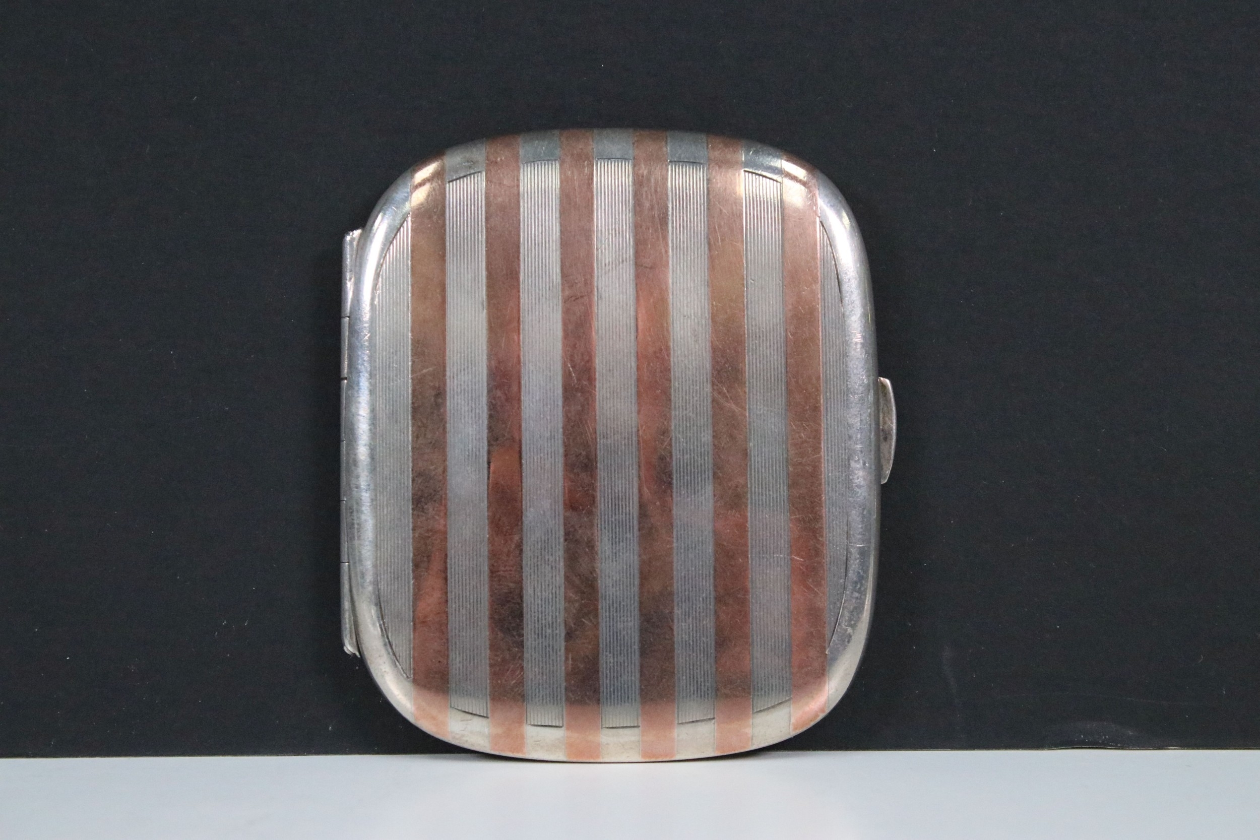 Early 20th century solid silver and rose gold banded cigarette case holder, hallmarked Sampson Mordan & Co, London 1920 and numbered 9, etched 'Dallas' to the interior (1)