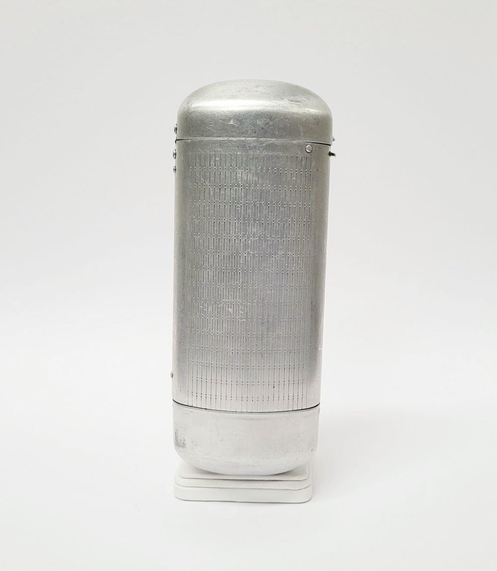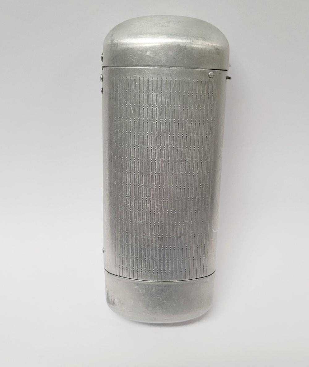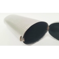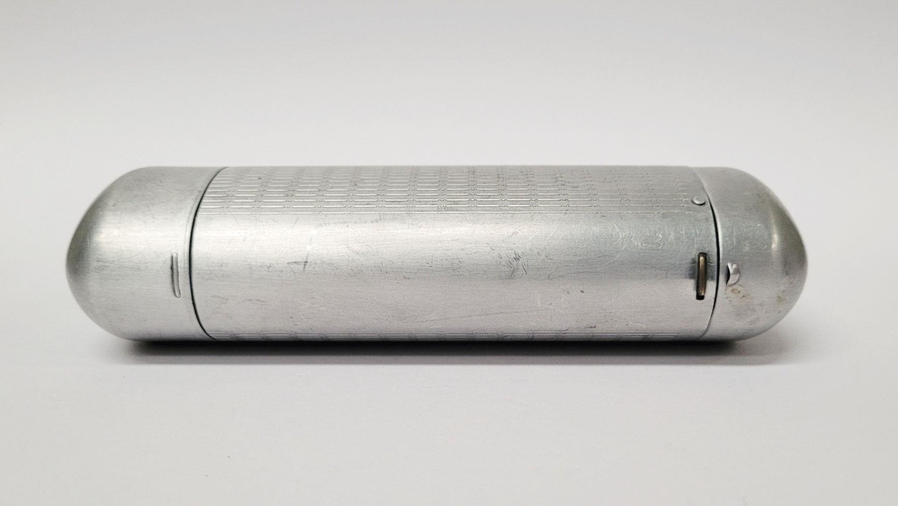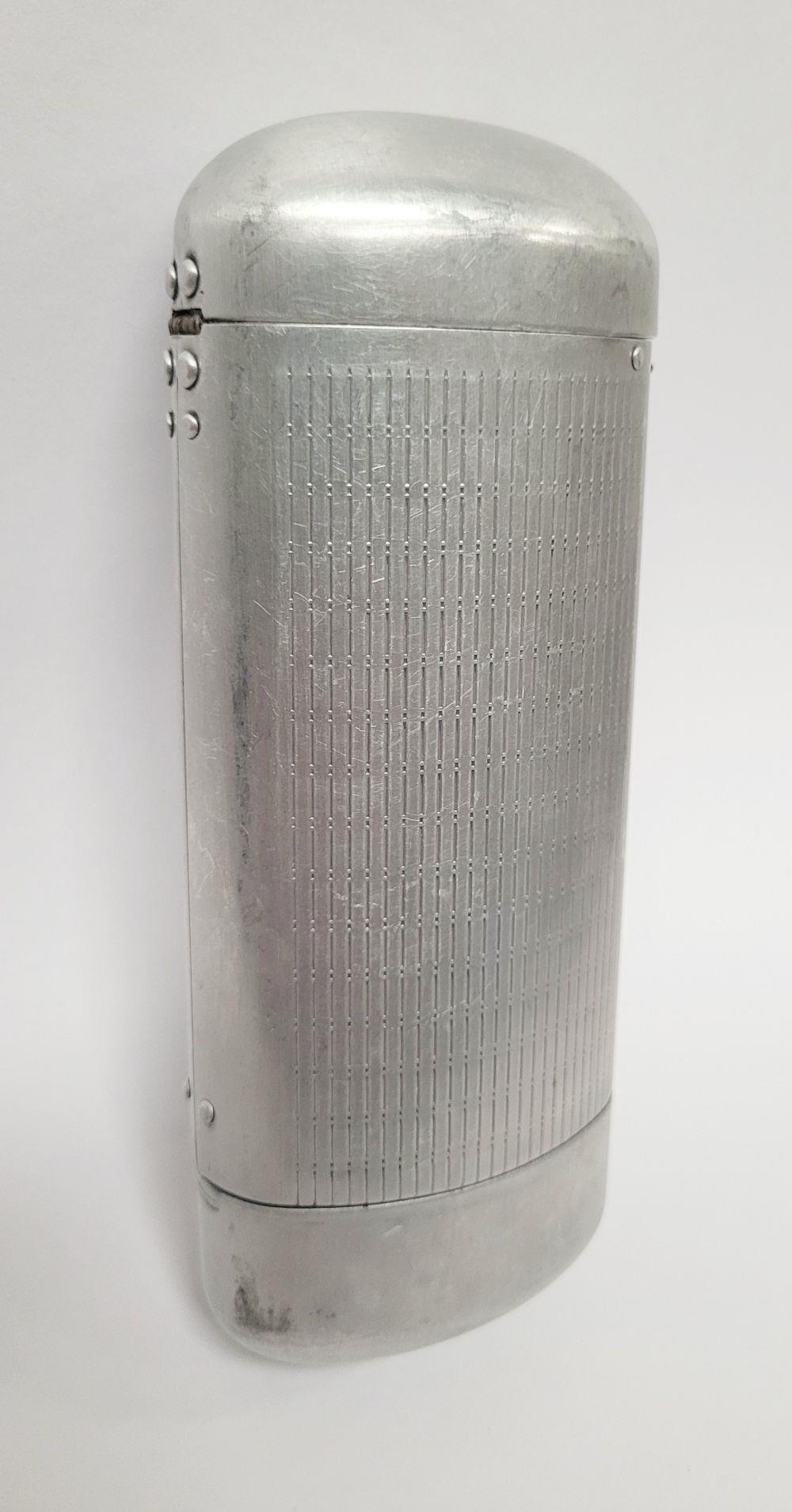 A VINTAGE OPTOPLAST ALUMINIUM SPECTACLE CASE, possibly from 1950s. Clip closing mechanism, with lining, maker’s mark impressed: ‘Optoplast PLC Registered Design’ to one side. In excellent condition. 15 x 6 x 3.5cm (L x W x D)
